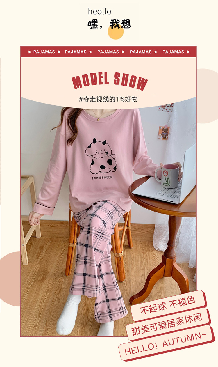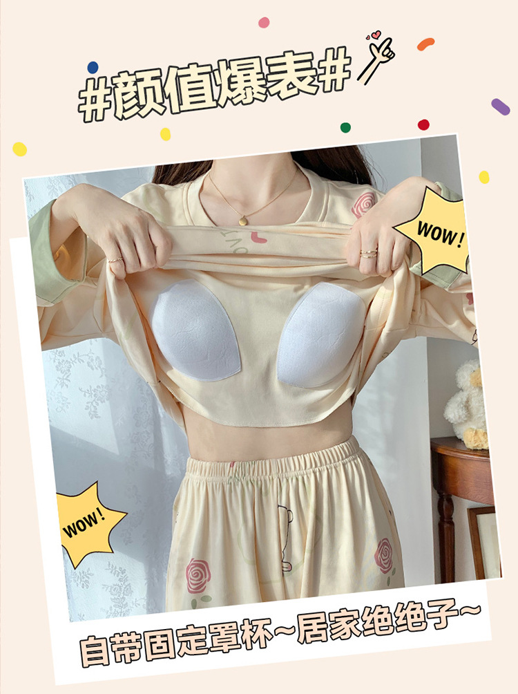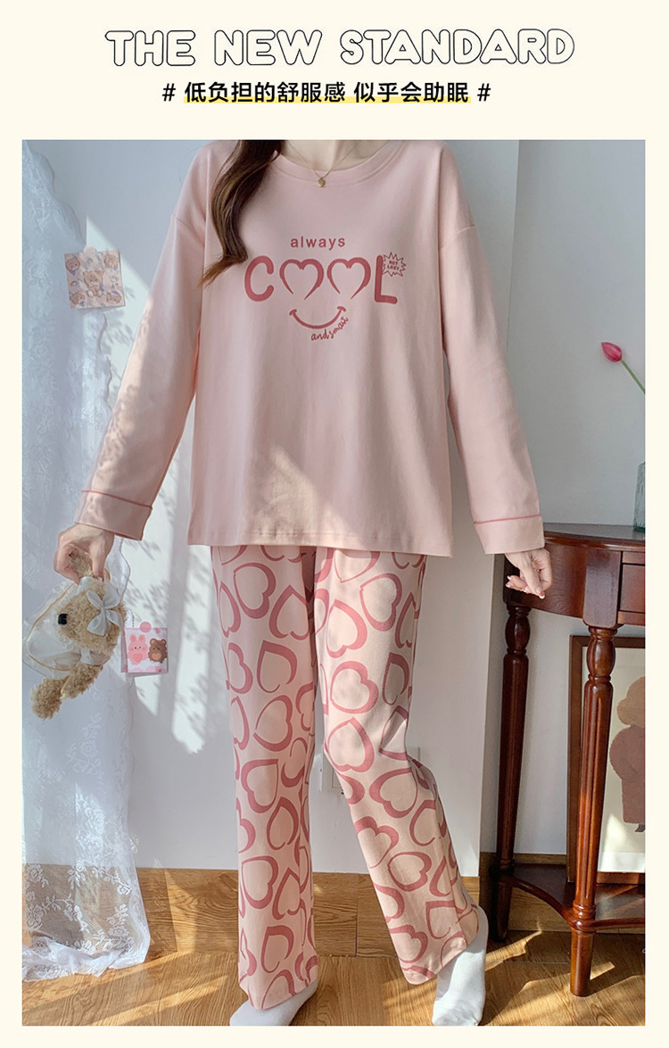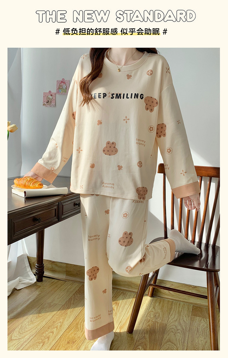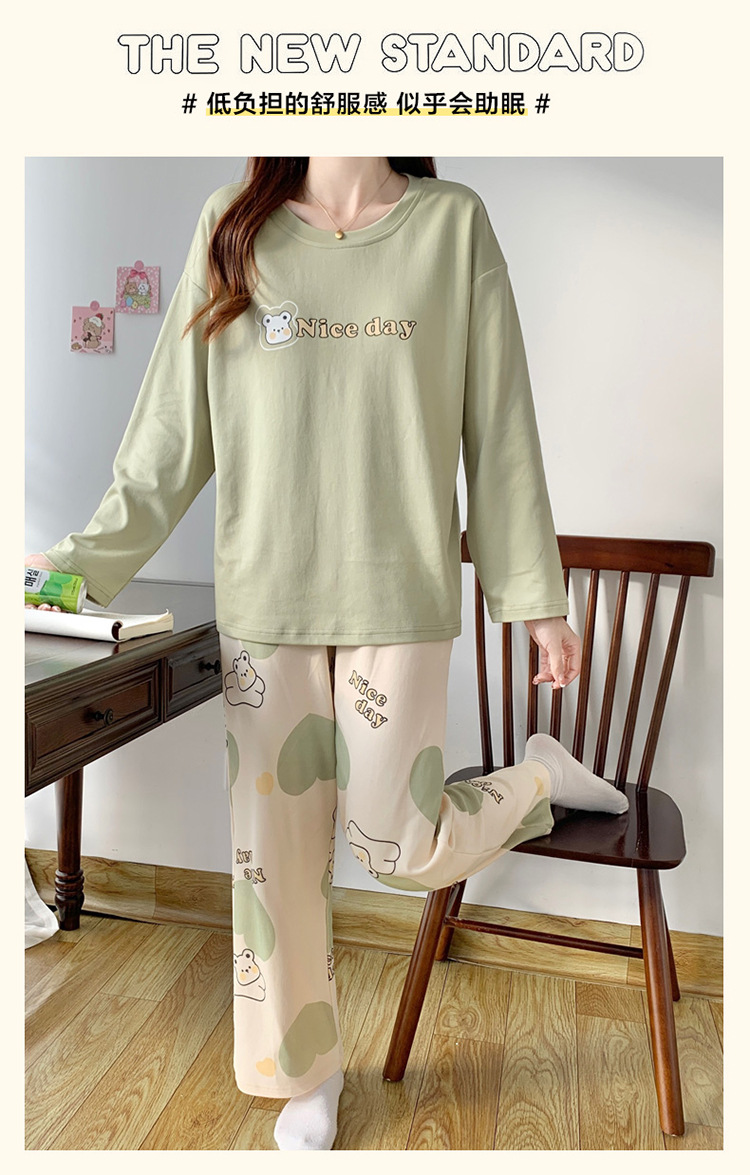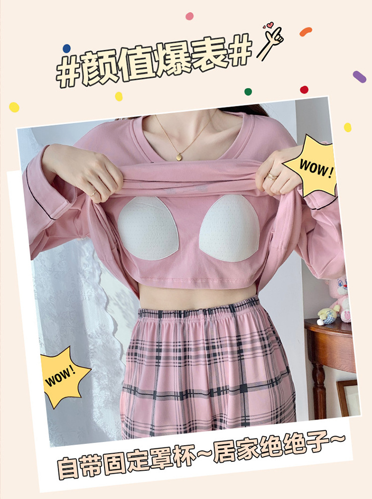 여자 면 잠옷 봄 가을 가슴 패드 한 조각 외부 착용 만화 느슨한 홈 옷 세트 2024 새로운스토어 가기