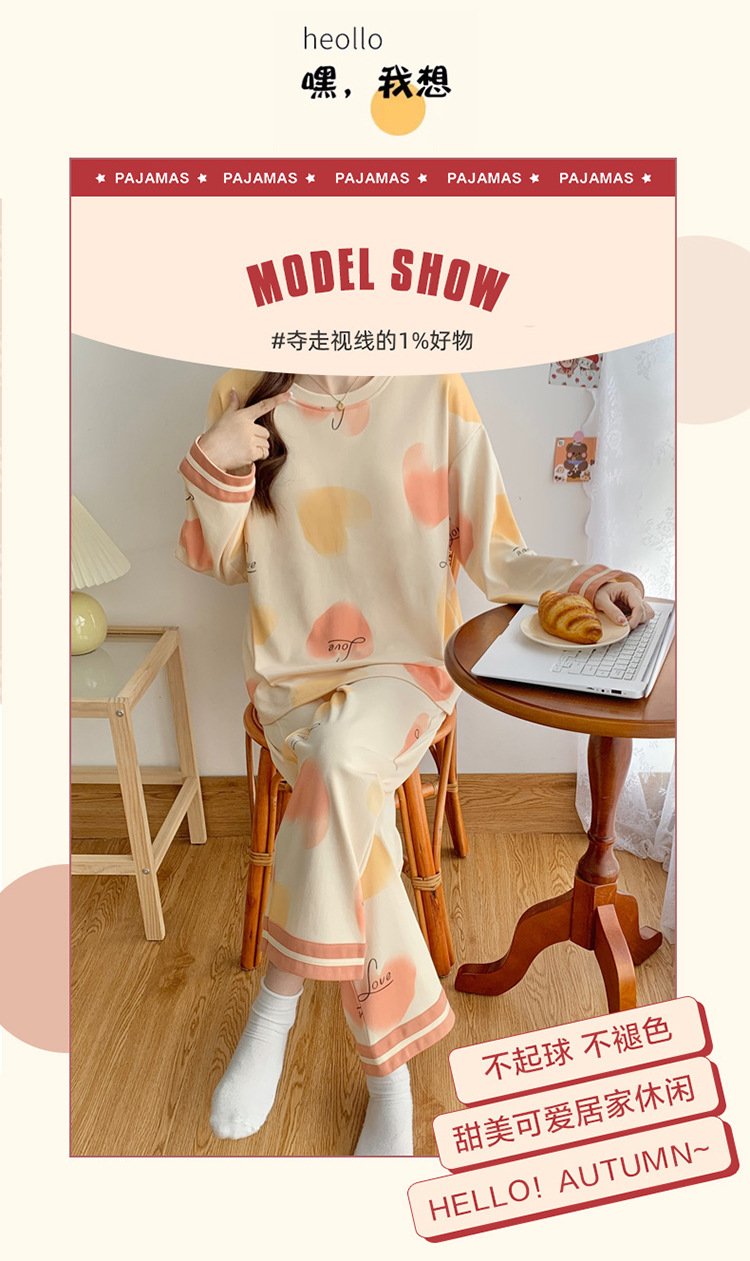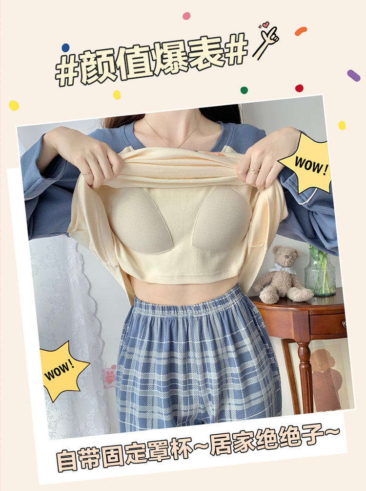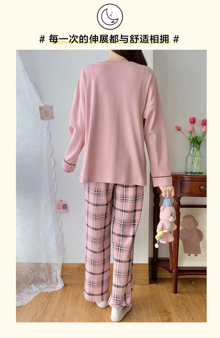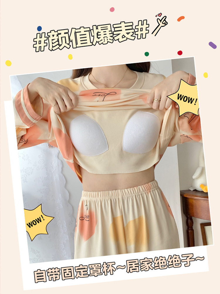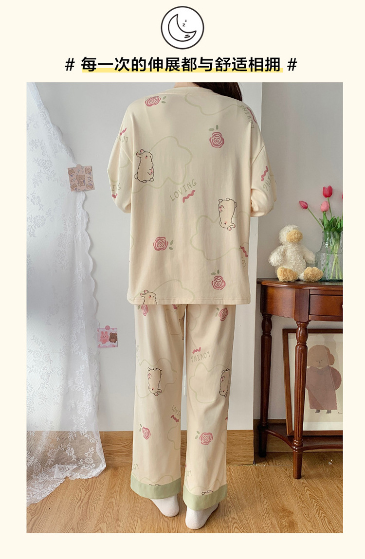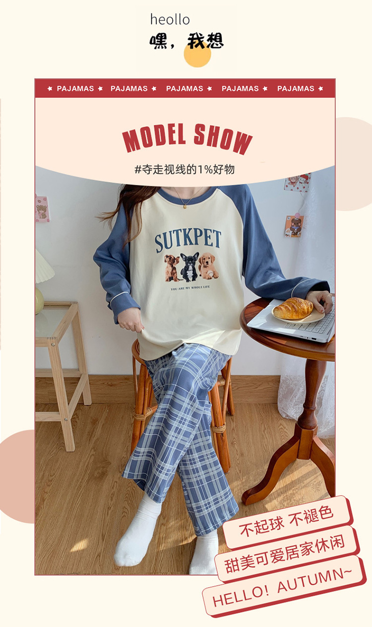 여자 면 잠옷 봄 가을 가슴 패드 한 조각 외부 착용 만화 느슨한 홈 옷 세트 2024 새로운스토어 가기