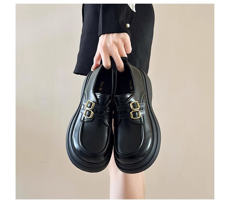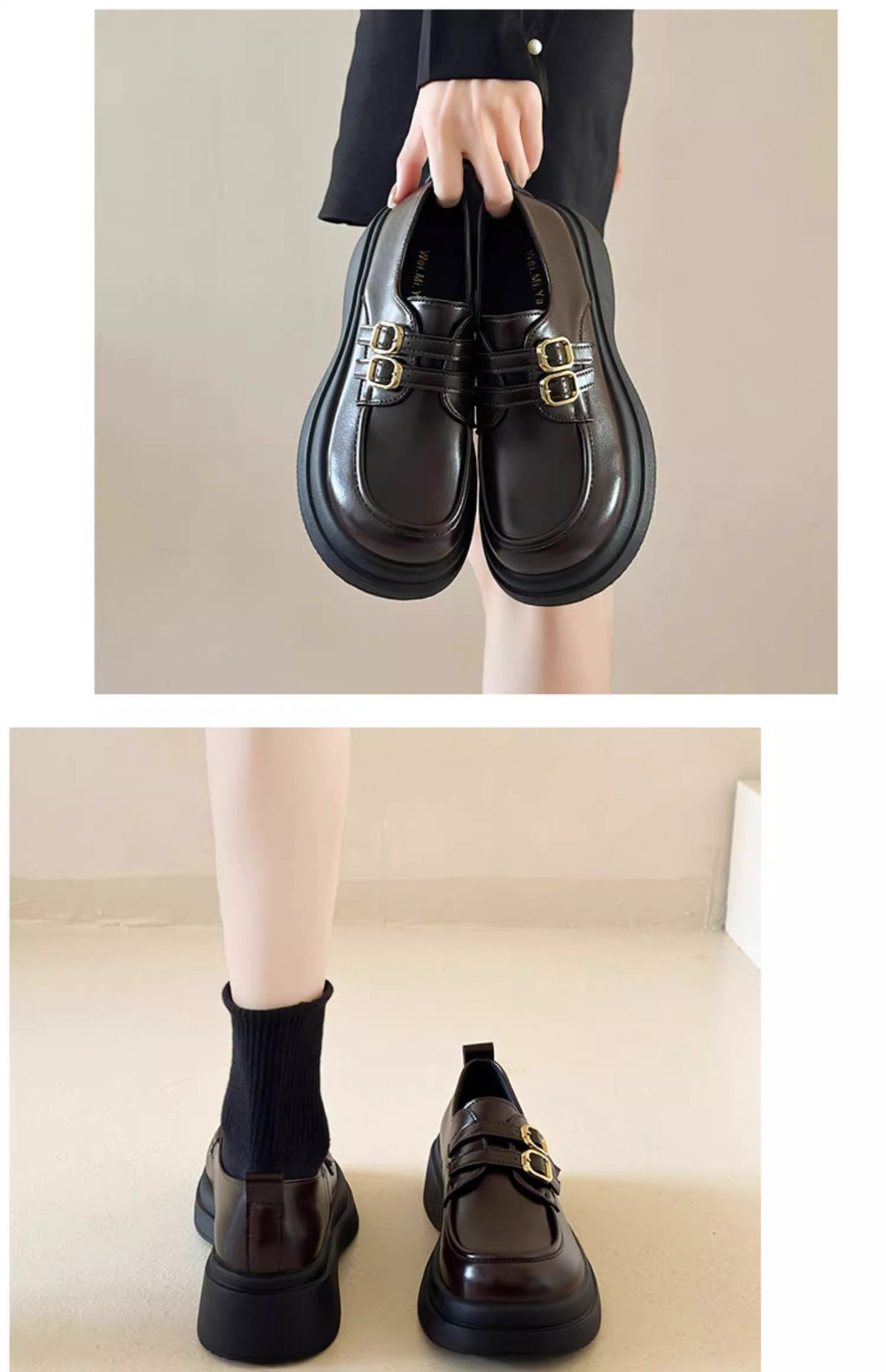 영국 스타일의 작은 가죽 신발 여성의 2024 새로운 가을과 겨울 올 매치 두꺼운 평면 검은 단일 신발 Mary Jane 로퍼스토어 가기