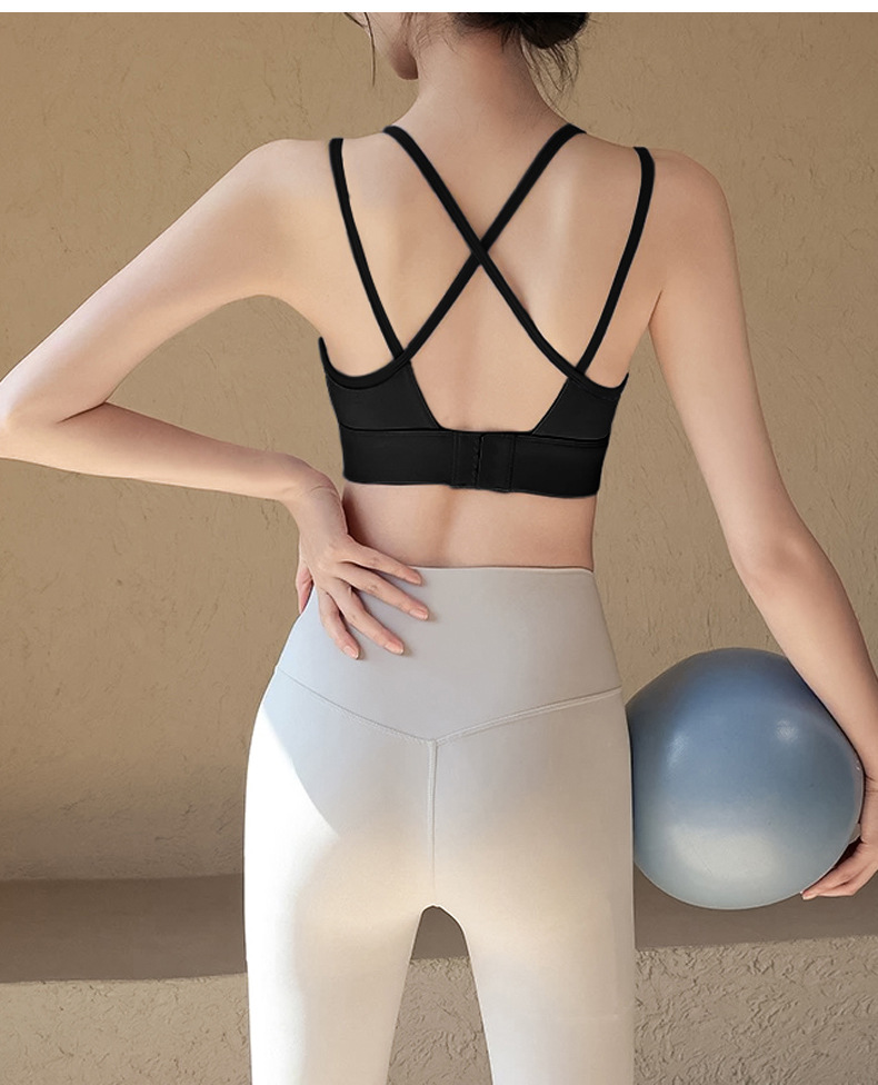 새로운 스포츠 속옷 여성 더블 얇은 어깨 스트랩 요가 조끼 고정 한 컵 피트니스 러닝 요가 아름다운 등 브래지어