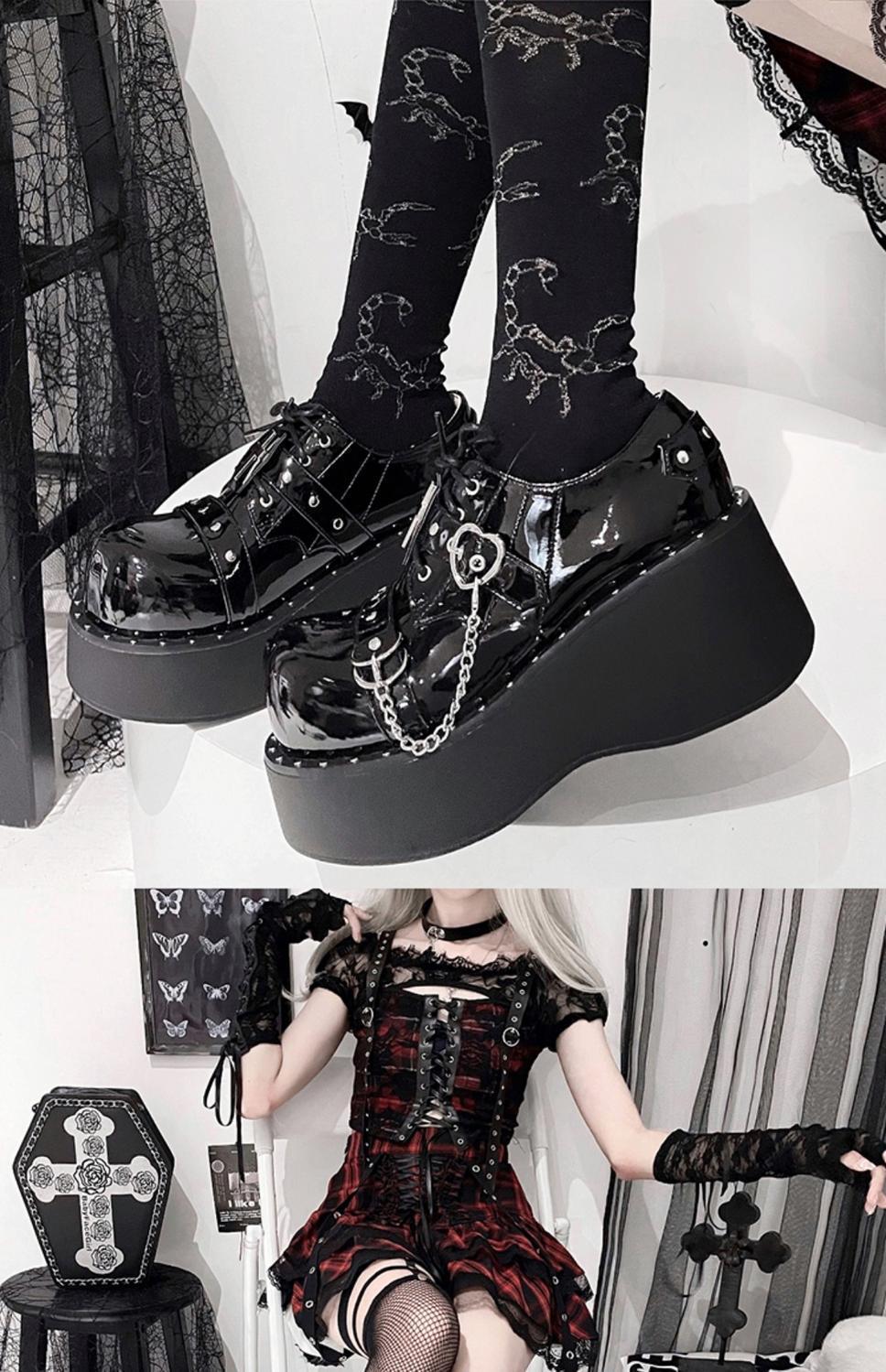 슈퍼 두꺼운 큰 발가락 신발 여성 높은 플랫폼 신발 Y2K 하위 문화 고딕 신발 Yabifeng 펑크 신발