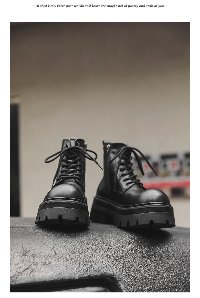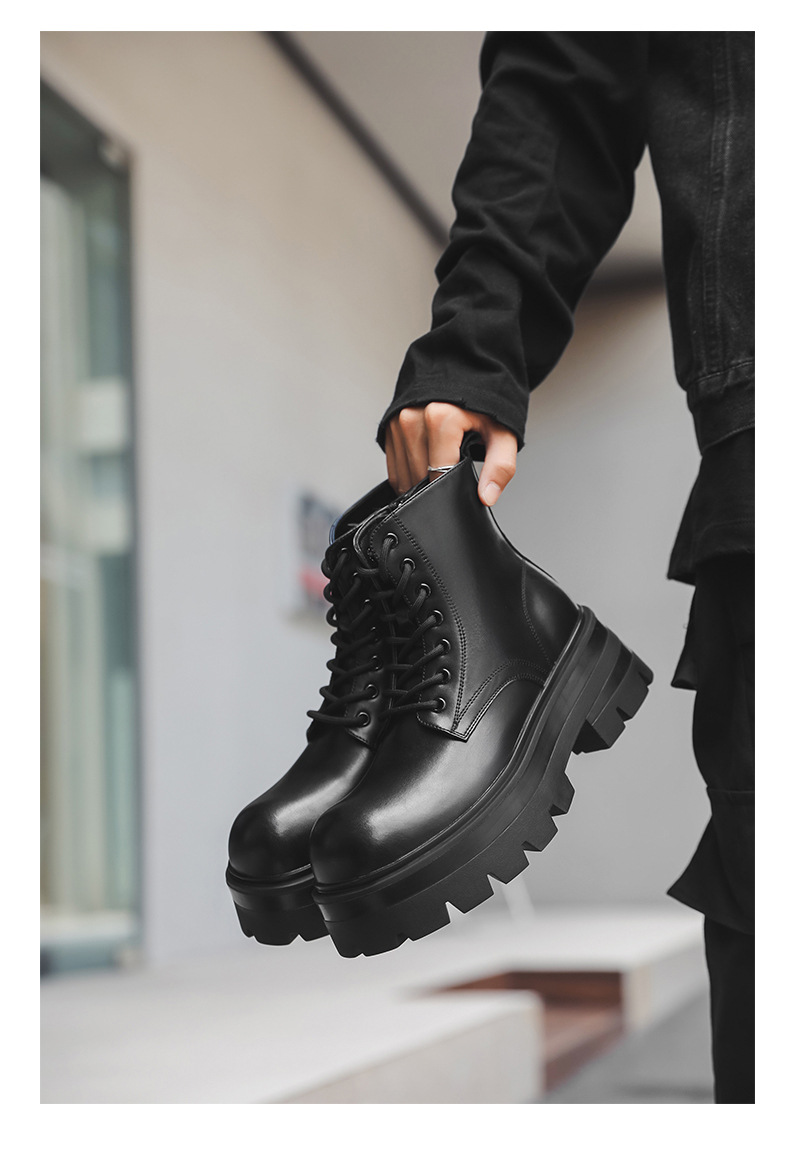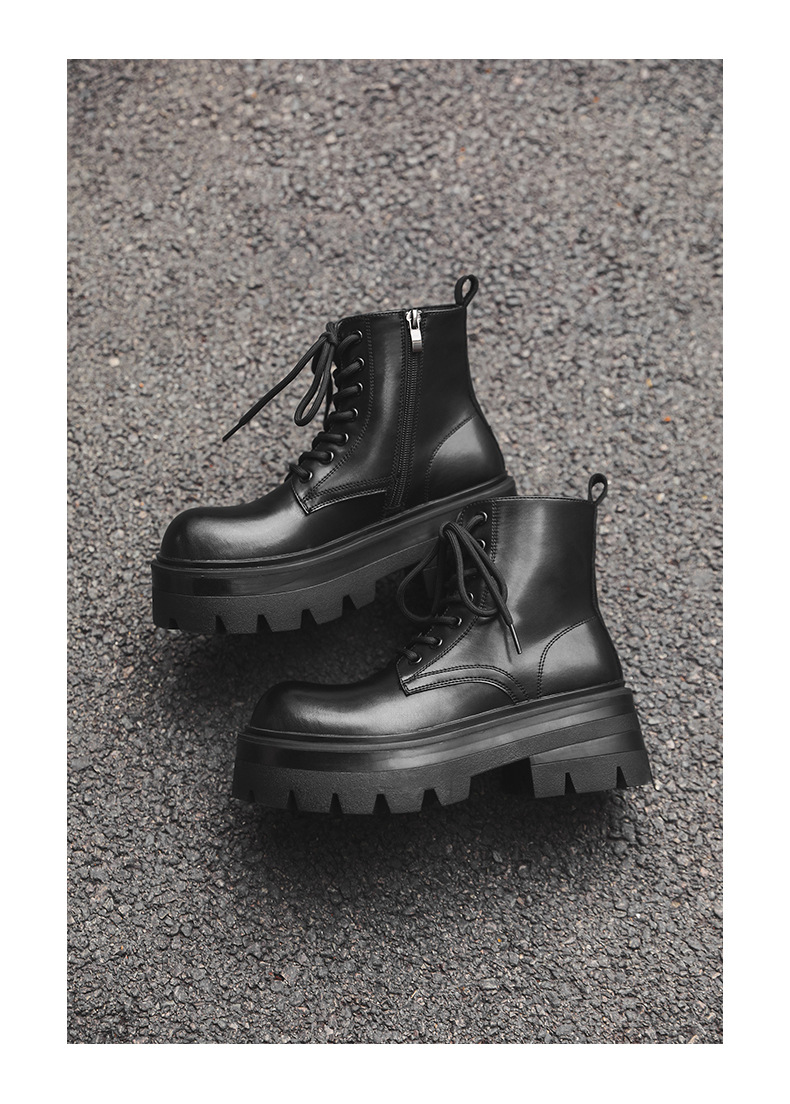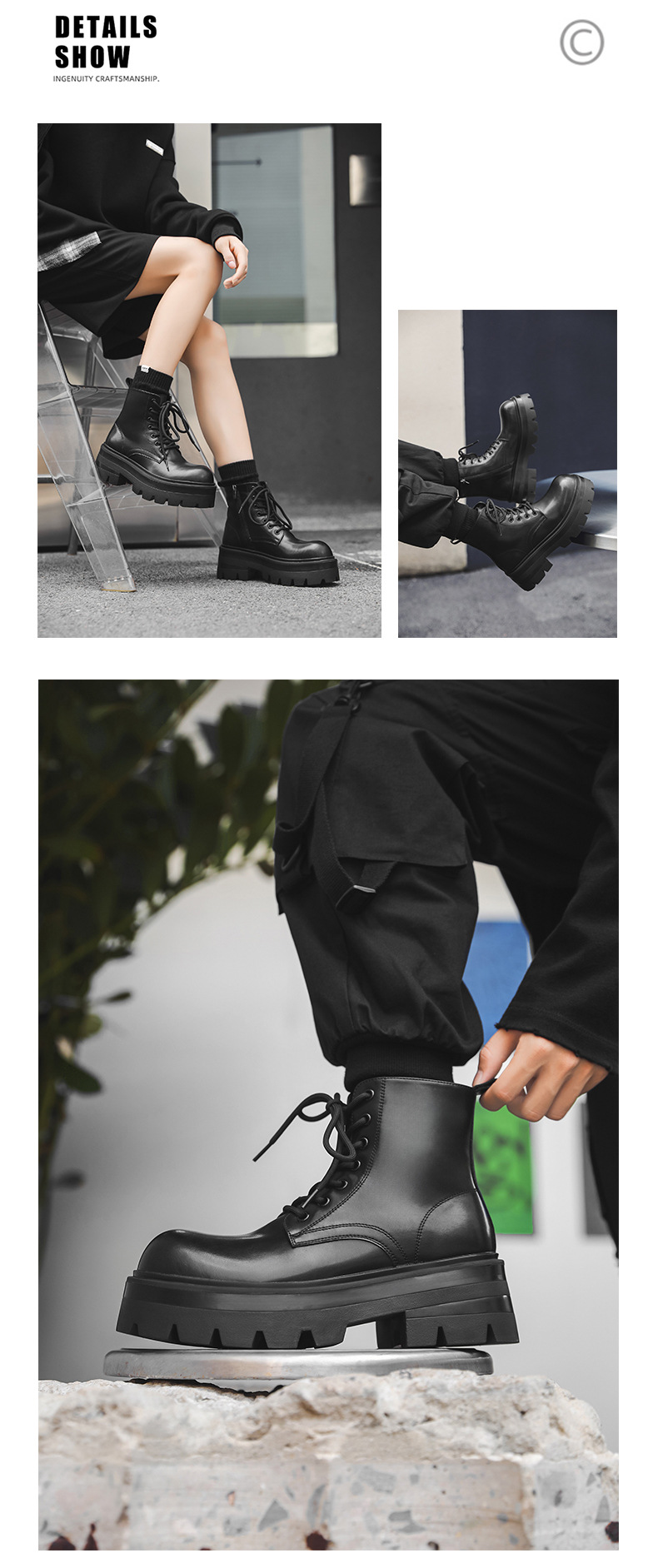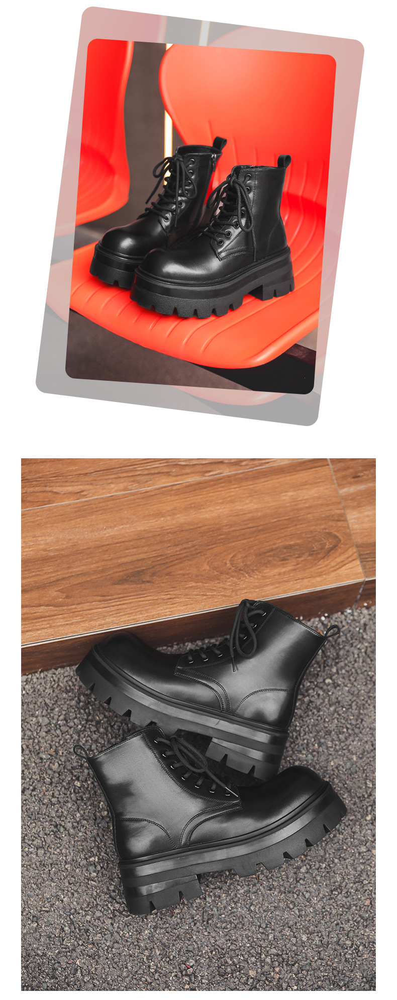 인터넷 연예인 Summer Martin 부츠 높이 증가 얇은 영국 스타일 두꺼운 바닥 2024 새로운 스타일 레이스 업 청키 힐 핸즈 앵클 부츠 남성 트렌디스토어 가기