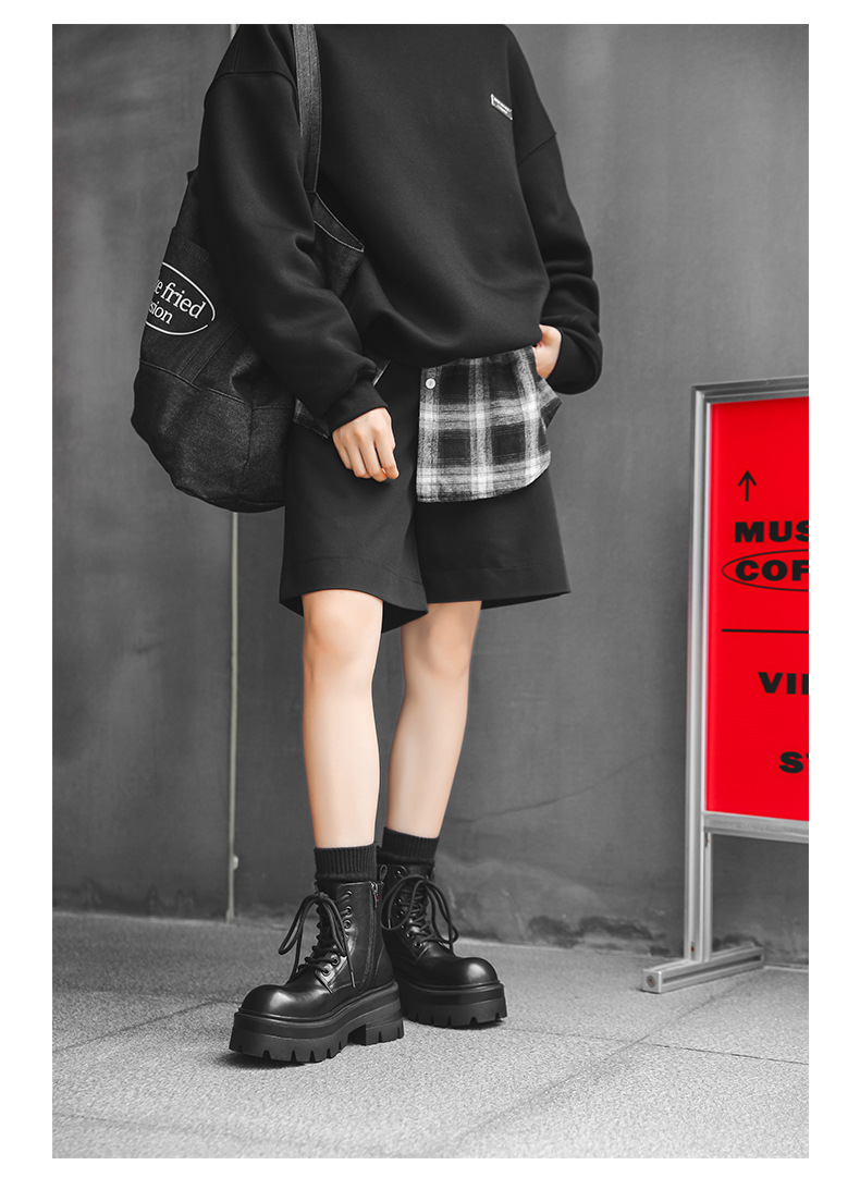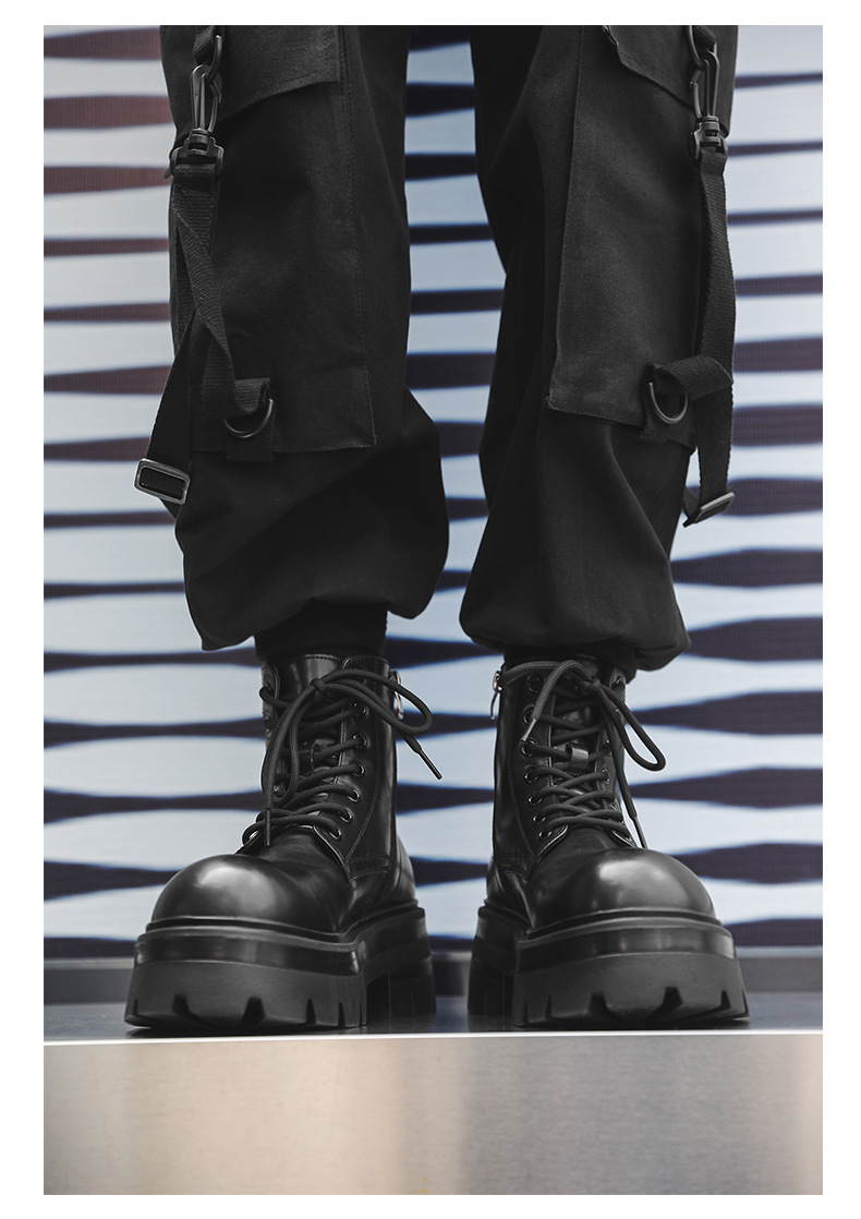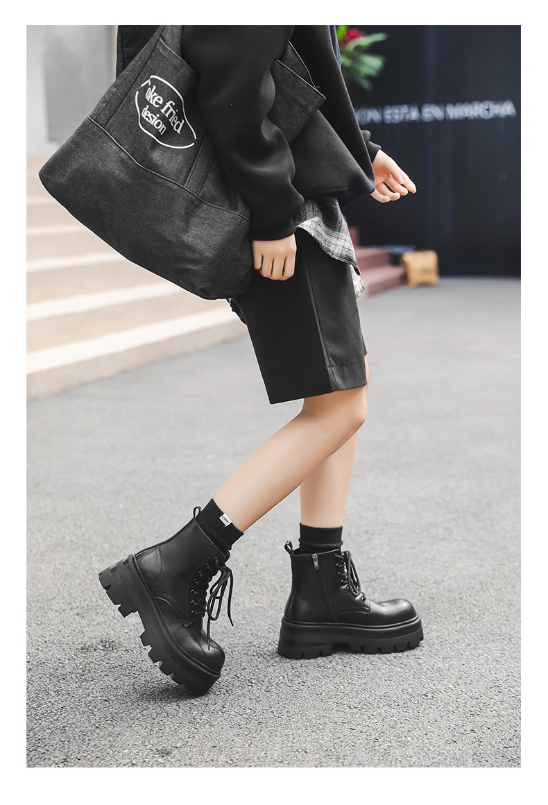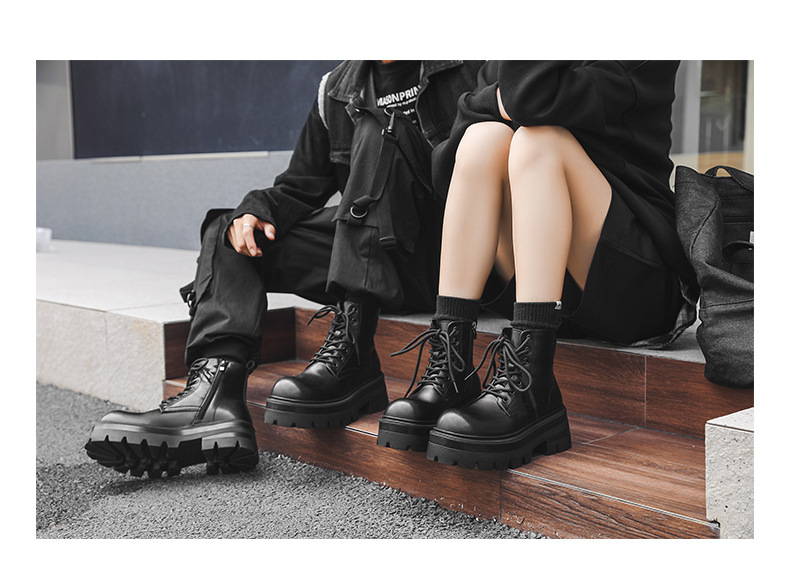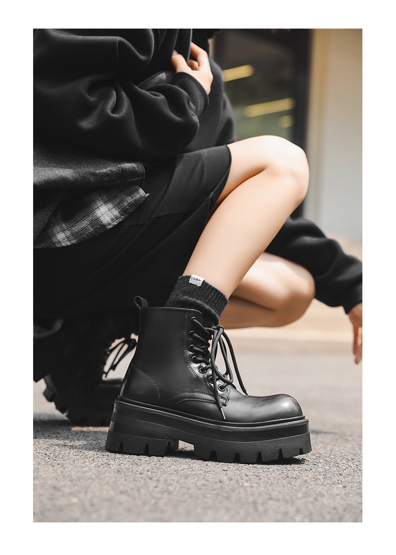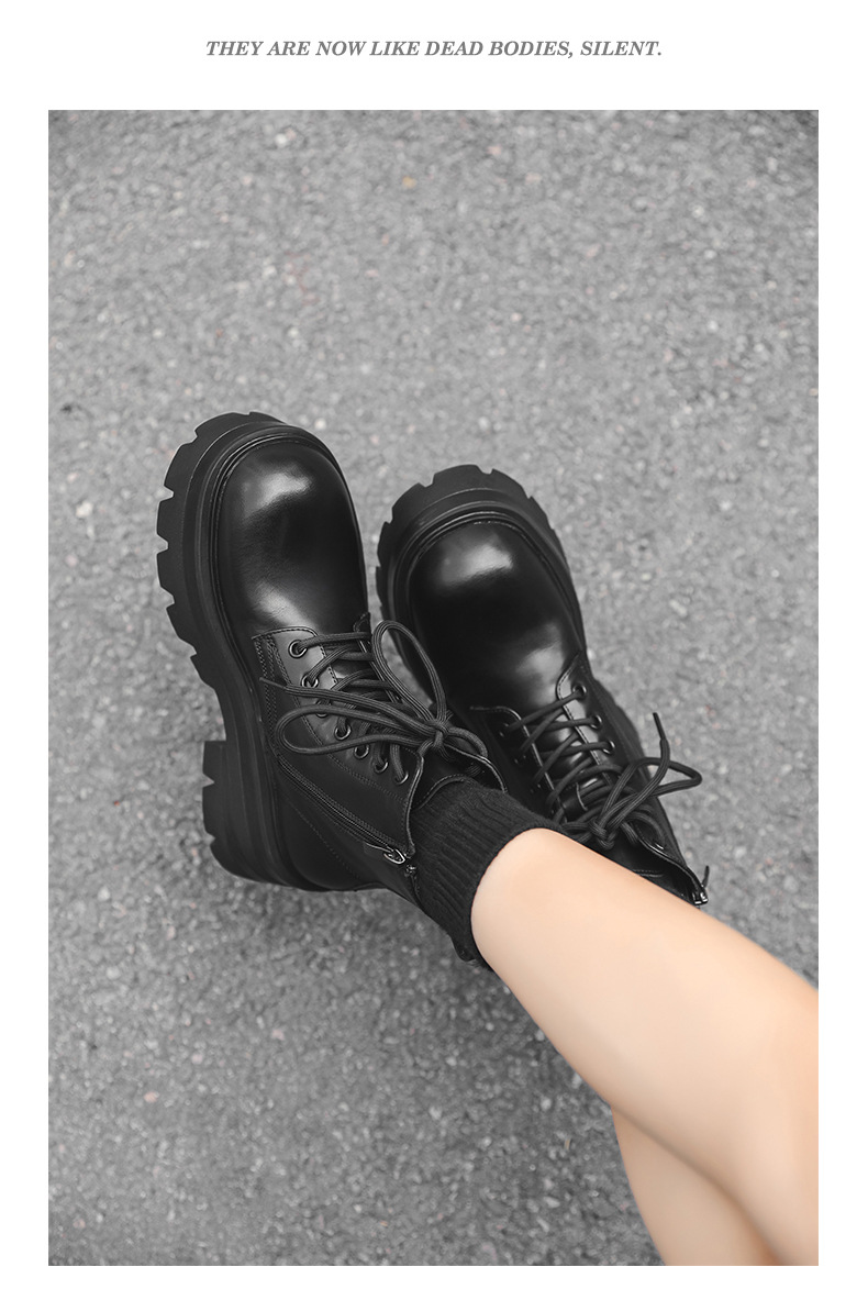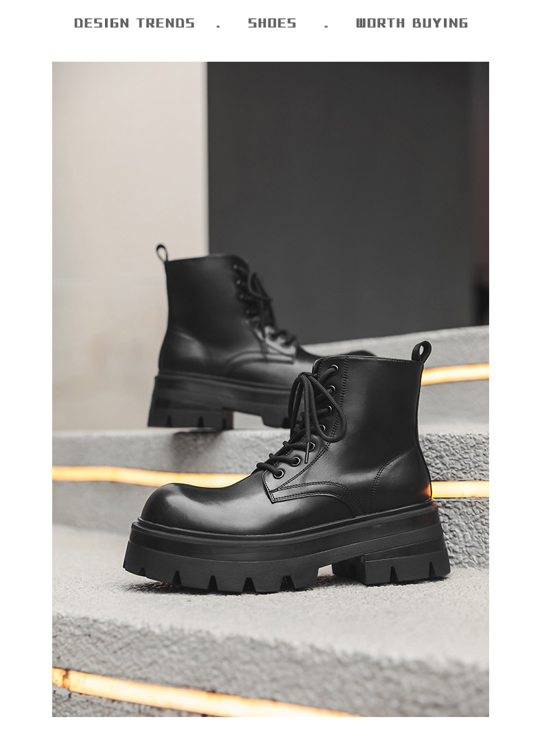 인터넷 연예인 Summer Martin 부츠 높이 증가 얇은 영국 스타일 두꺼운 바닥 2024 새로운 스타일 레이스 업 청키 힐 핸즈 앵클 부츠 남성 트렌디스토어 가기