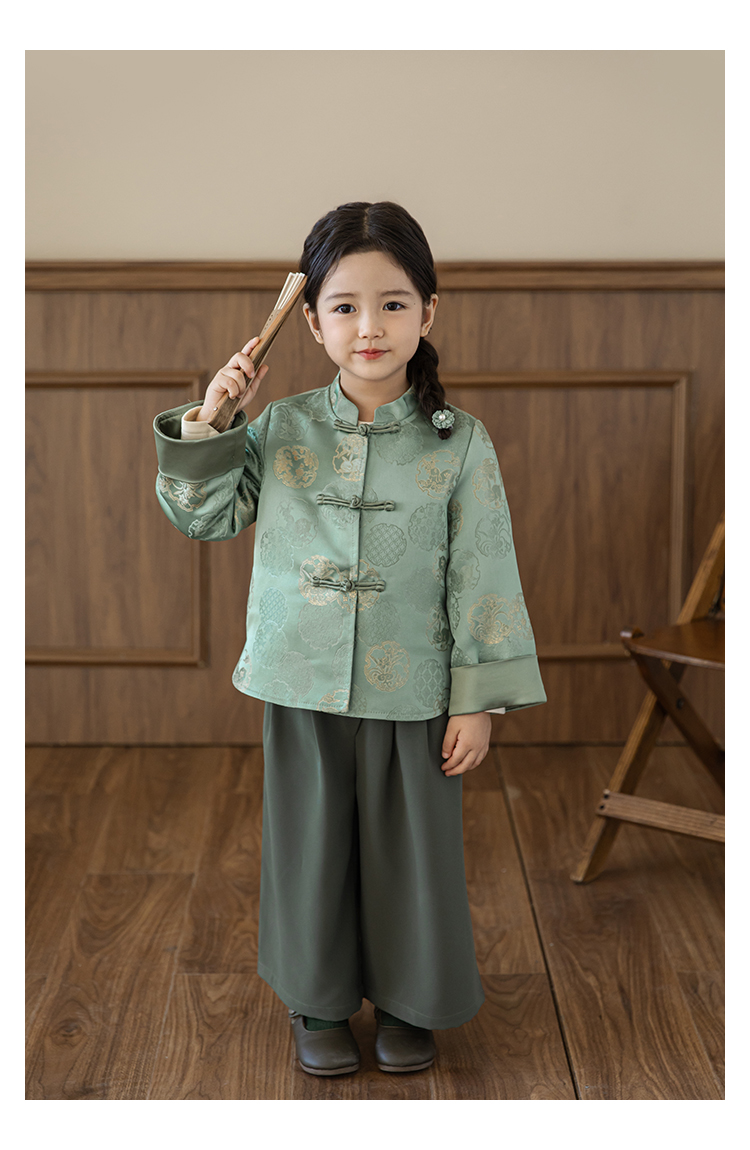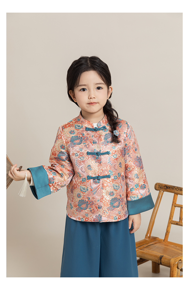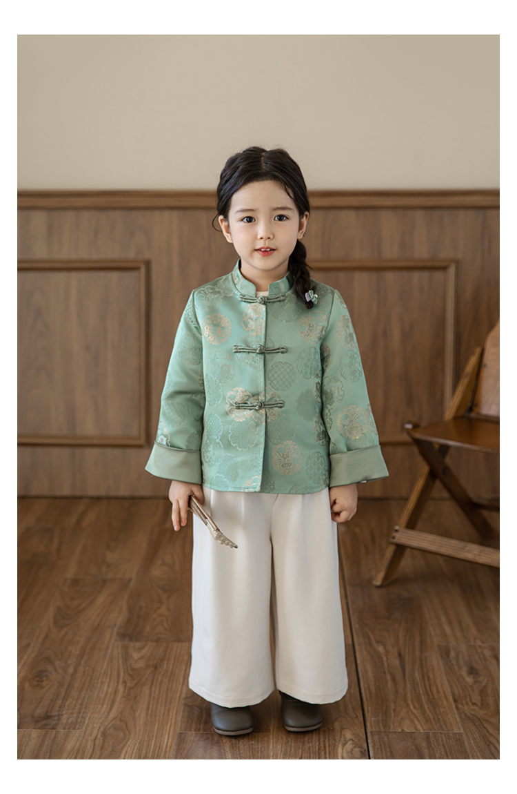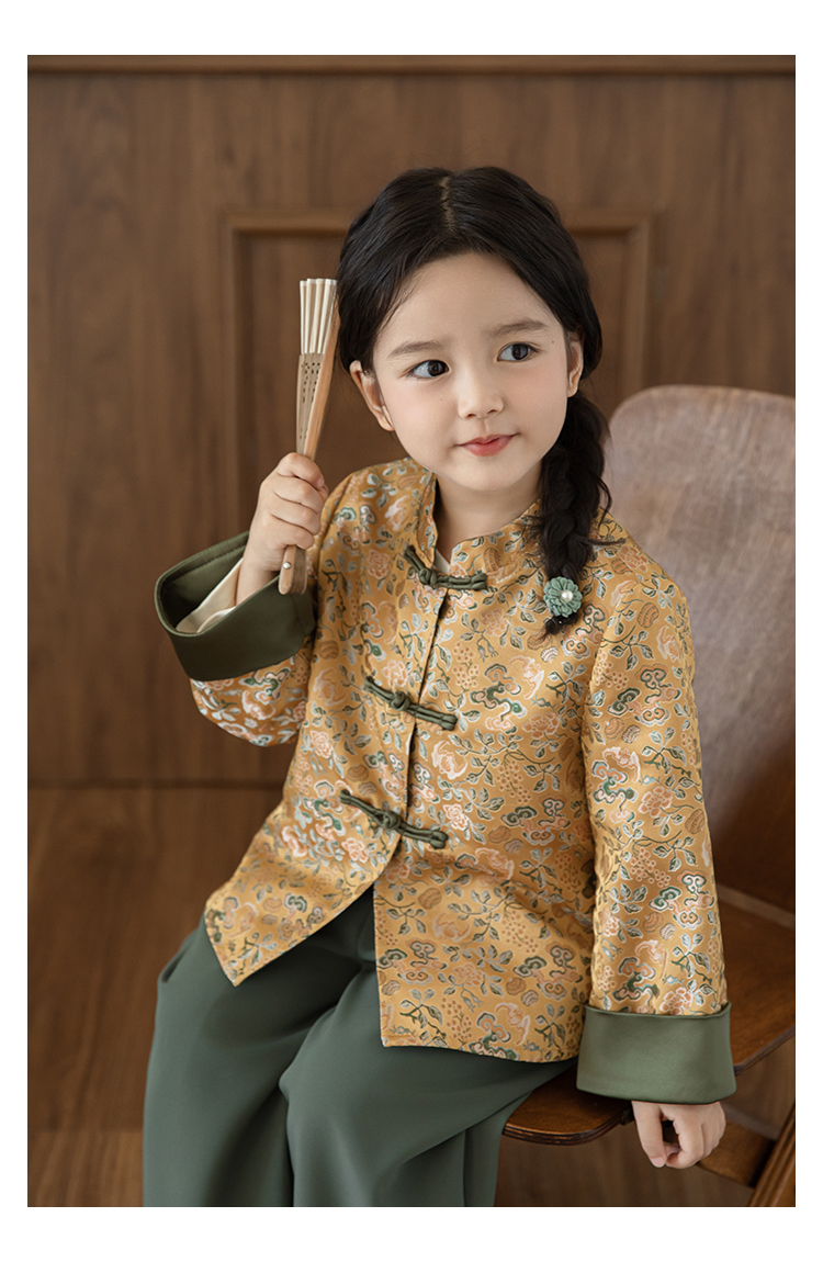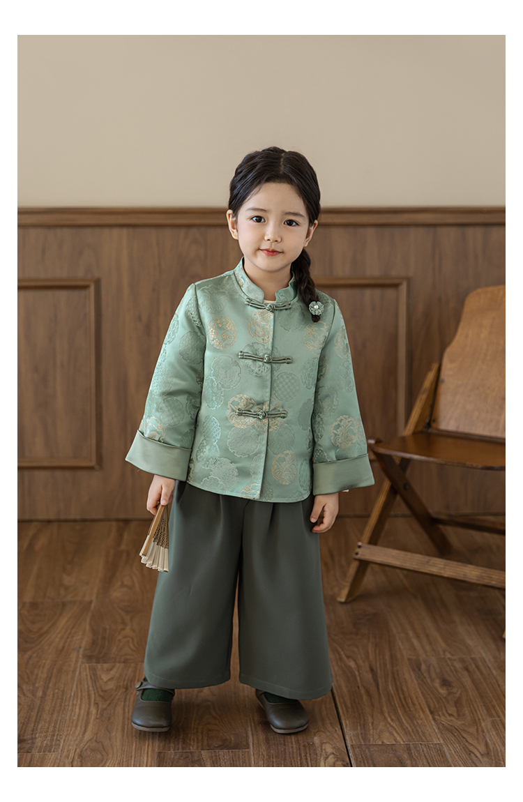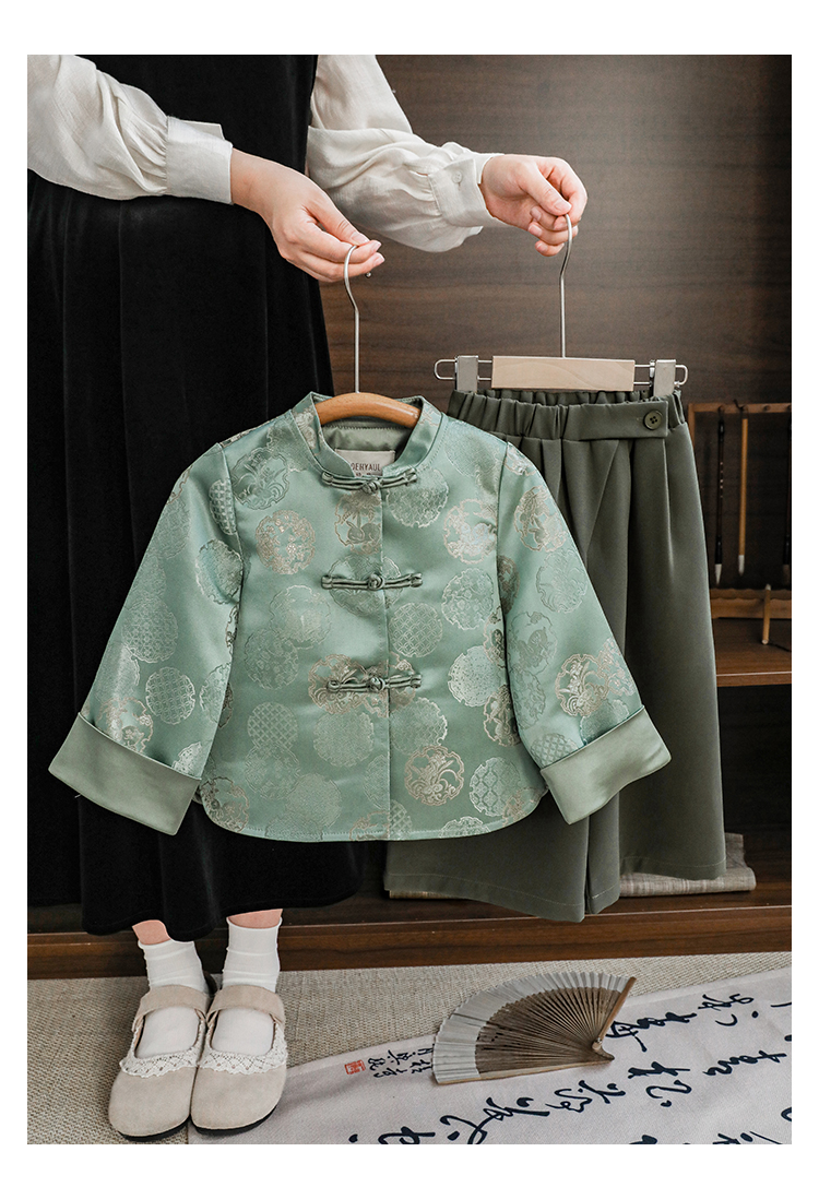 Wurib a 소녀의 새로운 중국 스타일 국가 스타일 간단한 cheongsam 스탠드 칼라 코트 2024 가을 Tang 세트 페어 브레스트 만다린 재킷 조수