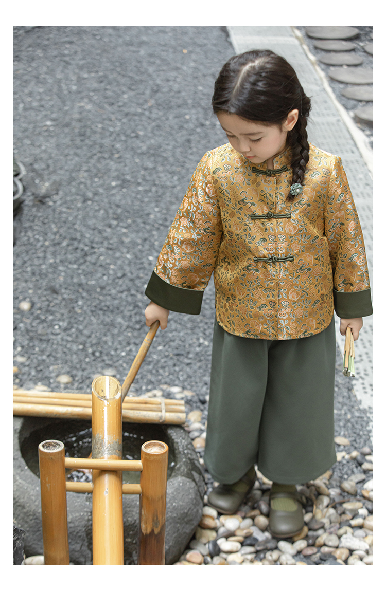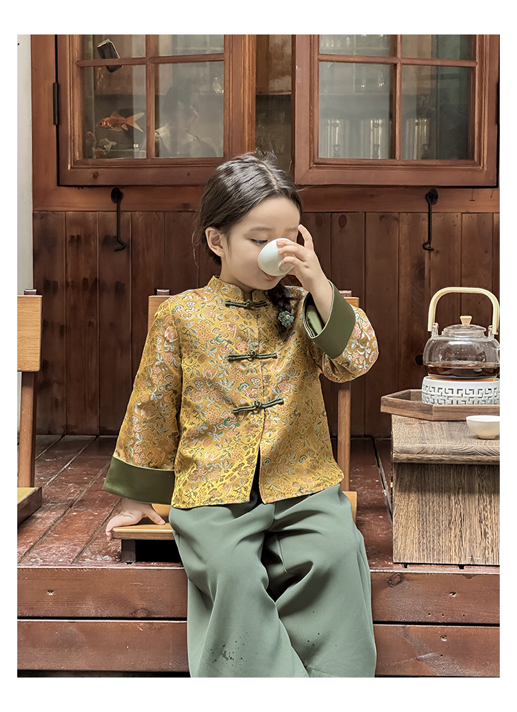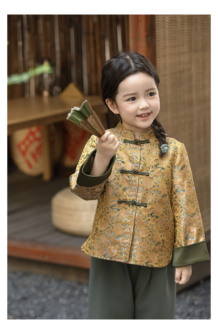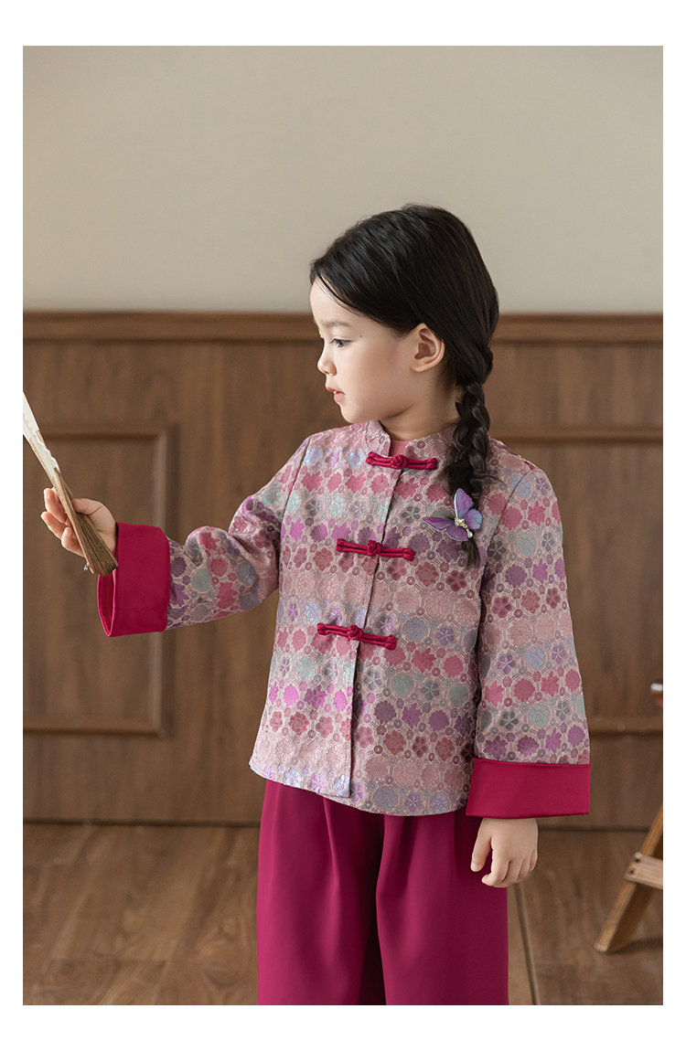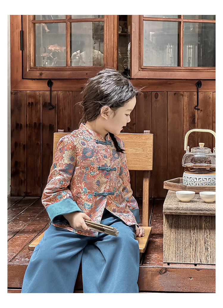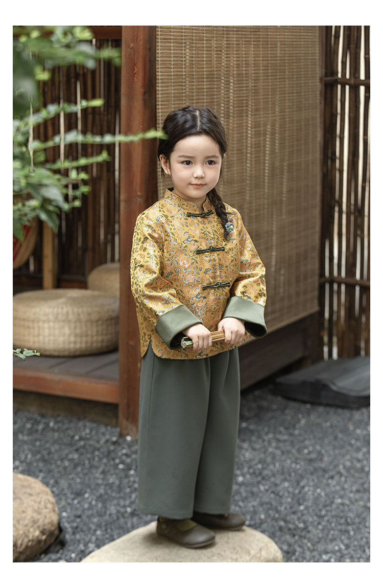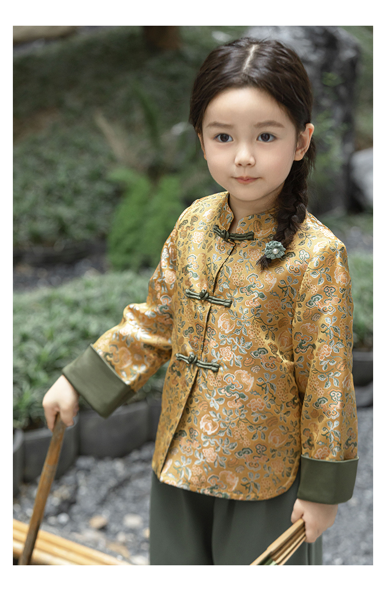 Wurib a 소녀의 새로운 중국 스타일 국가 스타일 간단한 cheongsam 스탠드 칼라 코트 2024 가을 Tang 세트 페어 브레스트 만다린 재킷 조수