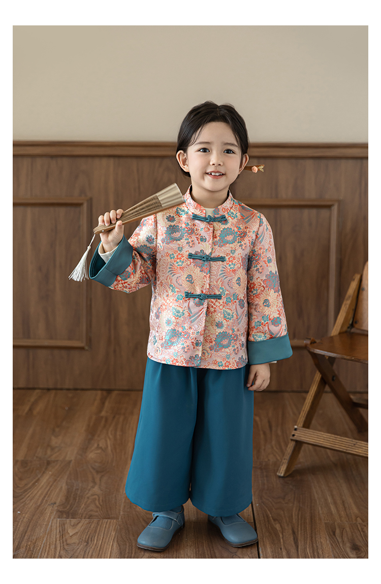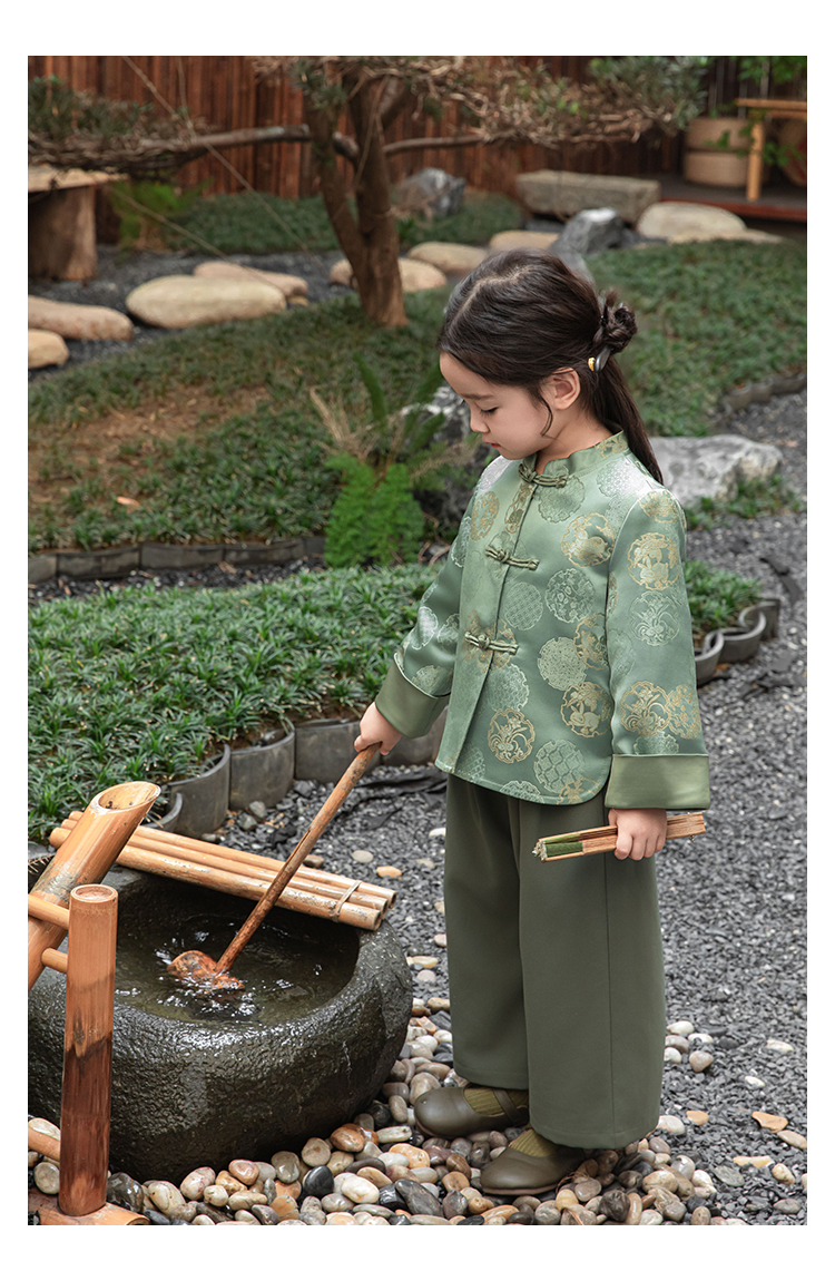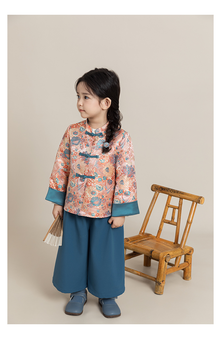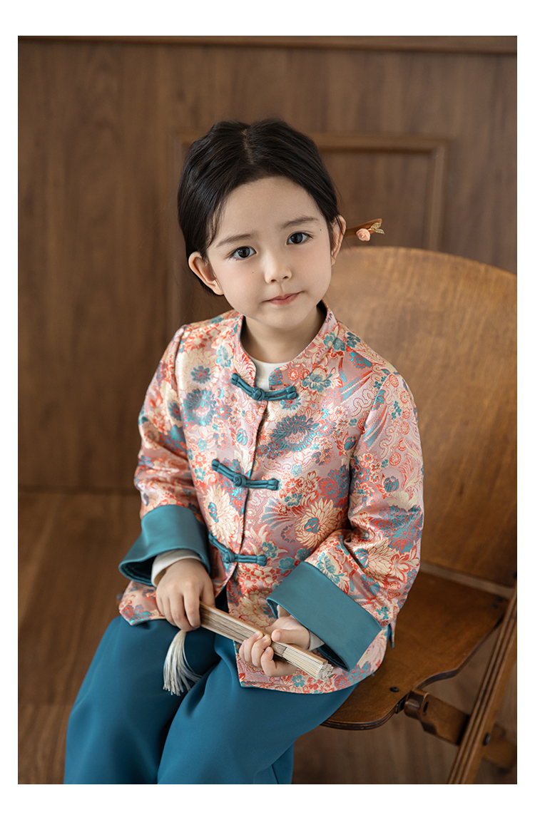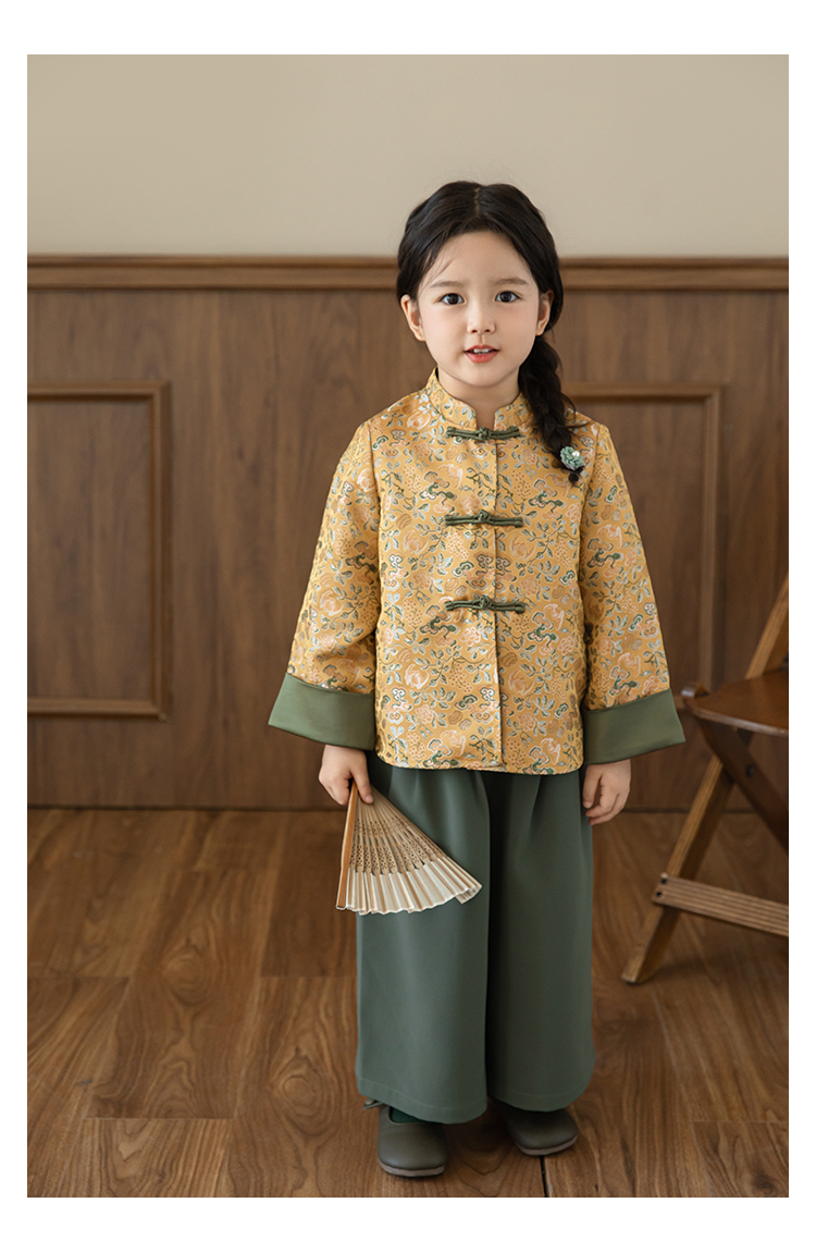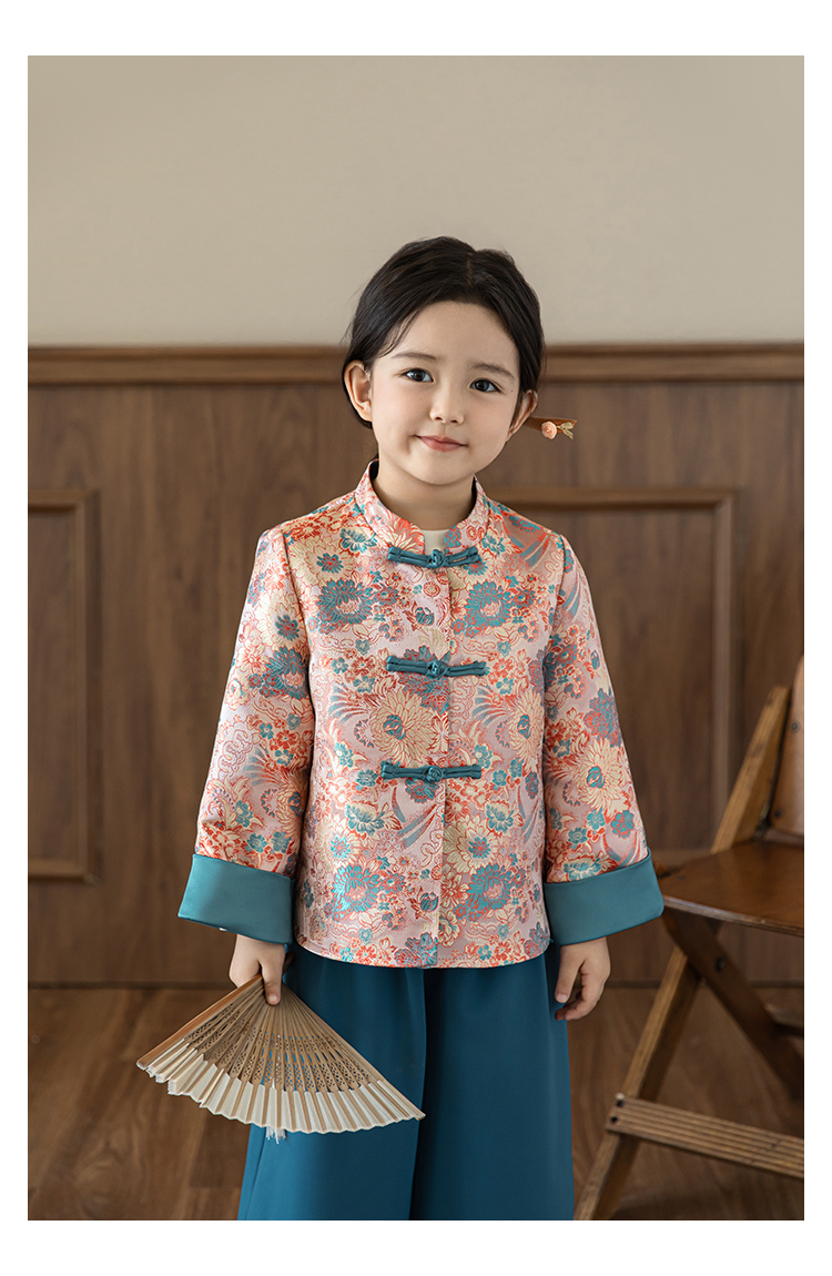Wurib a 소녀의 새로운 중국 스타일 국가 스타일 간단한 cheongsam 스탠드 칼라 코트 2024 가을 Tang 세트 페어 브레스트 만다린 재킷 조수