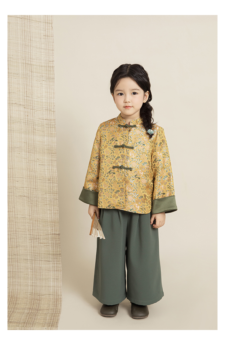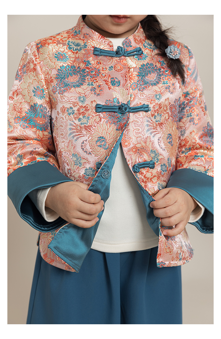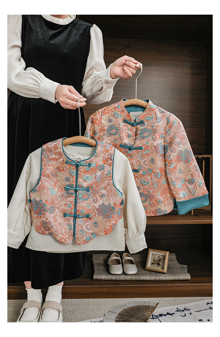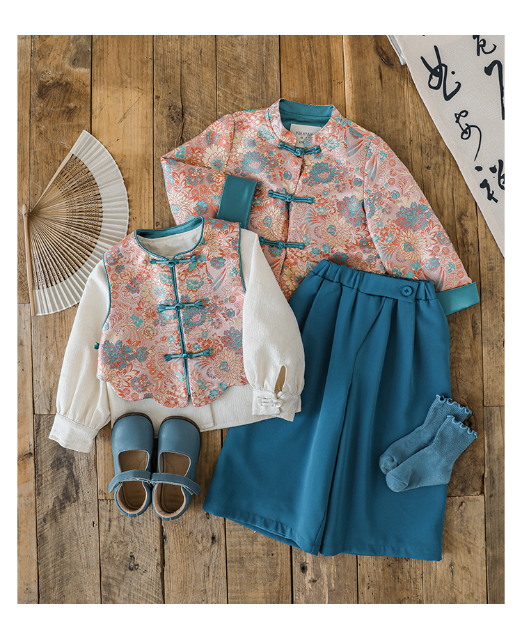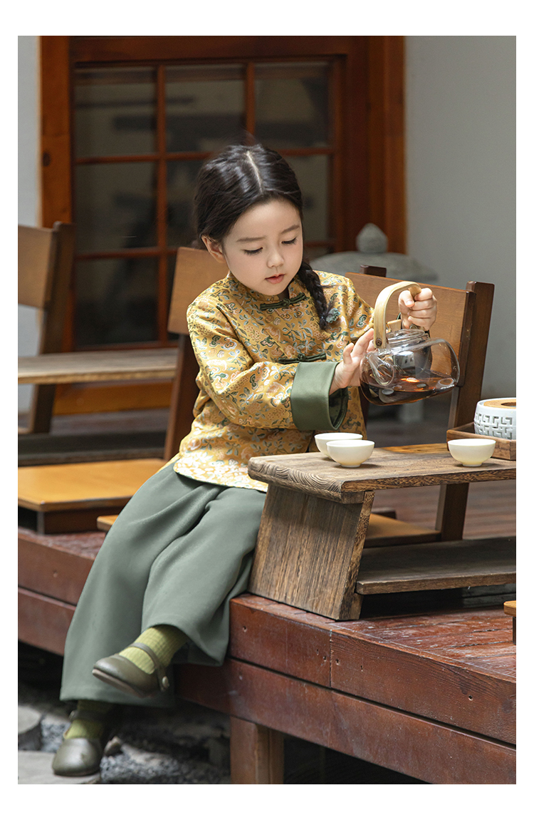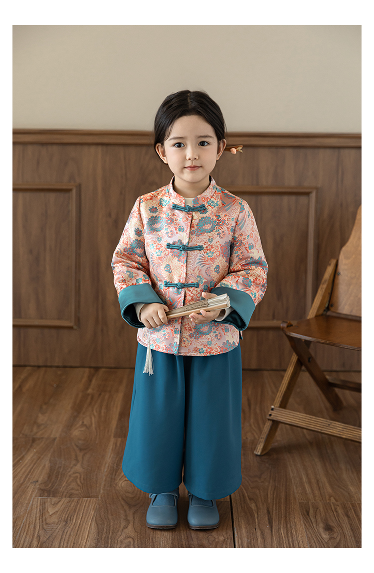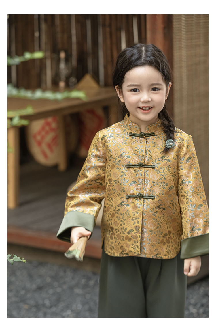Wurib a 소녀의 새로운 중국 스타일 국가 스타일 간단한 cheongsam 스탠드 칼라 코트 2024 가을 Tang 세트 페어 브레스트 만다린 재킷 조수