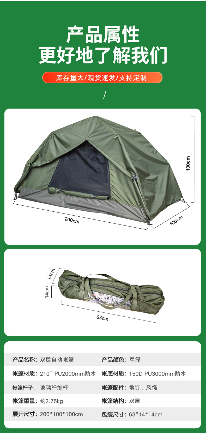 급등 카키 위장 자동 단일 군인 텐트 빠른 야외 캠핑 훈련 텐트 공장 도매 사용자 정의