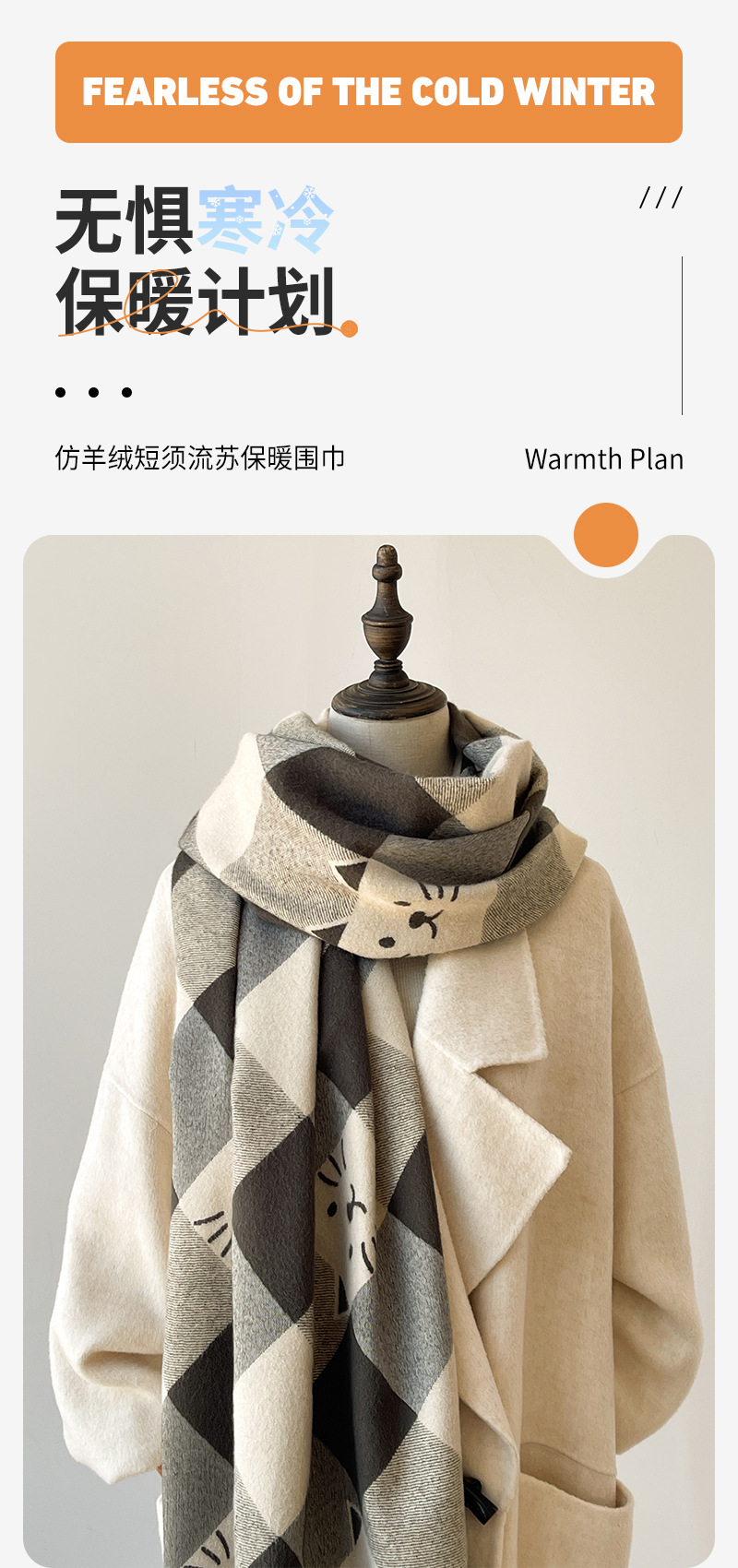 기하학적 광장 비스듬한 라인 새끼 고양이 장식 동물 달콤한 귀여운 작은 신선한 스타일 가을과 겨울 여성의 캐시미어 스카프스토어 가기