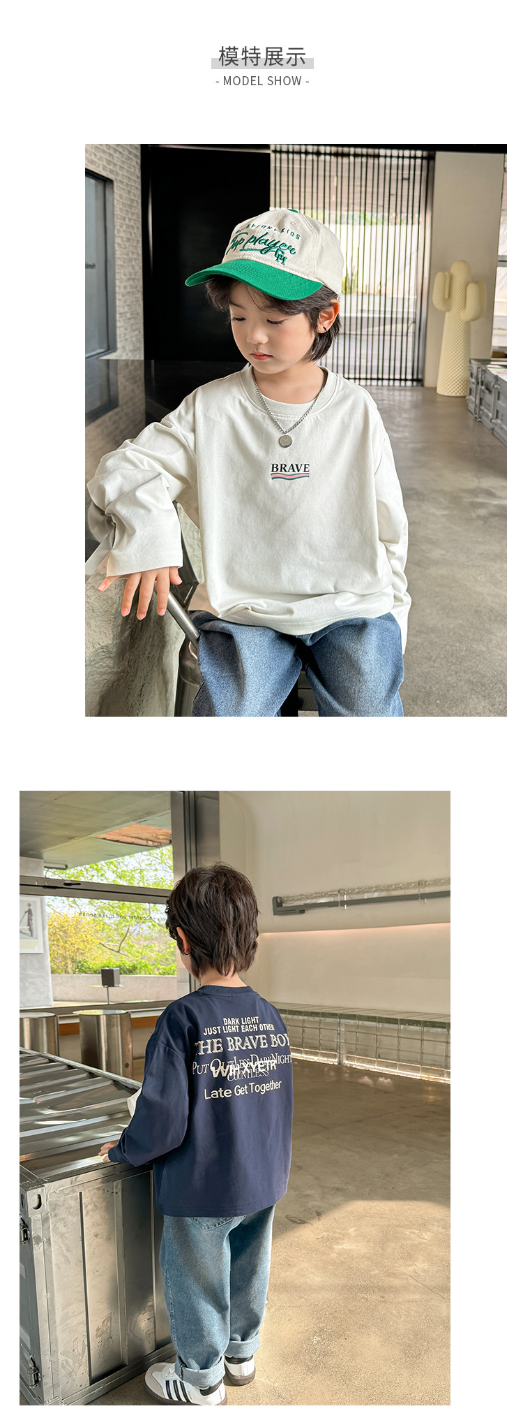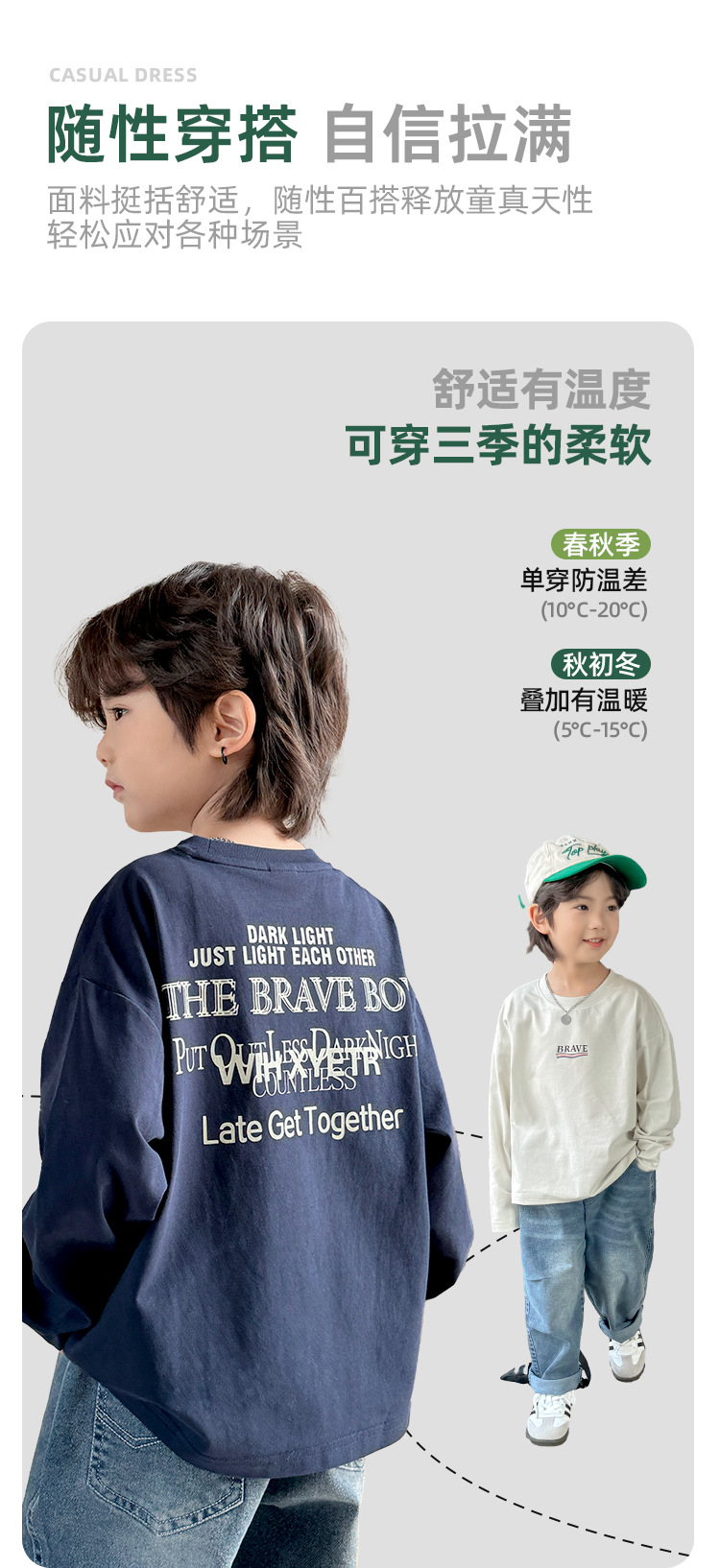 Haima의 소년 순면 프린트 긴팔 티셔츠 2025 가을 새로운 한국 스타일 아동복 서양식 중대형 어린이스토어 가기