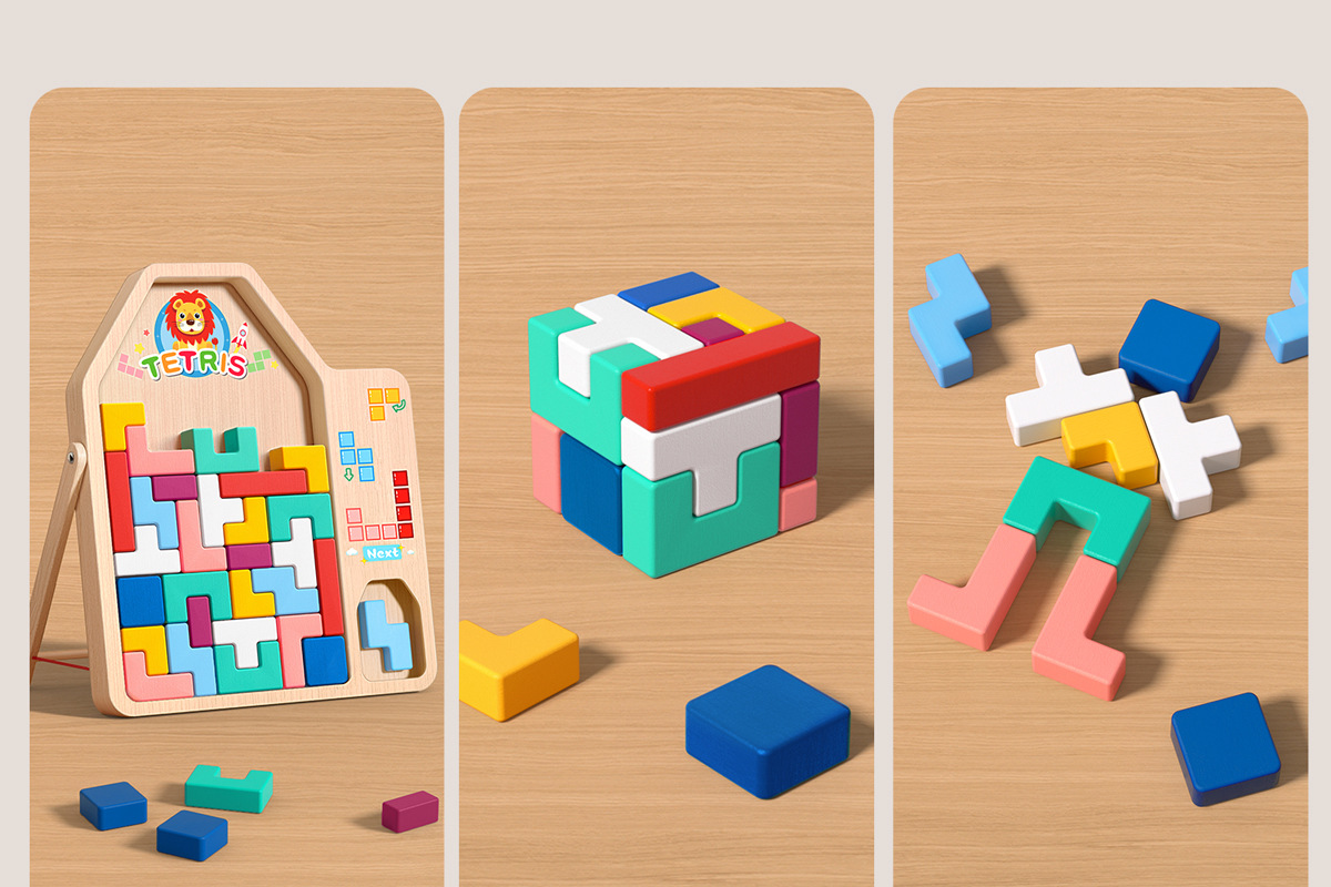 테트리스 빌딩 블록 퍼즐 장난감 평면 그림 퍼즐 3-6 세 어린이 생일 선물 나무 지능 퍼즐스토어 가기