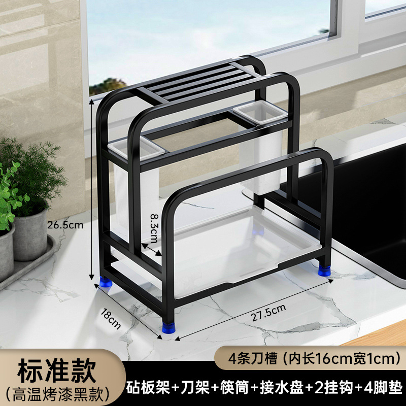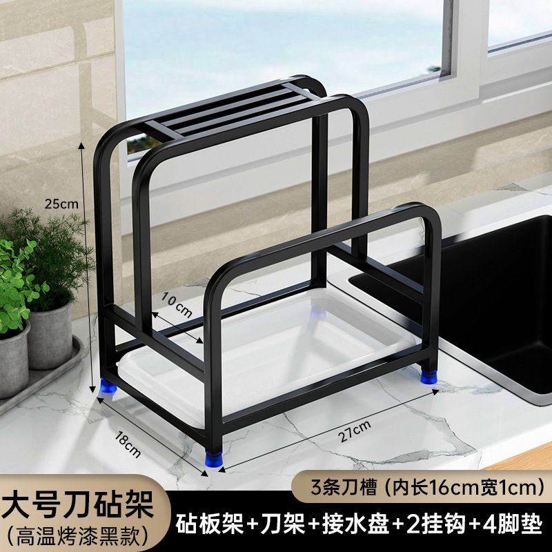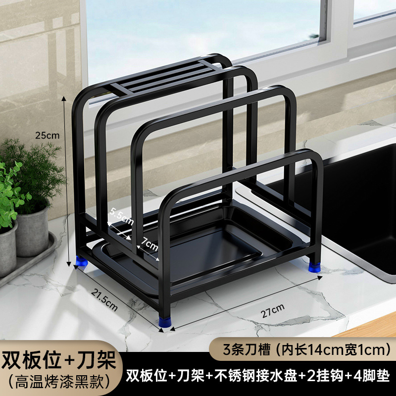 • 블랙 대형 2구 도마 거치대 + 칼꽂이