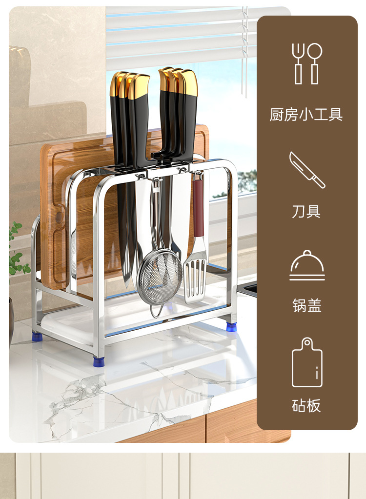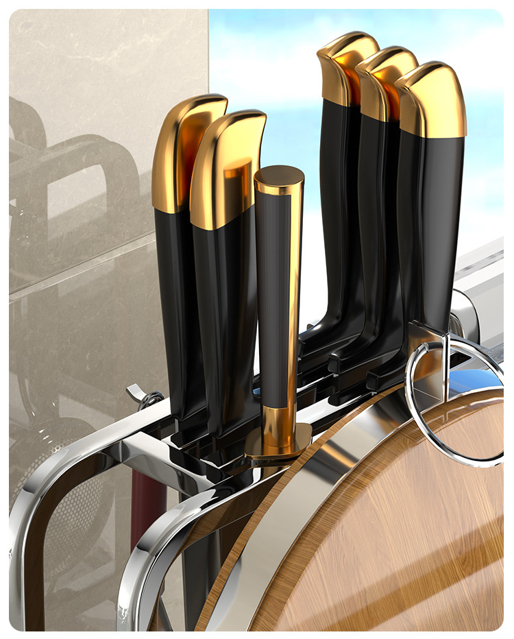 국경 간 다기능 나이프와 모빌 홀더 가정용 주방 카운터 탑 스테인레스 스틸 나이프 홀더 나이프 및 도마 스토리지 통합 스토리지 랙