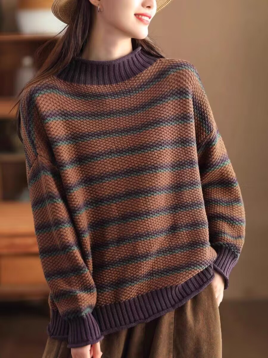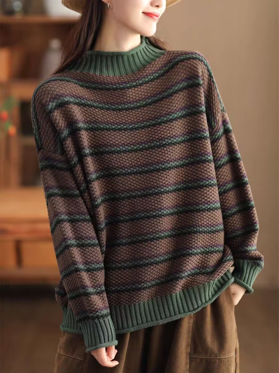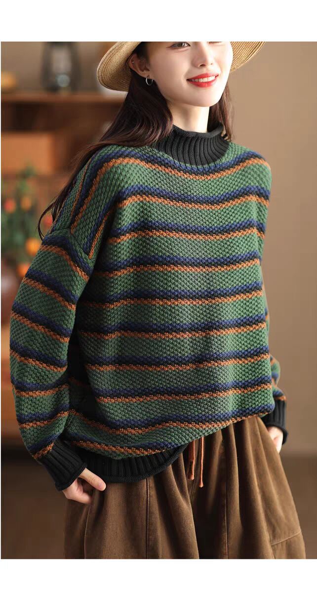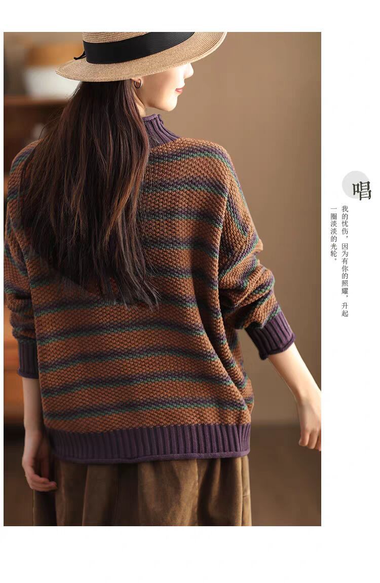 레트로 예술적 니트 스웨터 여성 하프 터틀넥 풀오버 2024 새로운 느슨한 긴팔 니트 바닥 셔츠 탑