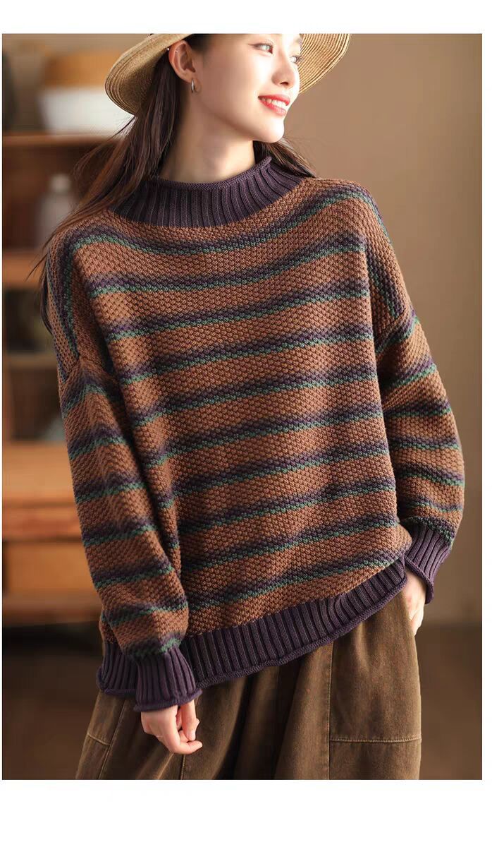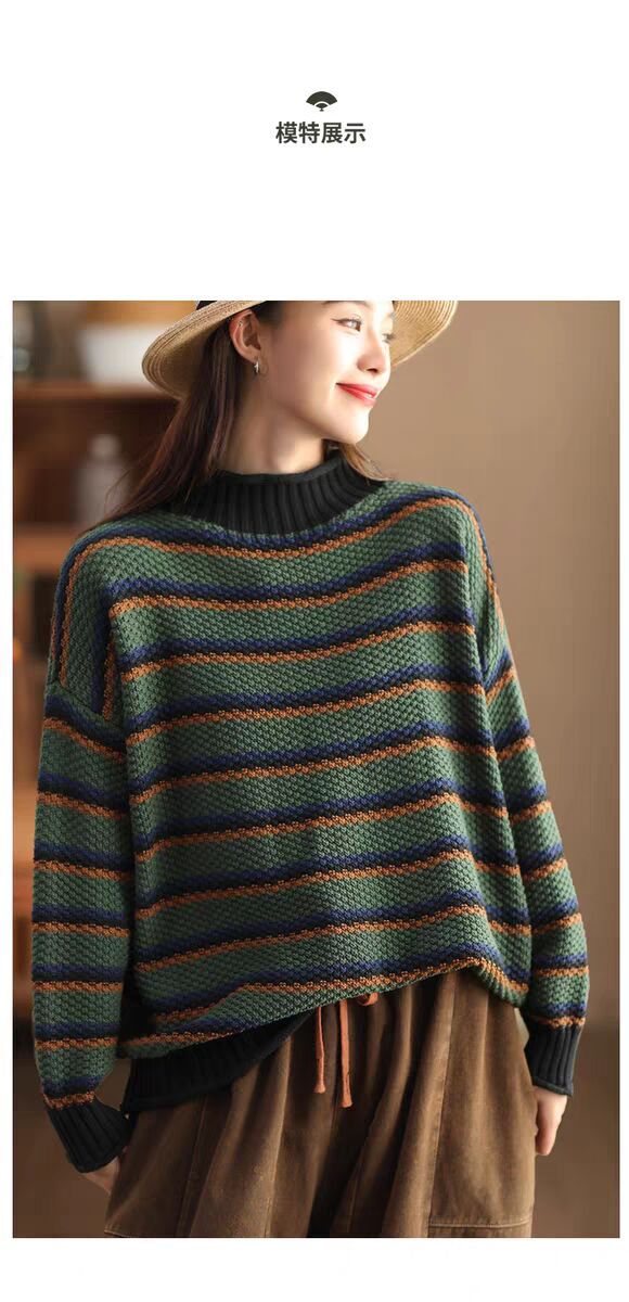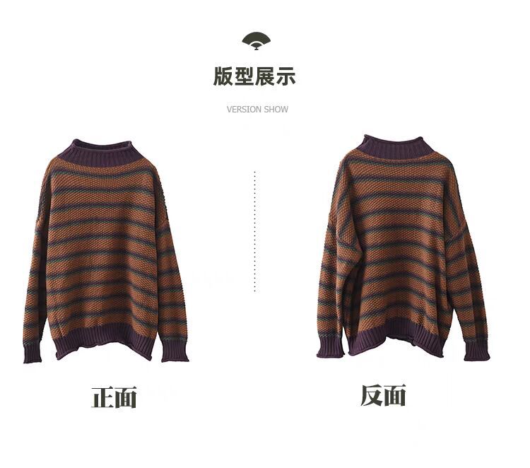 레트로 예술적 니트 스웨터 여성 하프 터틀넥 풀오버 2024 새로운 느슨한 긴팔 니트 바닥 셔츠 탑스토어 가기