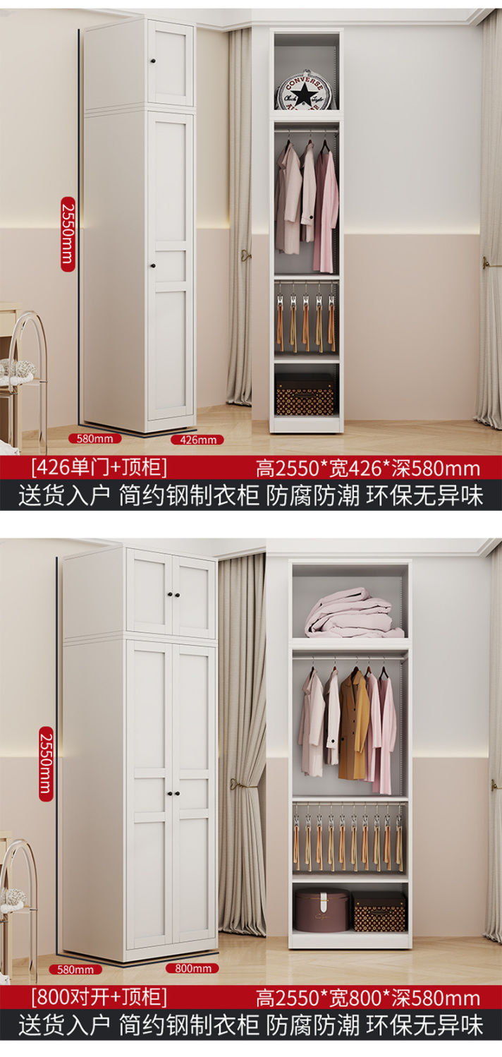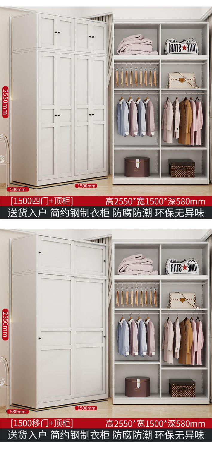 미닫이 문 옷장 가정용 철제 캐비닛 강철 옷장 프레스형 잠금 장치가 없는 파티션은 위아래로 이동할 수 있습니다. 580 깊은 상단 캐비닛