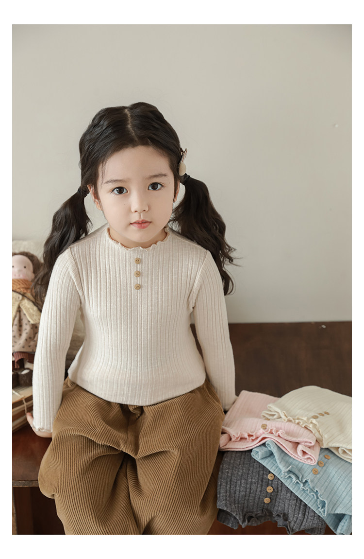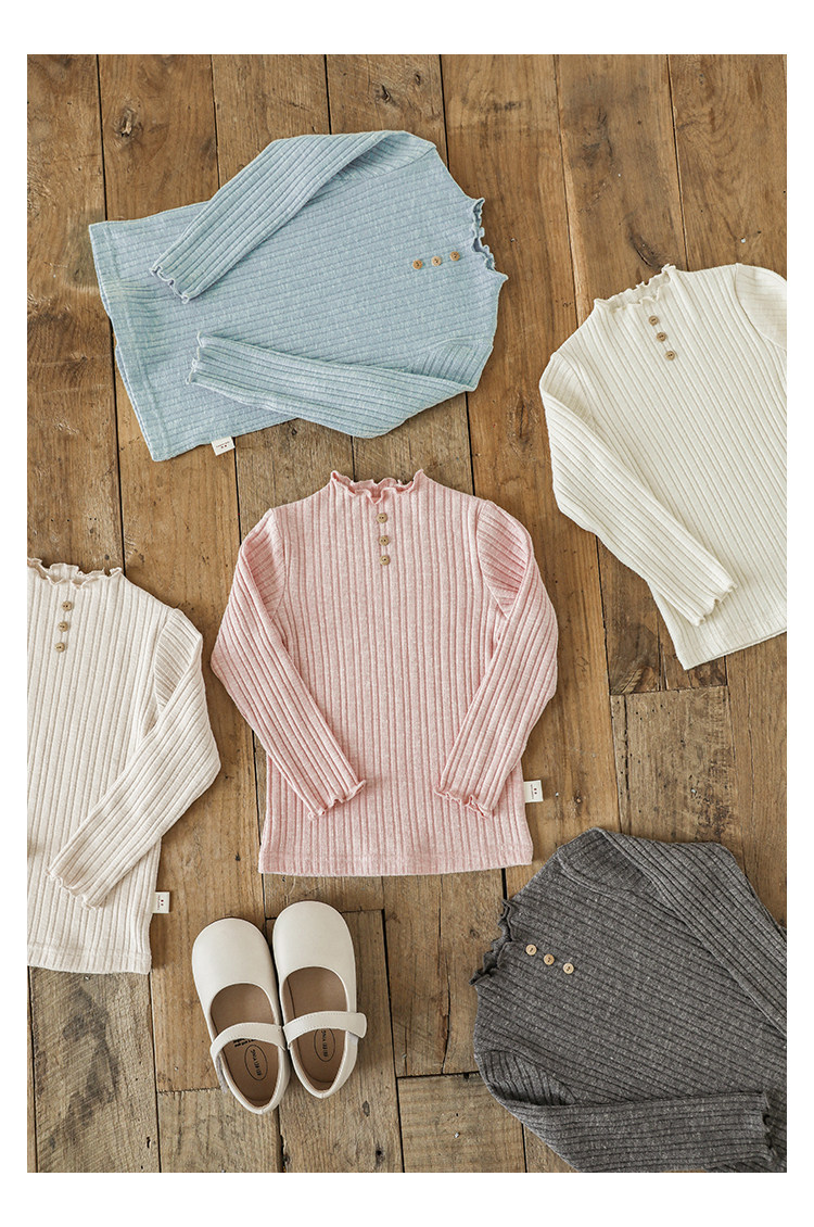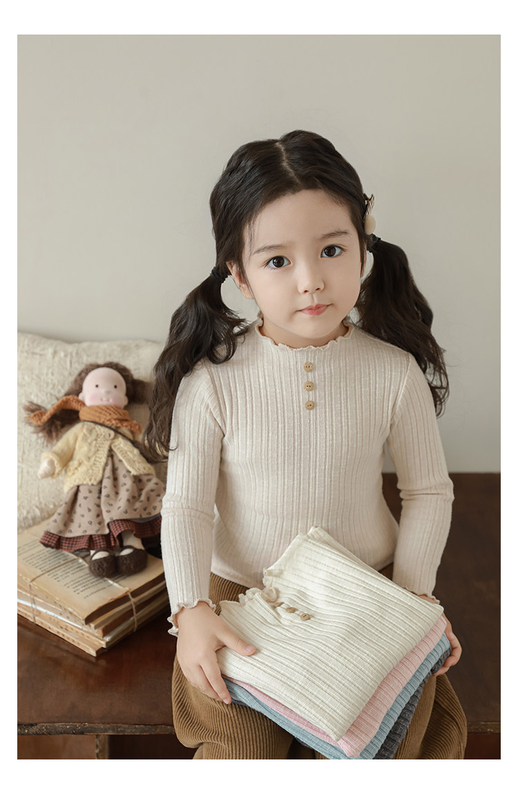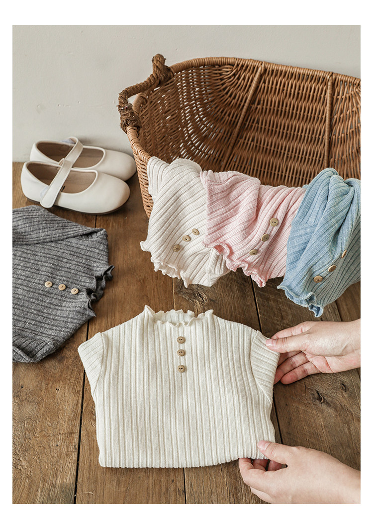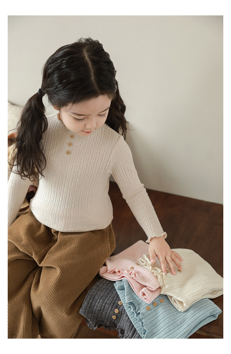 Wurib 소녀의 피트 스트립 질감 부드러운 왁스 같은 부드러운베이스 셔츠 가을 대비 색상 나무 버튼 캐주얼 티셔츠 조수