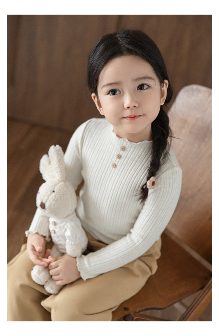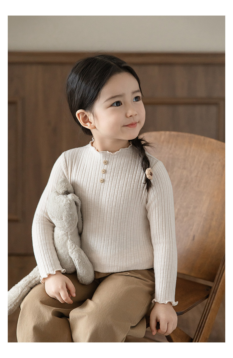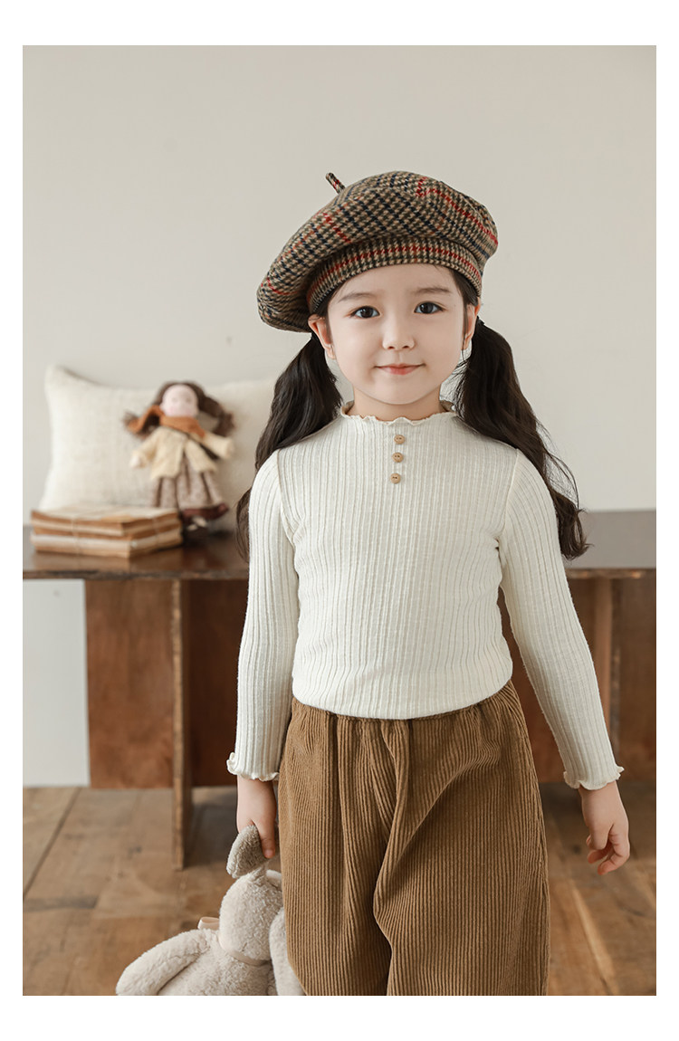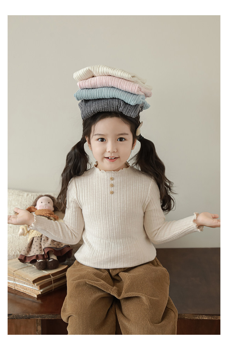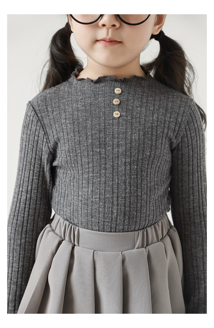 Wurib 소녀의 피트 스트립 질감 부드러운 왁스 같은 부드러운베이스 셔츠 가을 대비 색상 나무 버튼 캐주얼 티셔츠 조수