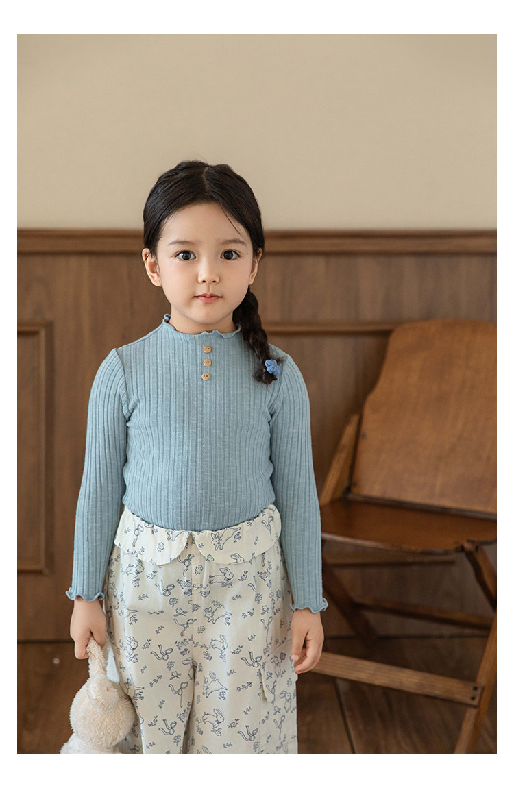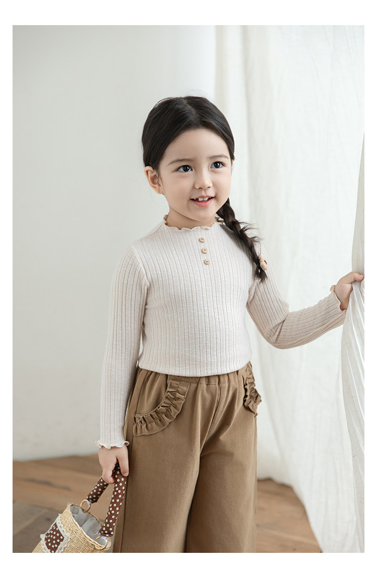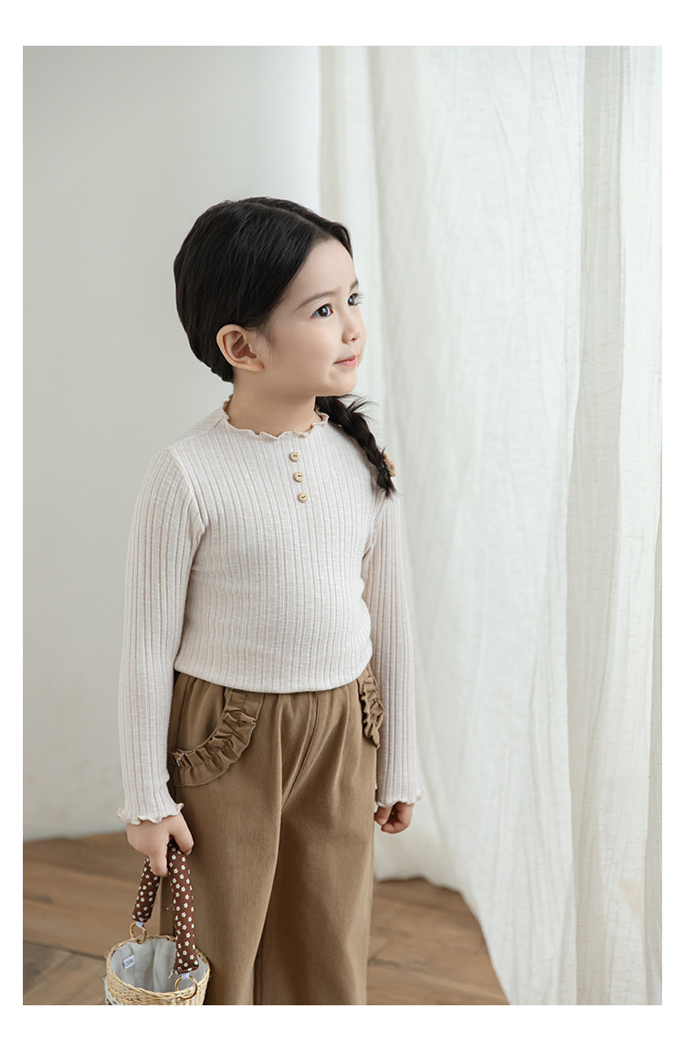 Wurib 소녀의 피트 스트립 질감 부드러운 왁스 같은 부드러운베이스 셔츠 가을 대비 색상 나무 버튼 캐주얼 티셔츠 조수스토어 가기