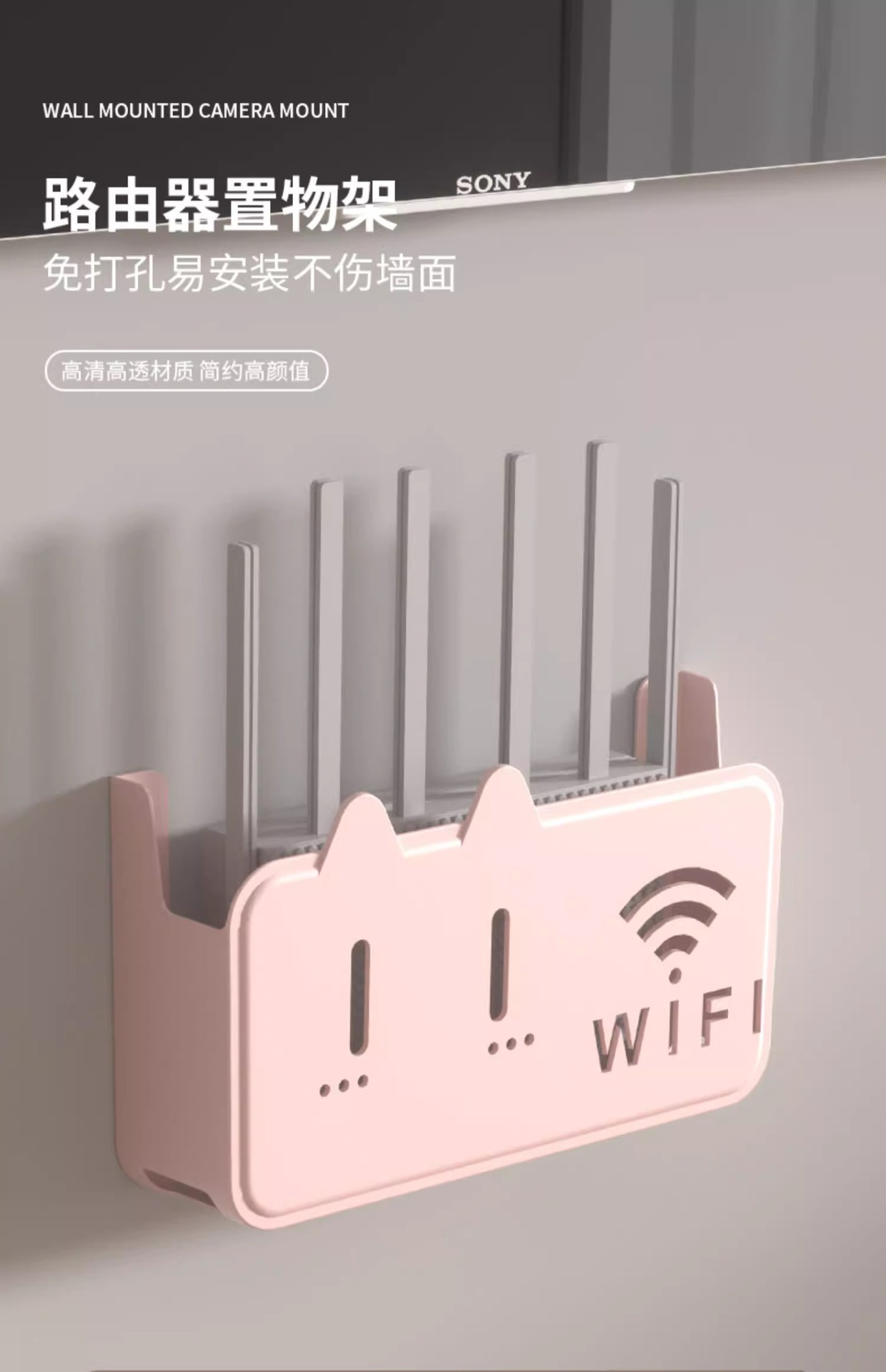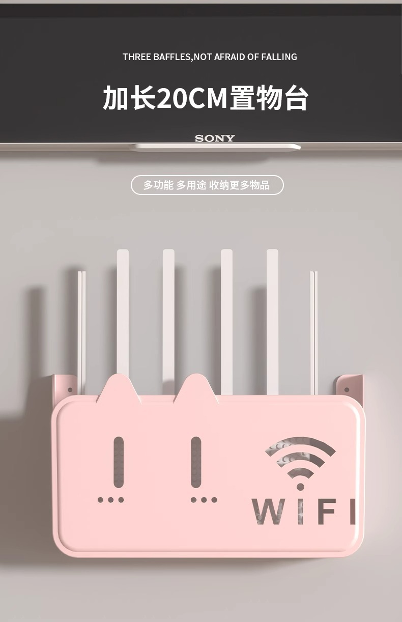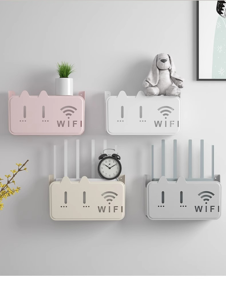 라우터 스토리지 박스 펀치없는 벽걸이 고정 와이파이 광학 고양이 TV 셋톱 박스 스토리지 랙
