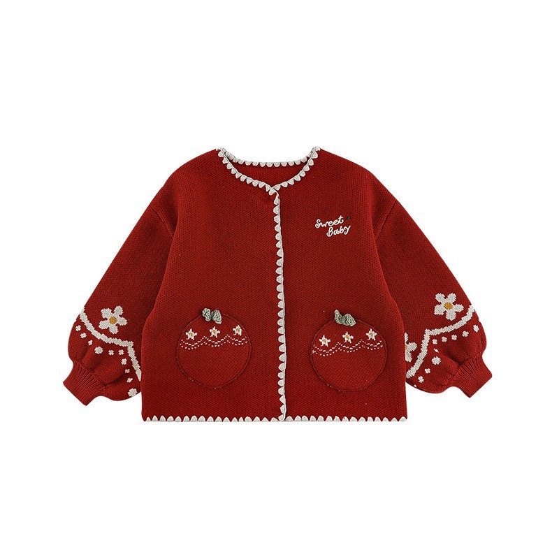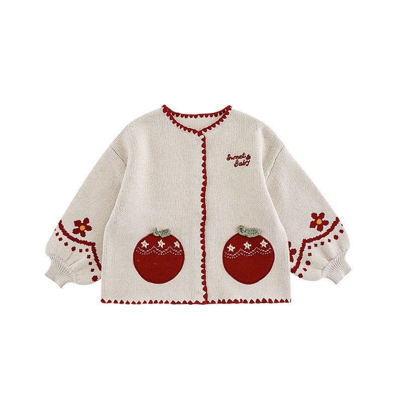 Wuri Bub Girl의 명암 컬러 쉘 자수 스웨터 가을 어린이 귀여운 참깨 점 자카드 스웨터 재킷스토어 가기