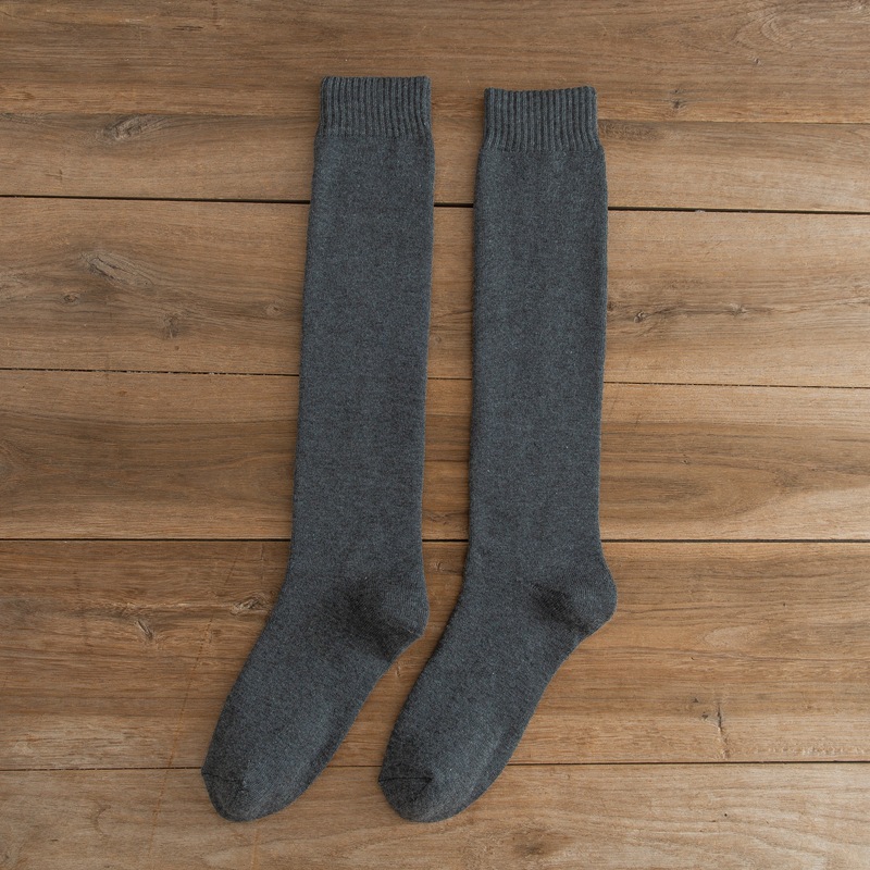 테리 송아지 양말 단색 남성 양말 가을과 겨울 기모 높은 면 양말