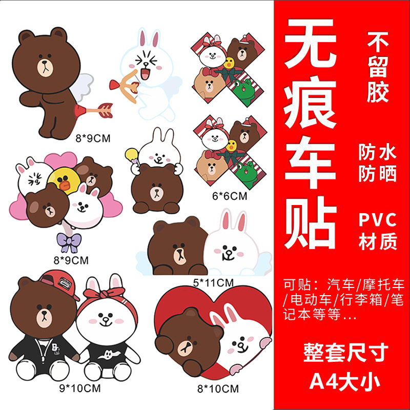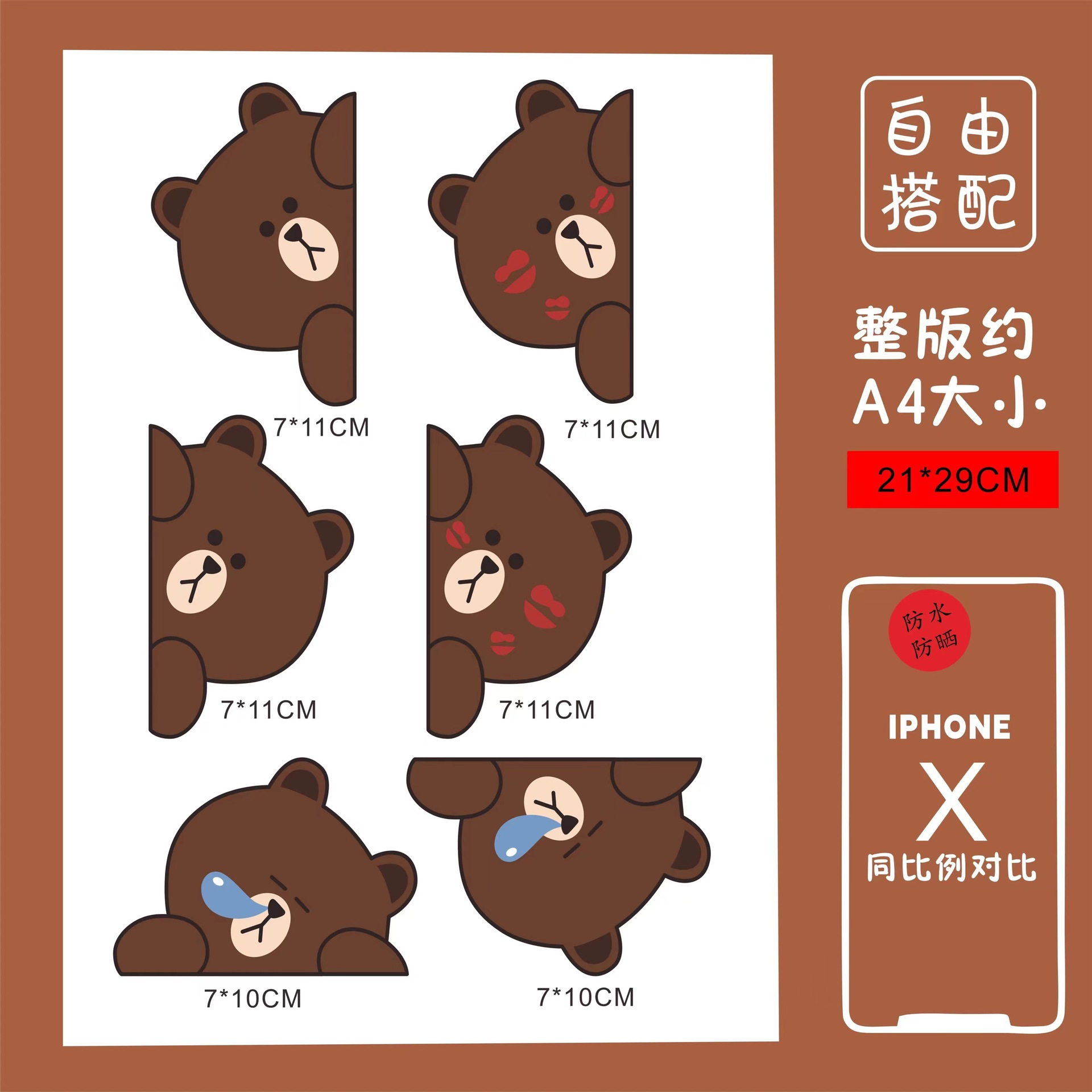 전기차, 자동차, 노트북 스티커, 귀여운 만화 브라운 베어 장식, 흠집 커버 스티커, 방수 및 자외선 차단