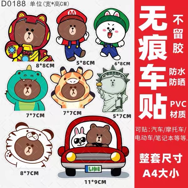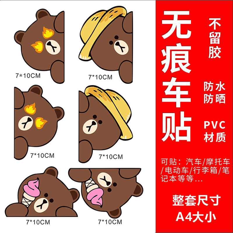 전기차, 자동차, 노트북 스티커, 귀여운 만화 브라운 베어 장식, 흠집 커버 스티커, 방수 및 자외선 차단스토어 가기