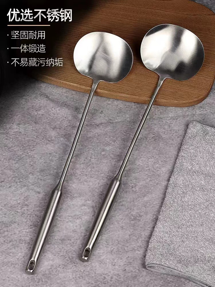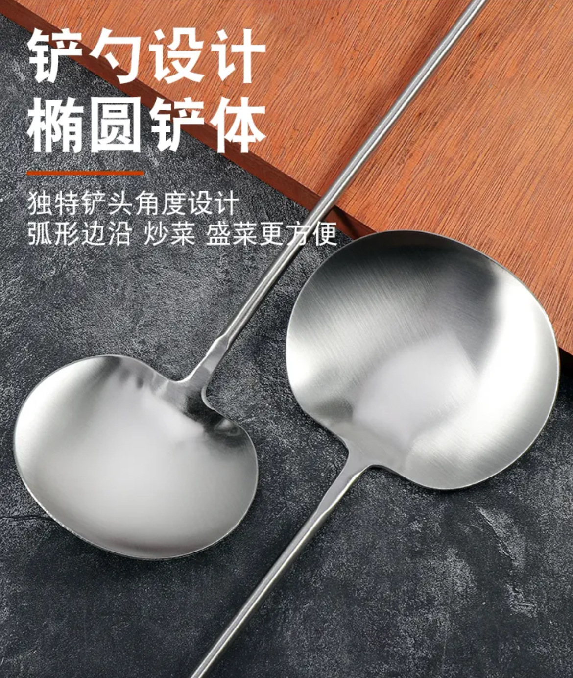 두꺼운 스테인레스 스틸 볶음 철 삽 팬 삽 수프 숟가락 소란 더 가정용 주방용품 세트 요리사 볶음 숟가락 가구