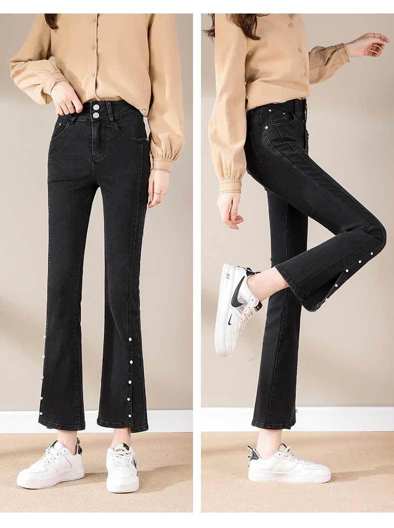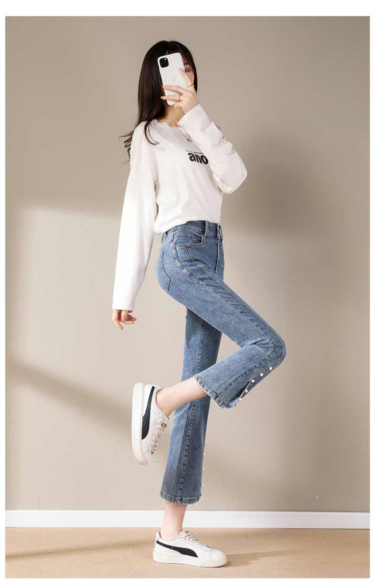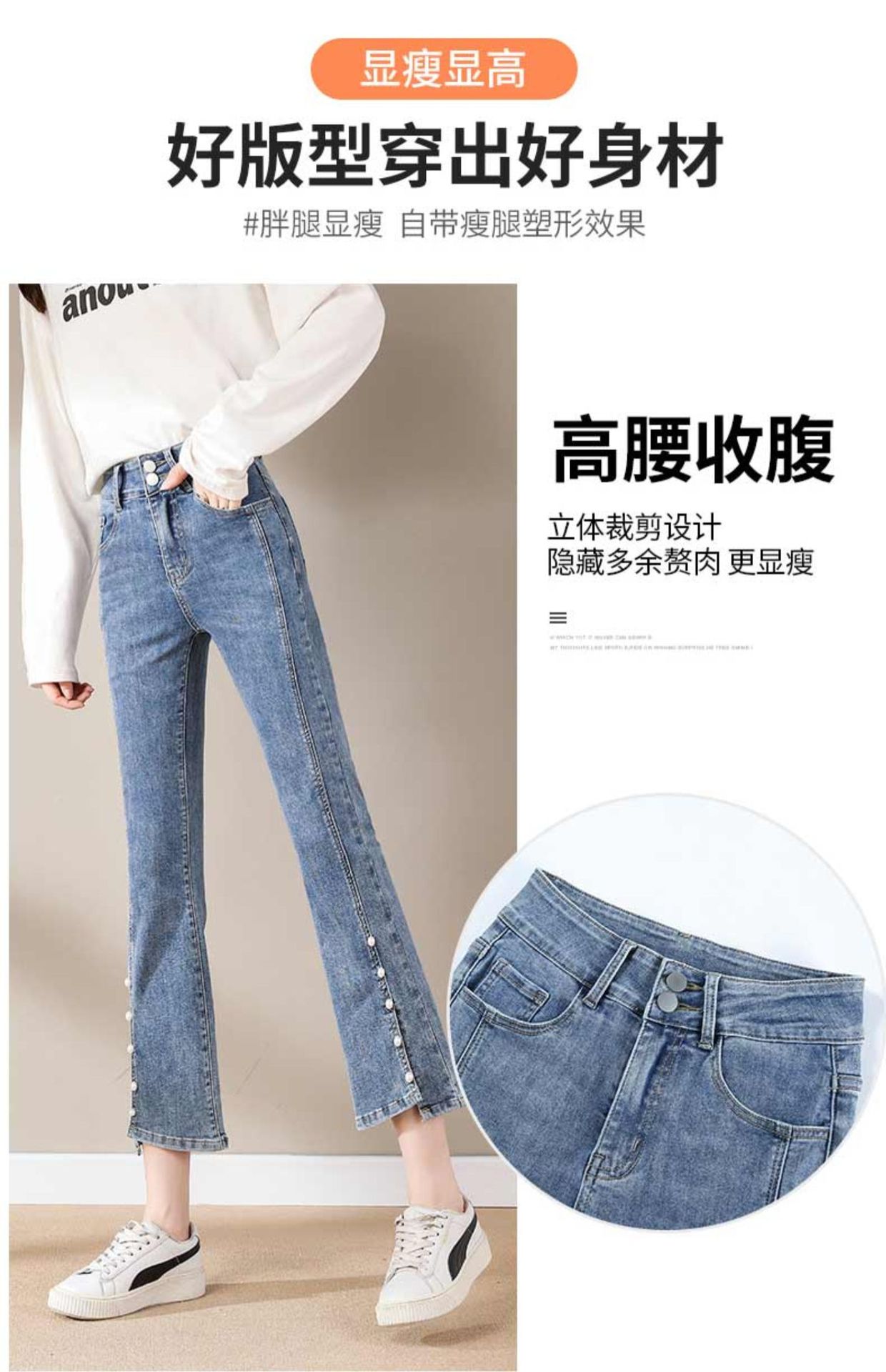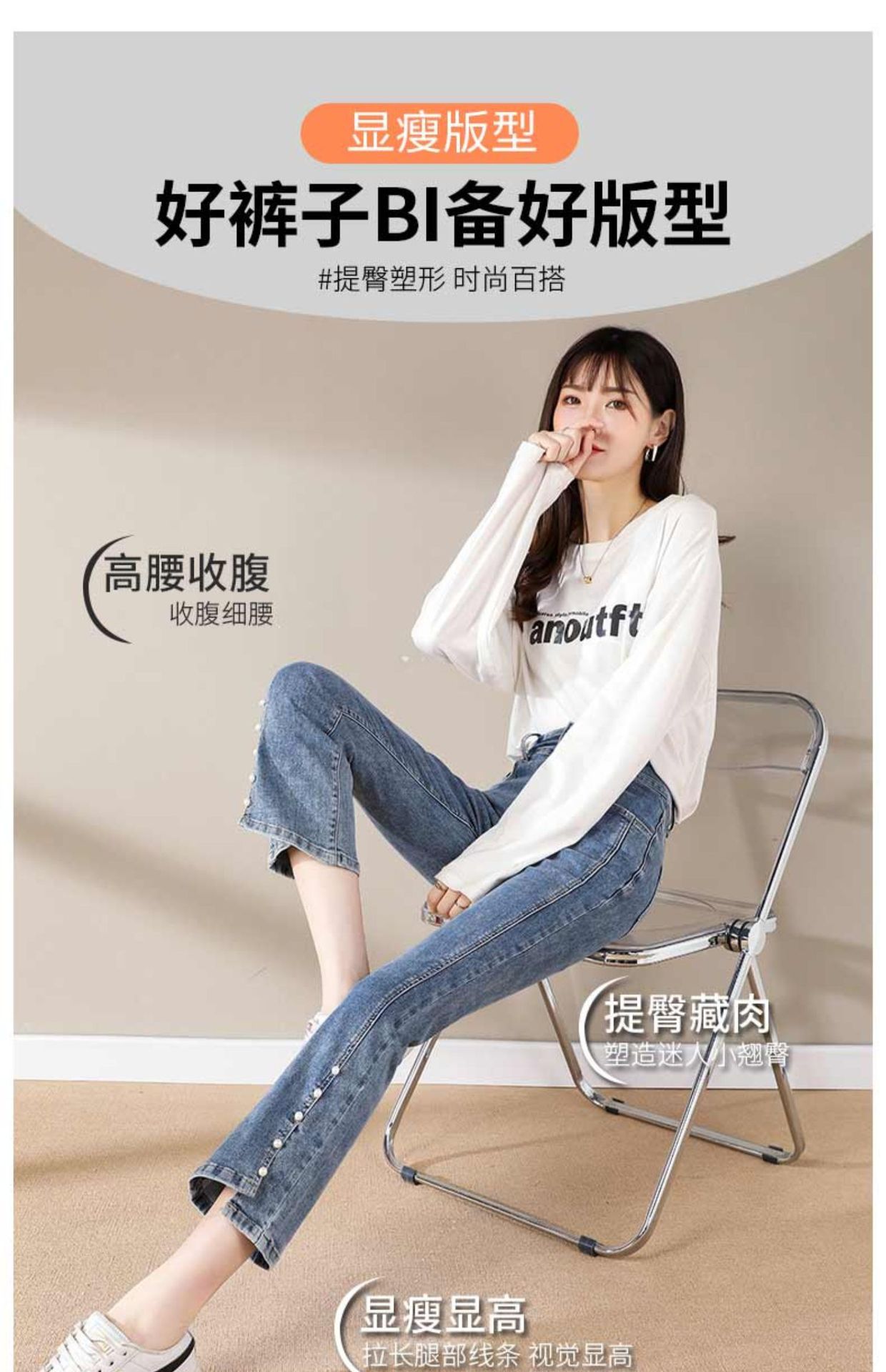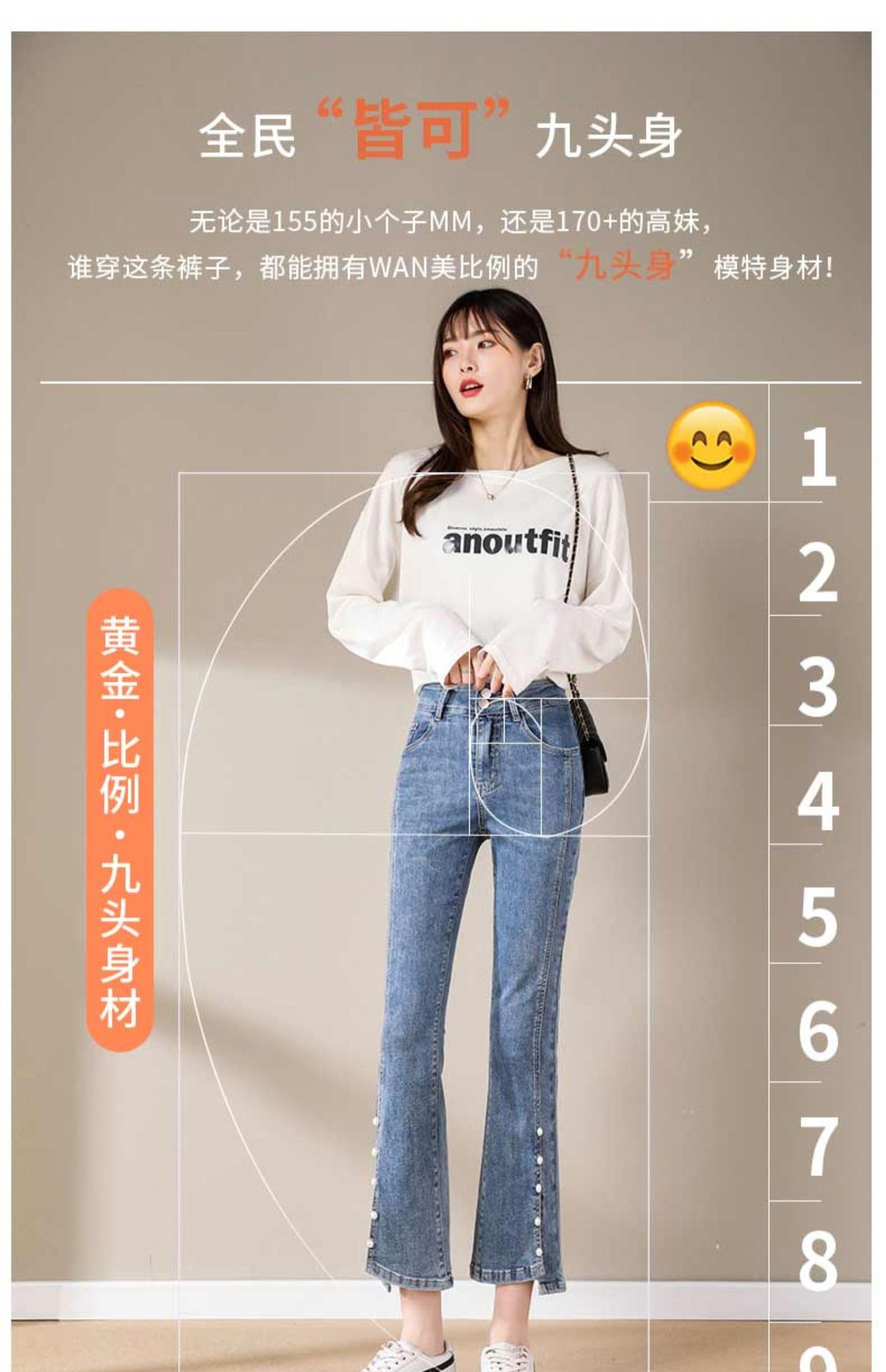 마이크로 라 청바지 여성의 높은 허리 슬림 분할 가을 2024 새로운 8 점 작은 9 점 트럼펫 바지스토어 가기
