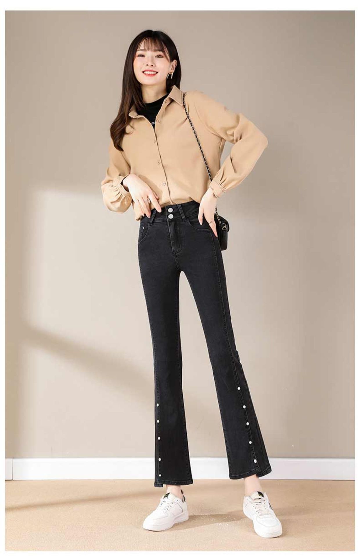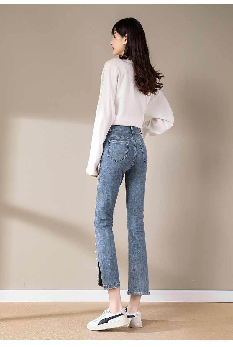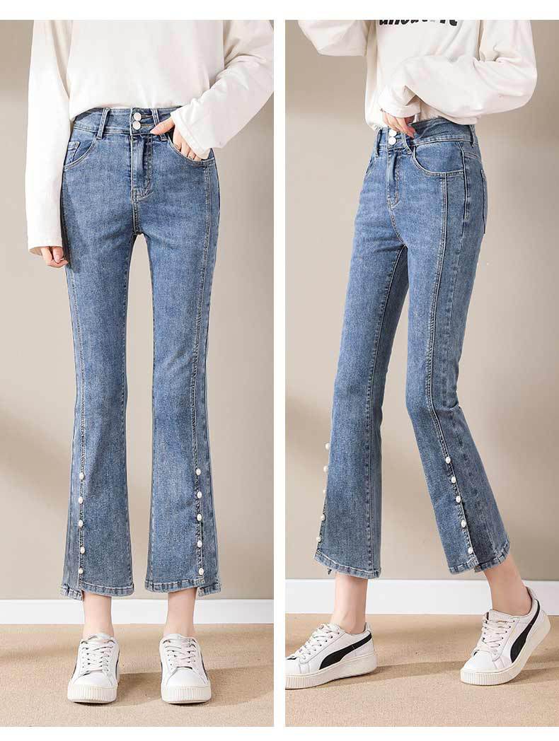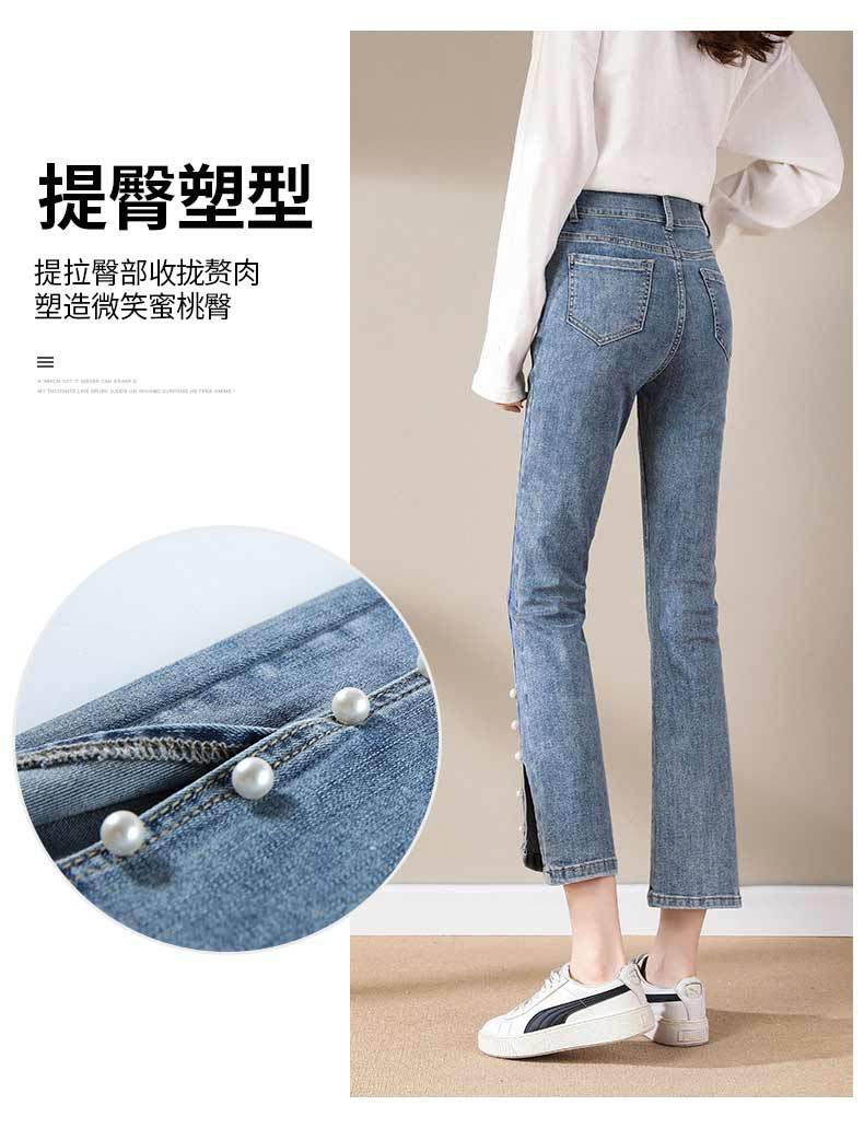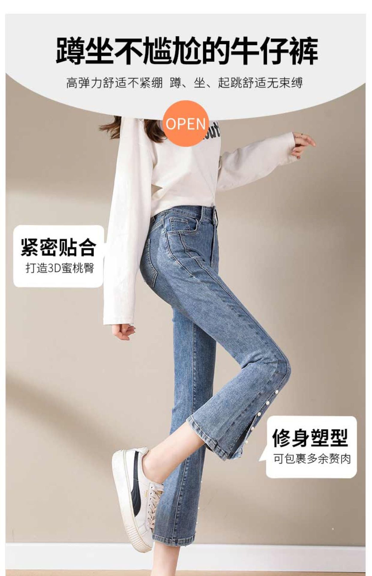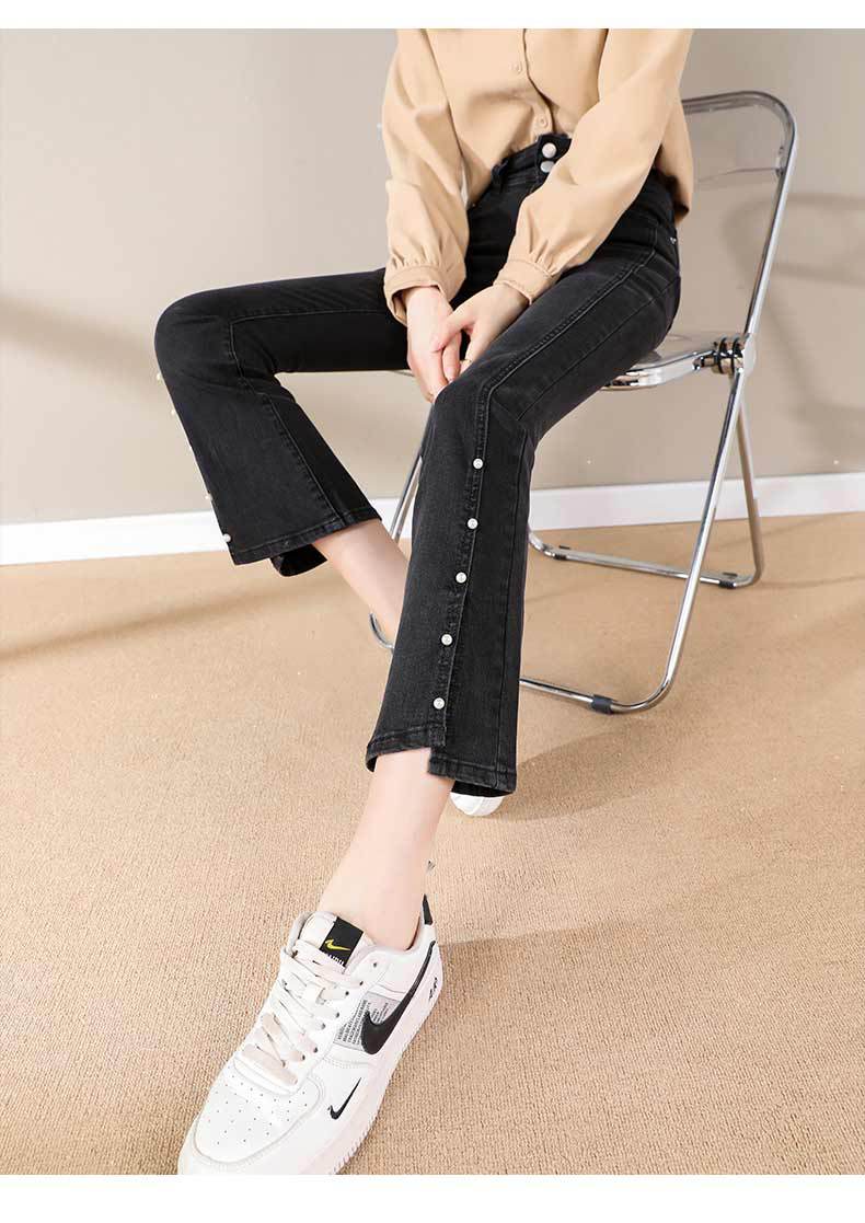 마이크로 라 청바지 여성의 높은 허리 슬림 분할 가을 2024 새로운 8 점 작은 9 점 트럼펫 바지스토어 가기