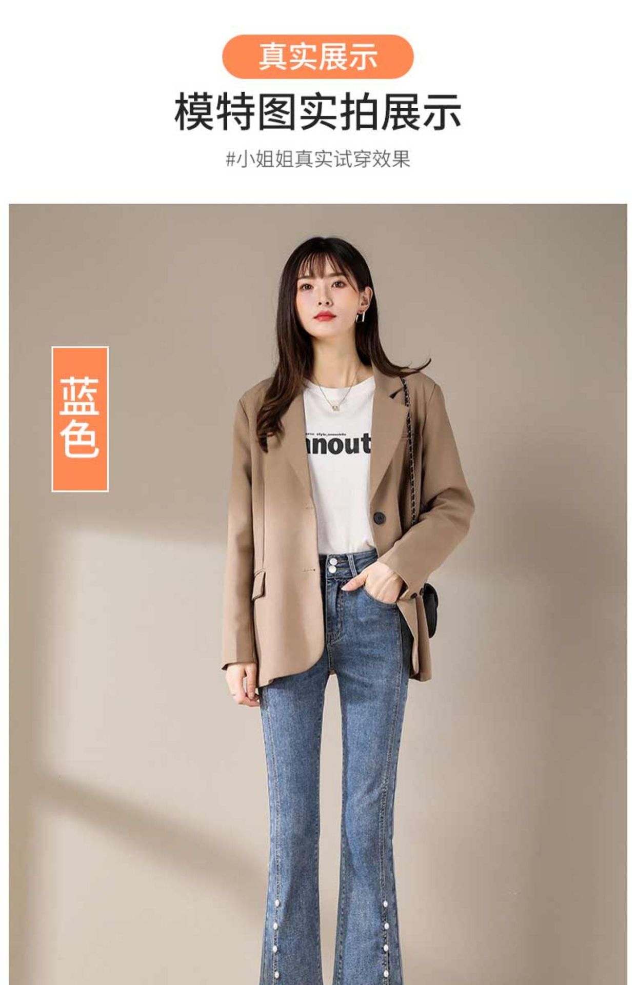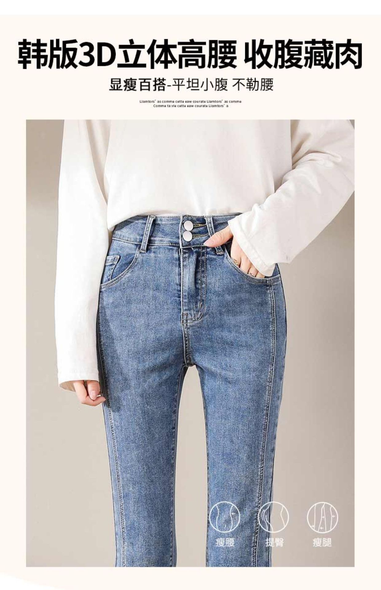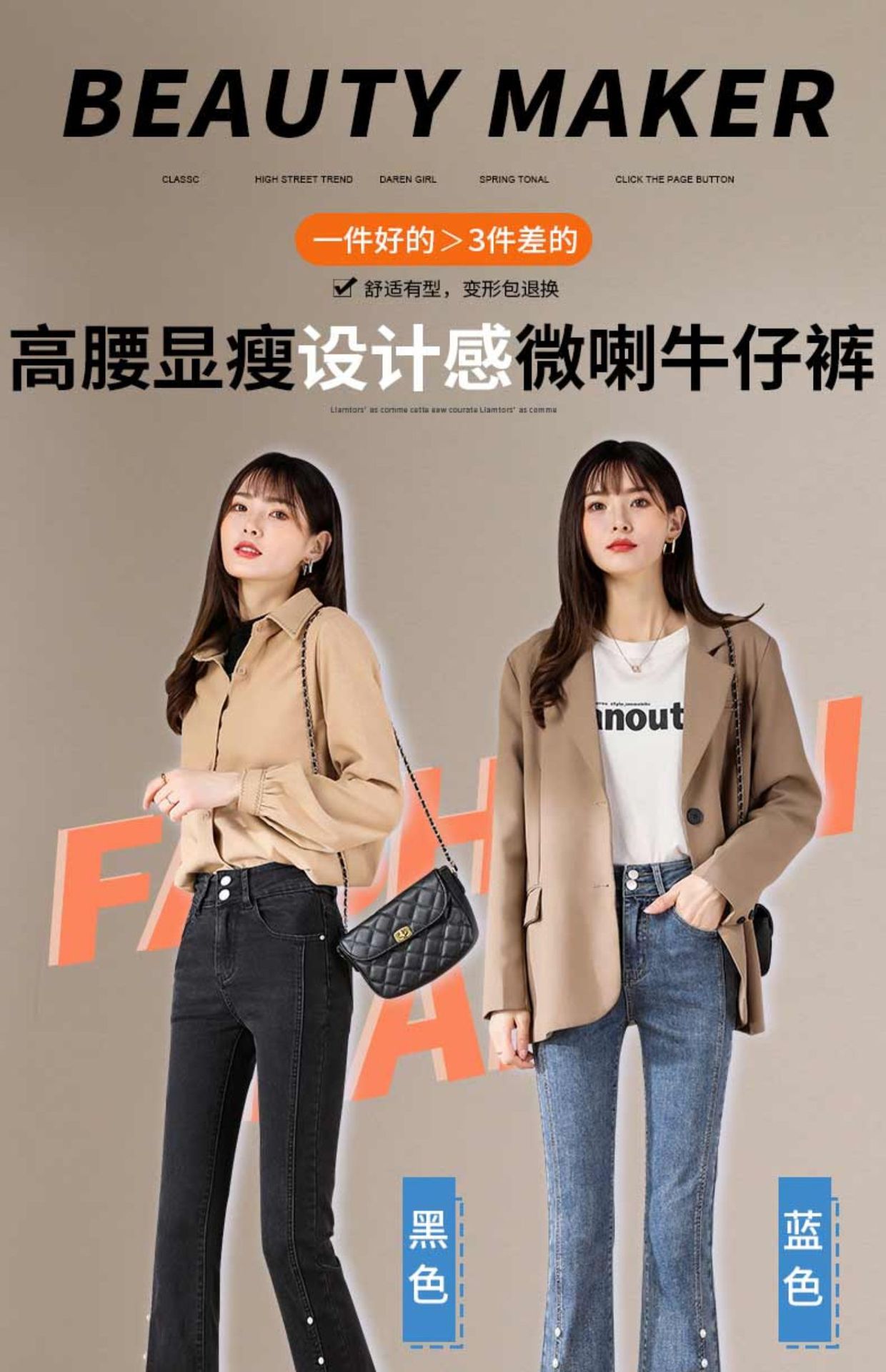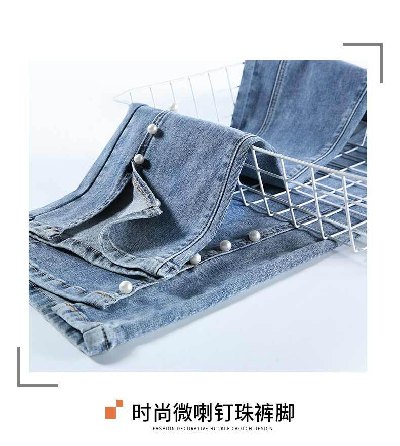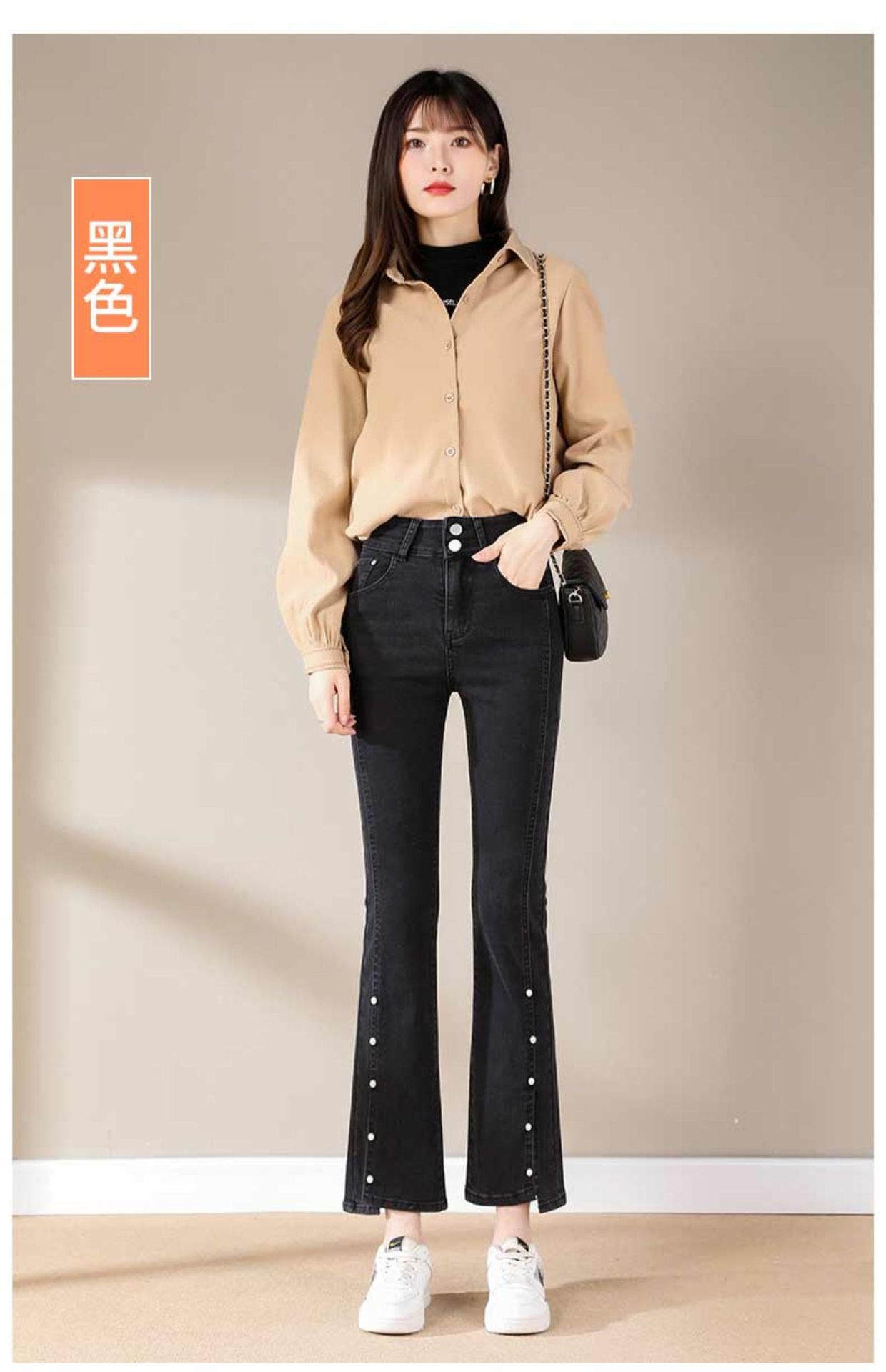 마이크로 라 청바지 여성의 높은 허리 슬림 분할 가을 2024 새로운 8 점 작은 9 점 트럼펫 바지스토어 가기