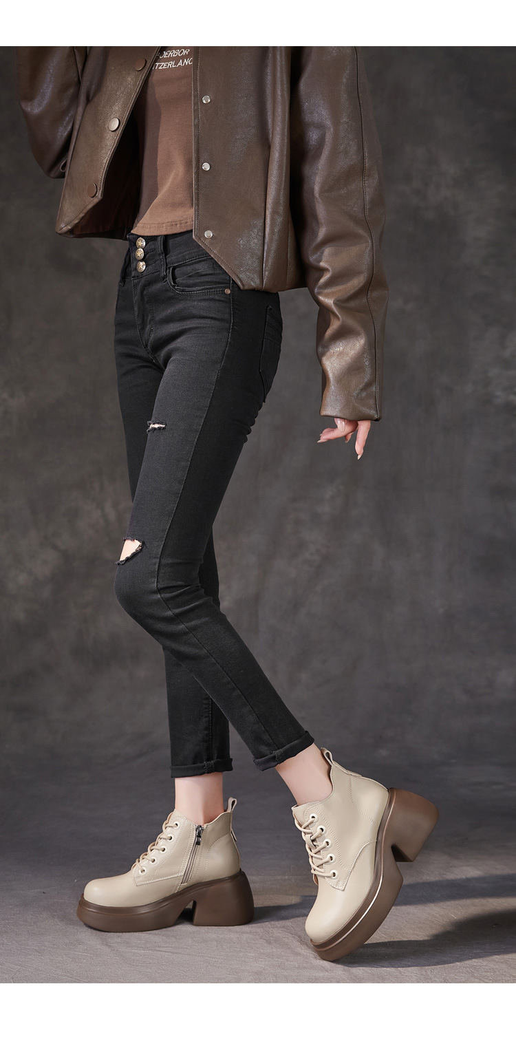 2024 년 가을과 겨울 새로운 굵은 뒤꿈치 영국 스타일 마틴 부츠 여성용 둥근 발가락 작은 높이 높이 짧은 부츠 면화 여성용 부츠