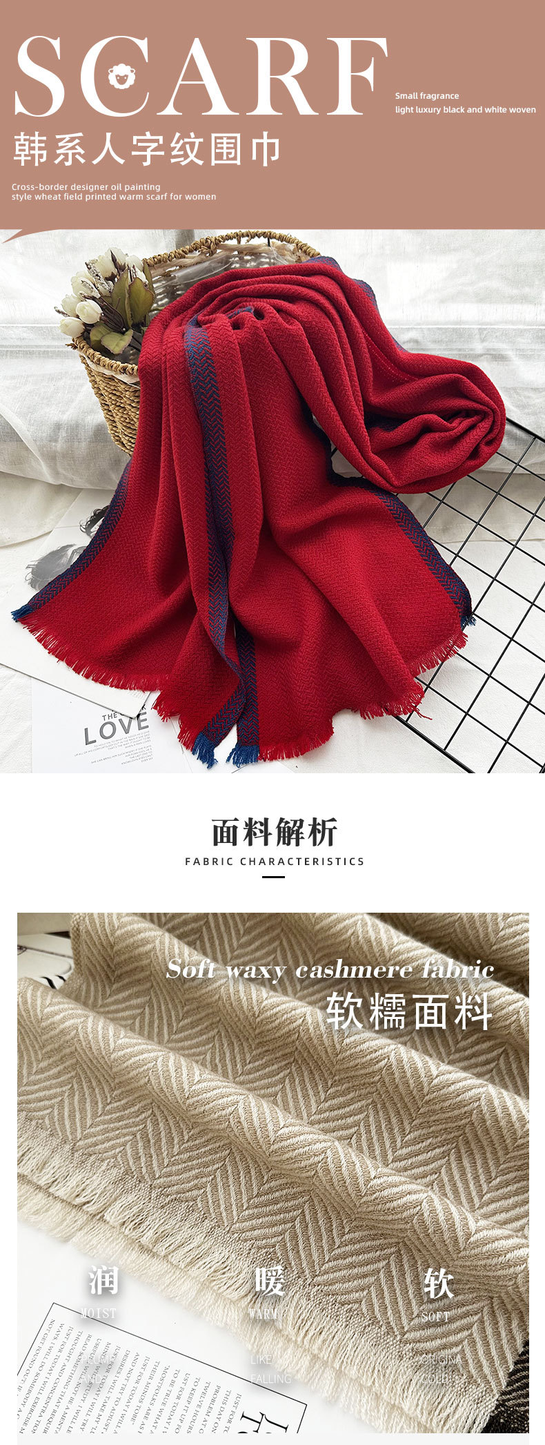 국경 100% 양 울 스카프 여자 겨울 하이 엔드 올 매치 헤링본 패턴 남자 목 섬세한 부드러운 목도리스토어 가기