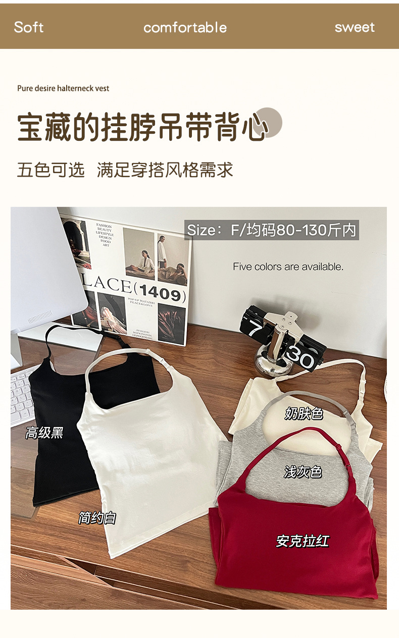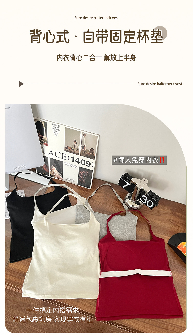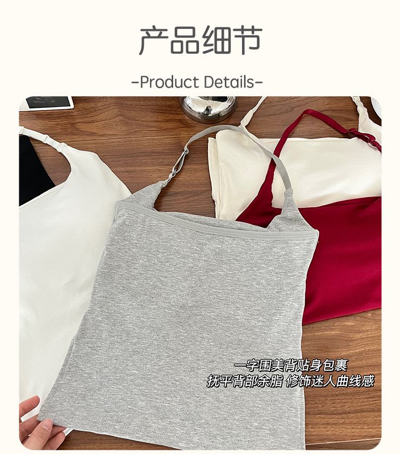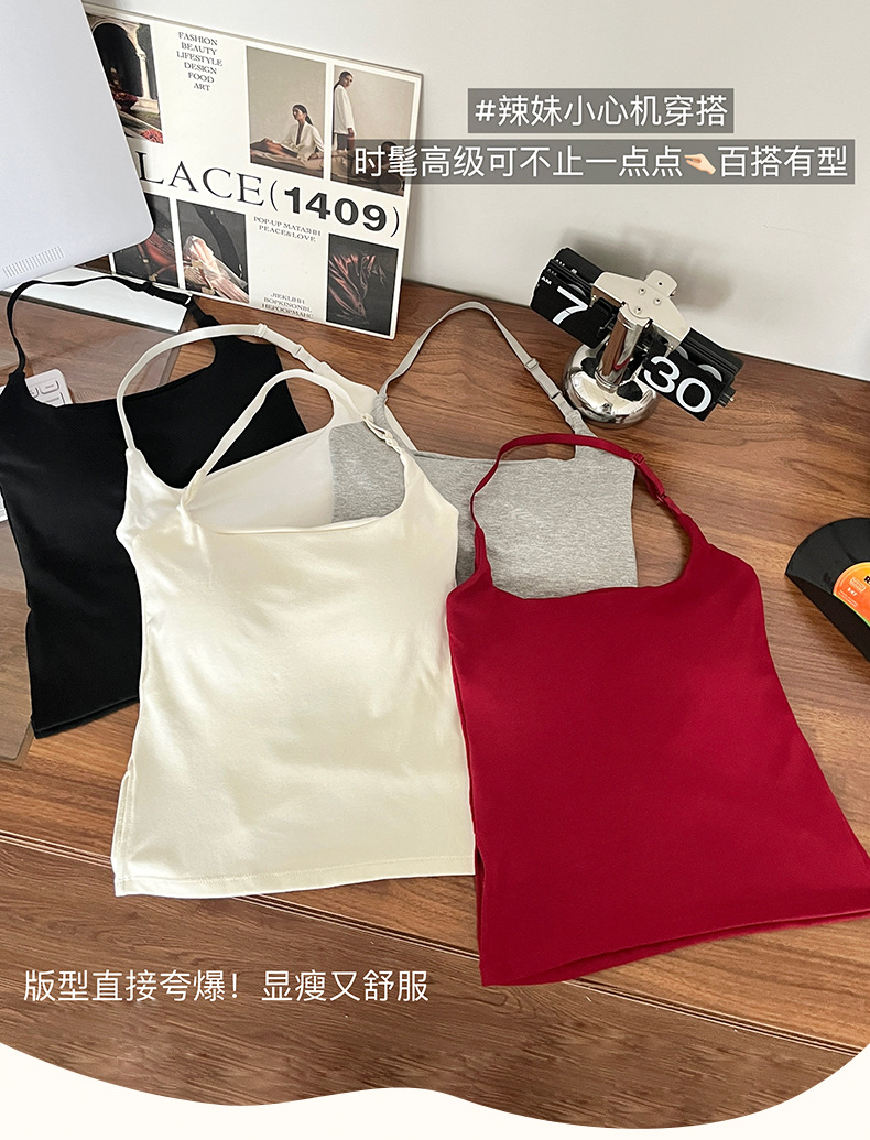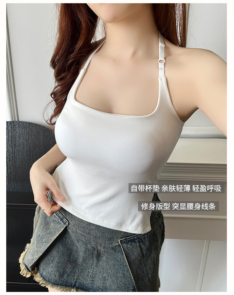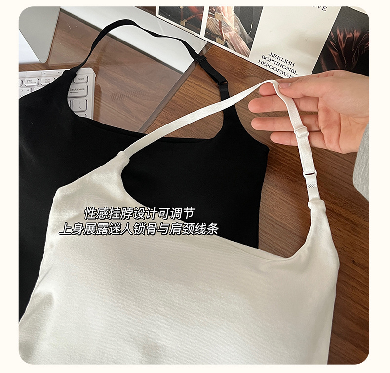 뜨거운 소녀 패션 섹시 교수형 목 백리스 슬림 내부 스트랩 가슴 패드 디자인 센스 틈새 분할 조끼 외부 착용