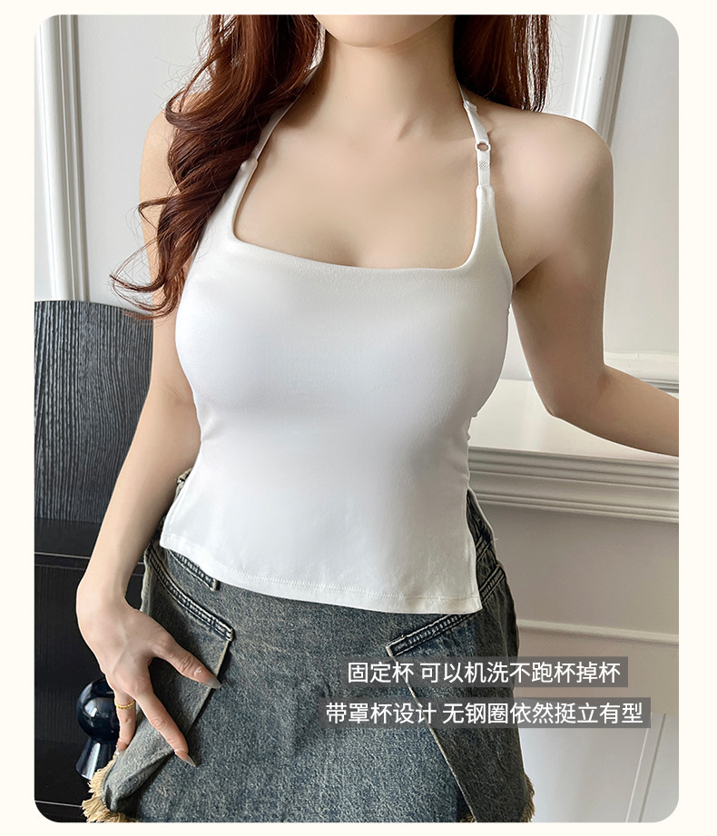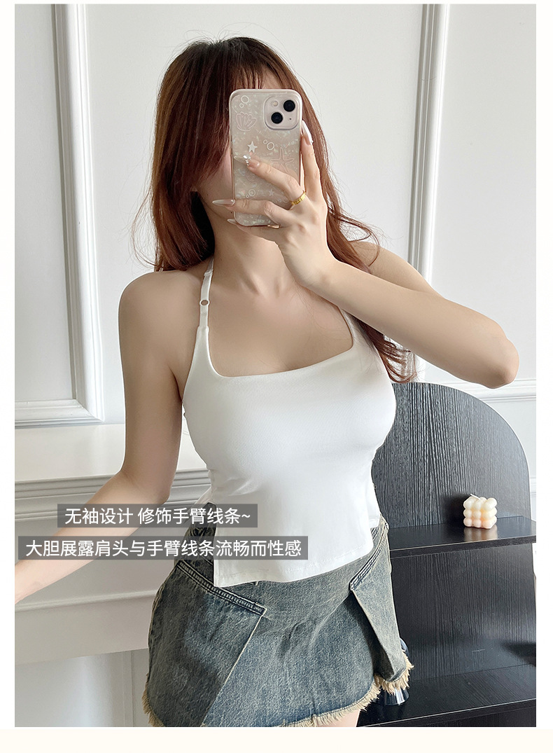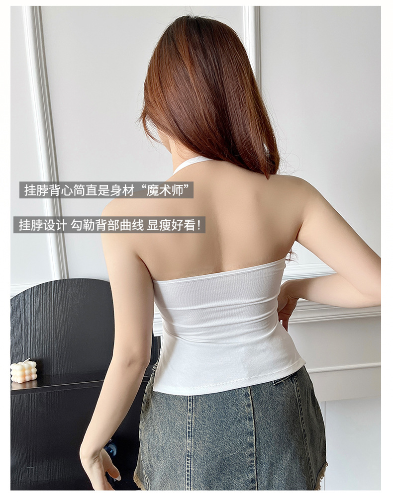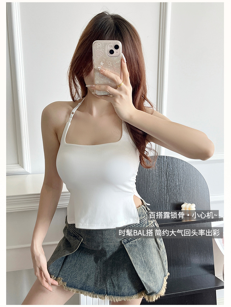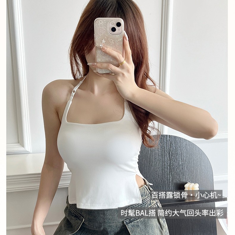 뜨거운 소녀 패션 섹시 교수형 목 백리스 슬림 내부 스트랩 가슴 패드 디자인 센스 틈새 분할 조끼 외부 착용스토어 가기