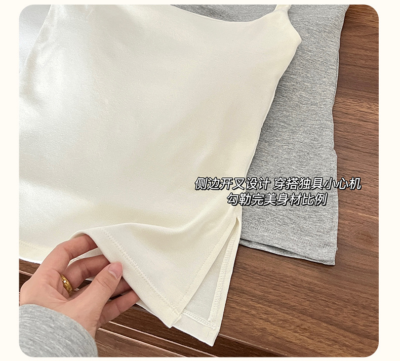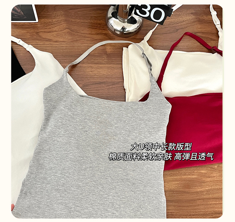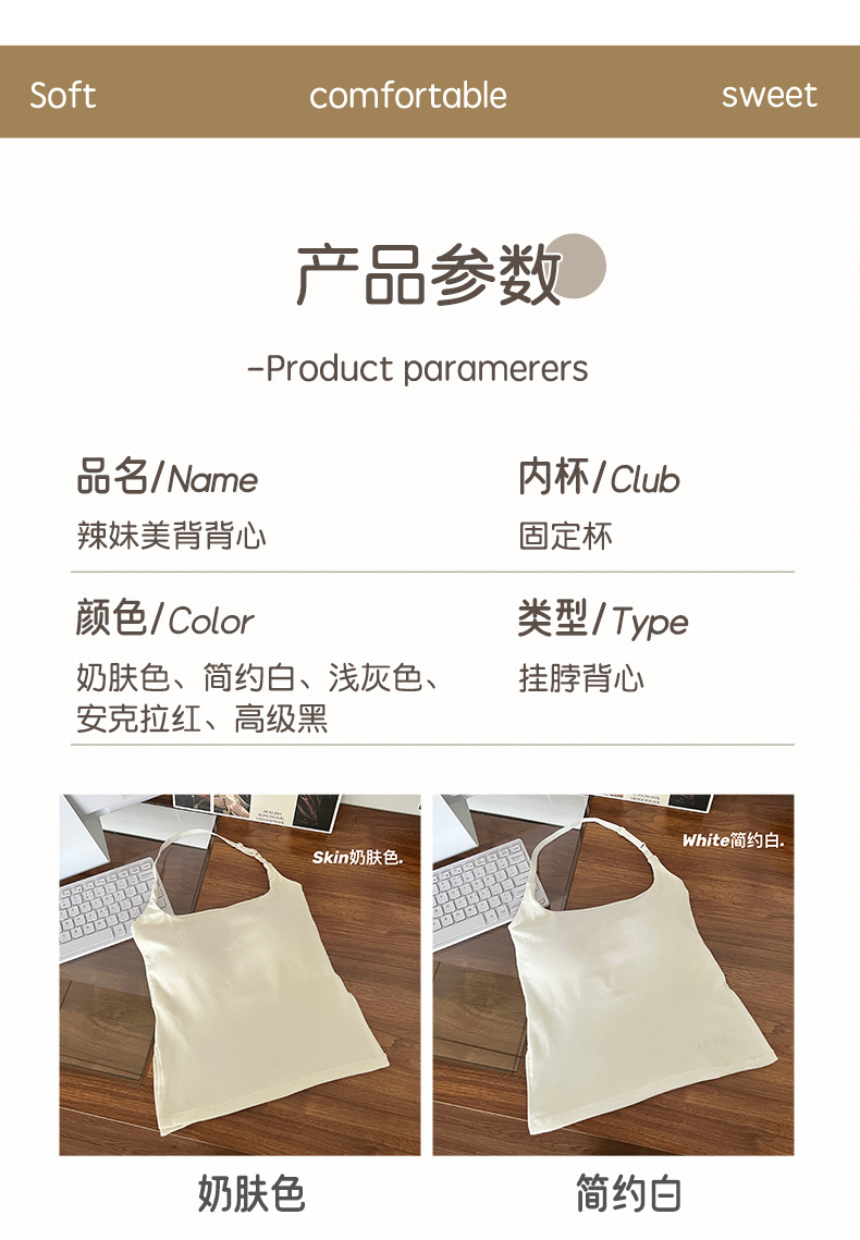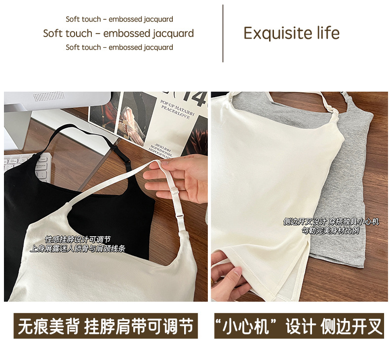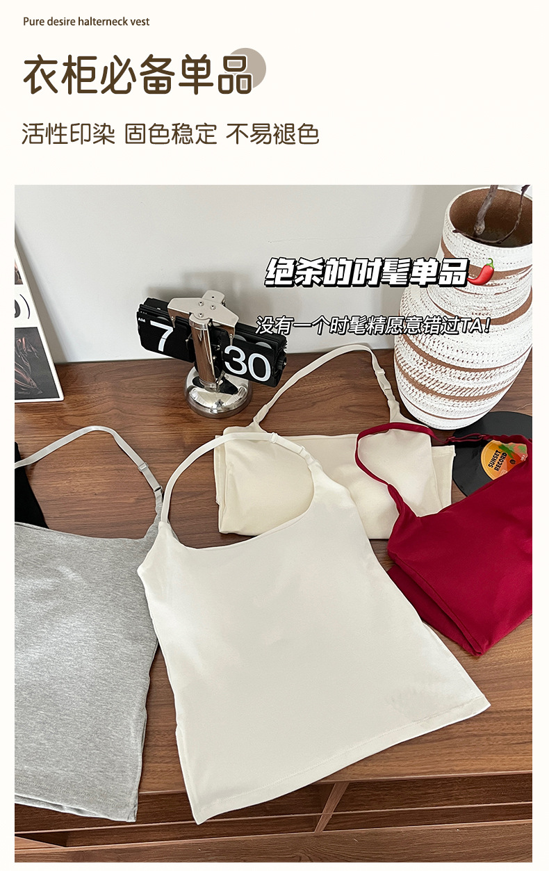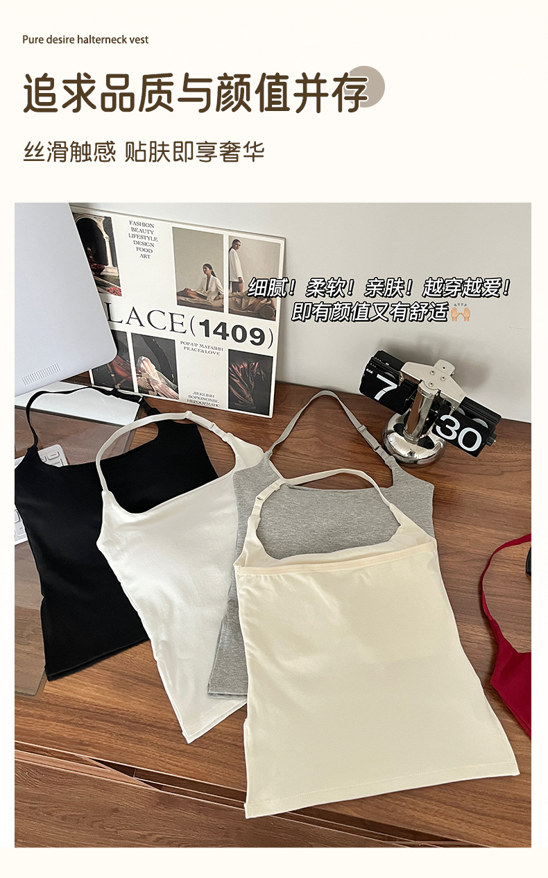 뜨거운 소녀 패션 섹시 교수형 목 백리스 슬림 내부 스트랩 가슴 패드 디자인 센스 틈새 분할 조끼 외부 착용스토어 가기