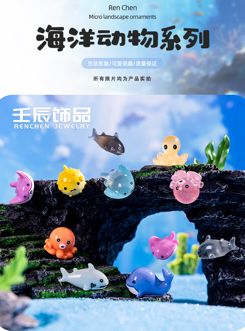 해양 동물 물고기 탱크 조경 창조적 인 마이크로 조경 장식 빛나는 작은 장식품 수지 공예 DIY 액세서리스토어 가기