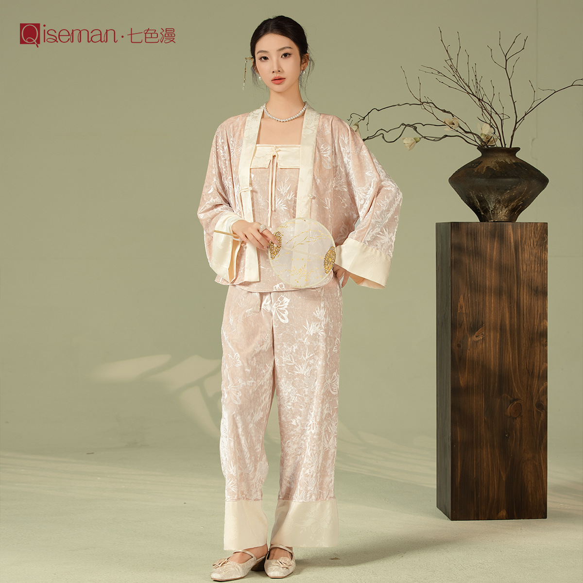 골드 다이아몬드 양털 양각 새로운 중국 스타일 국가 스타일 파자마 3 피스 세트 가슴 패드 섹시한 여성 홈 옷 가을과 겨울 하이 엔드 감각스토어 가기