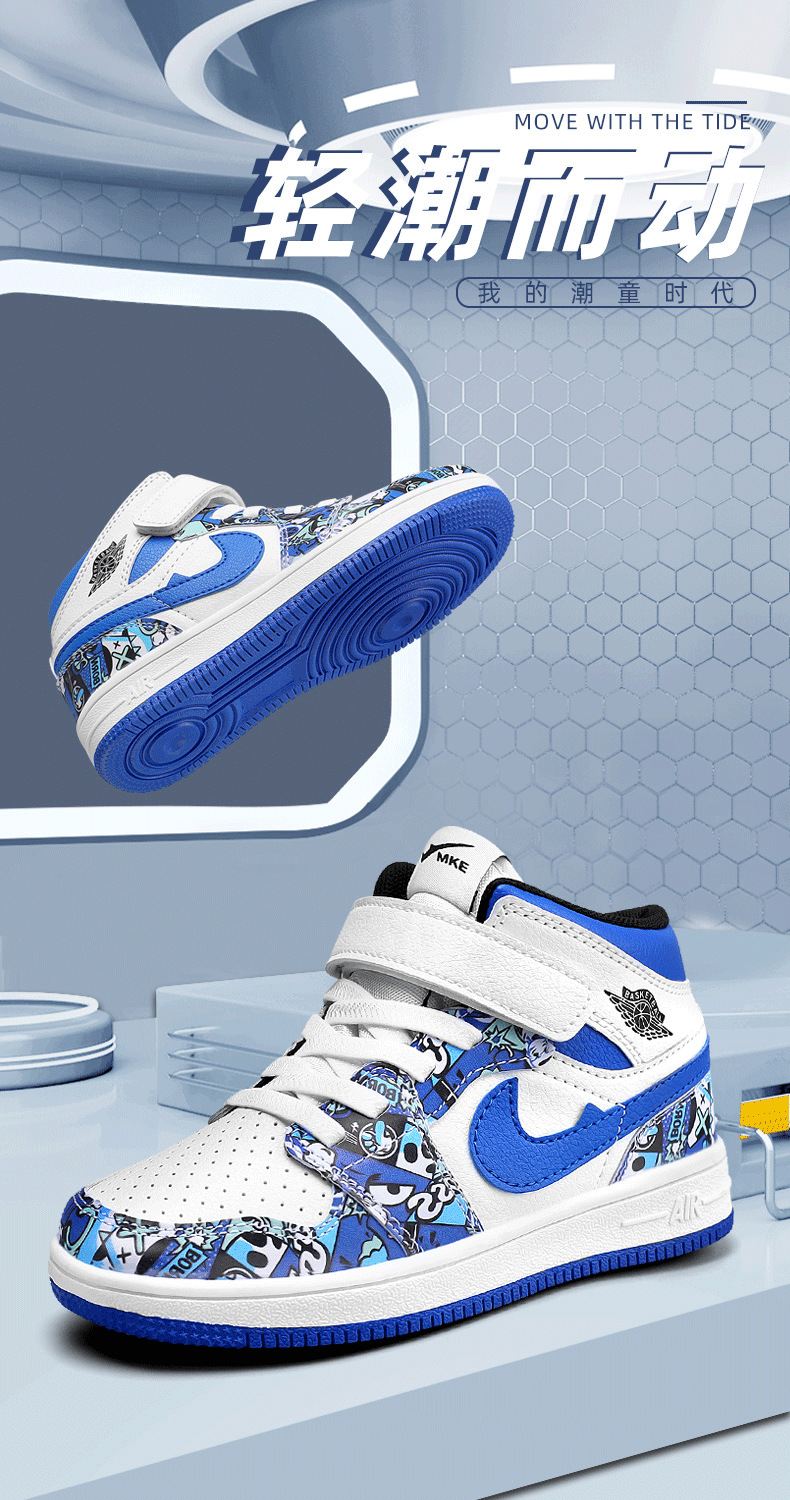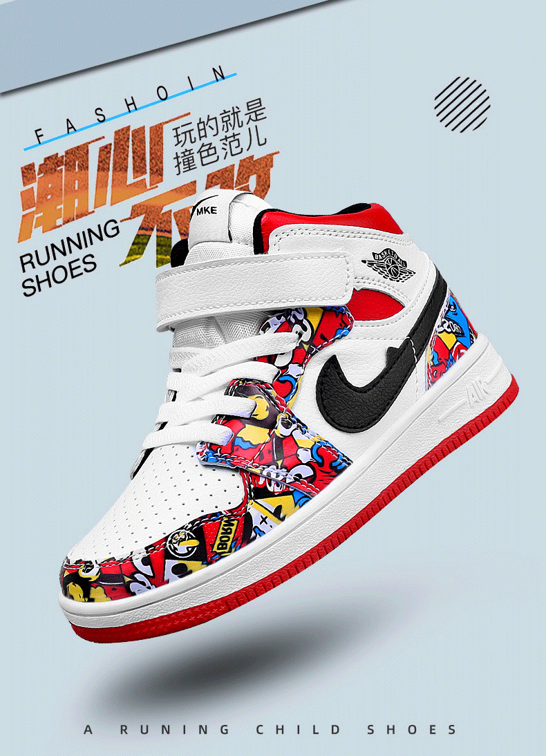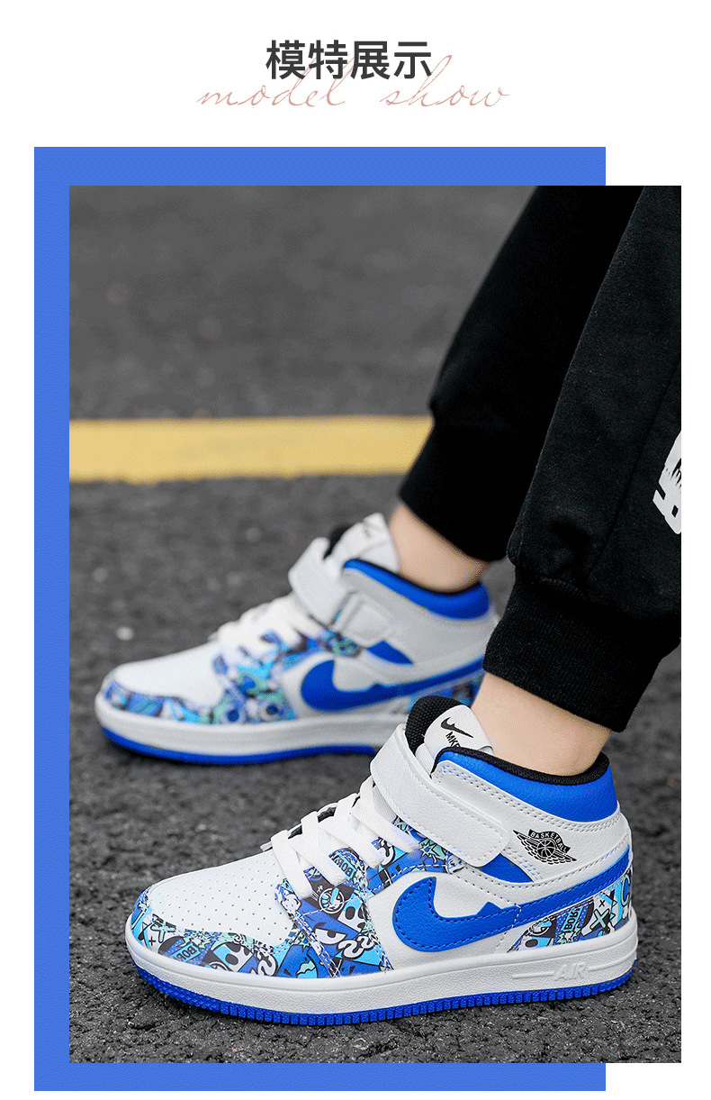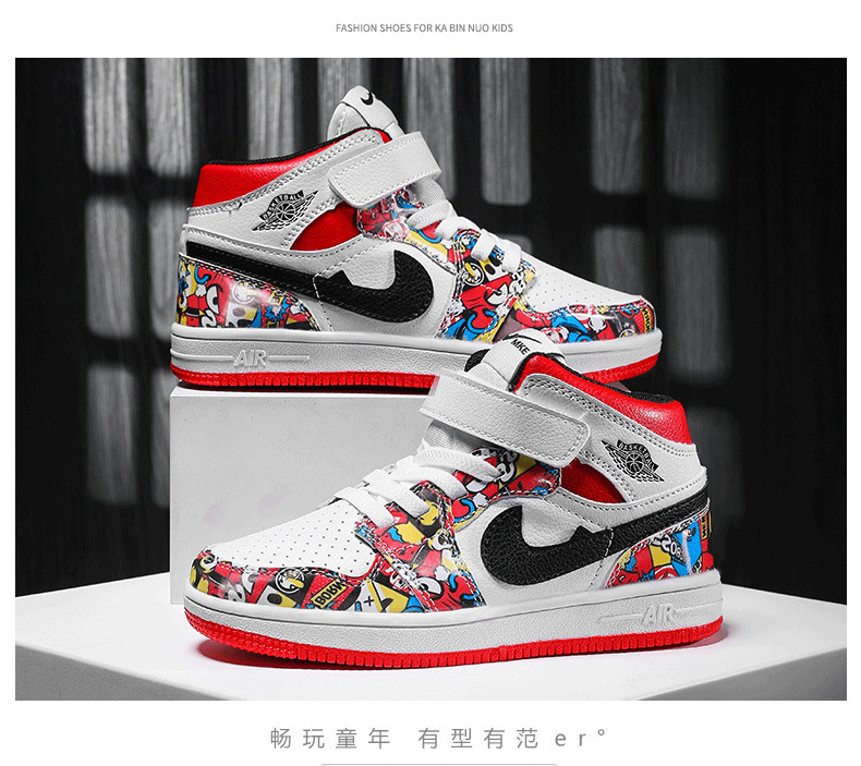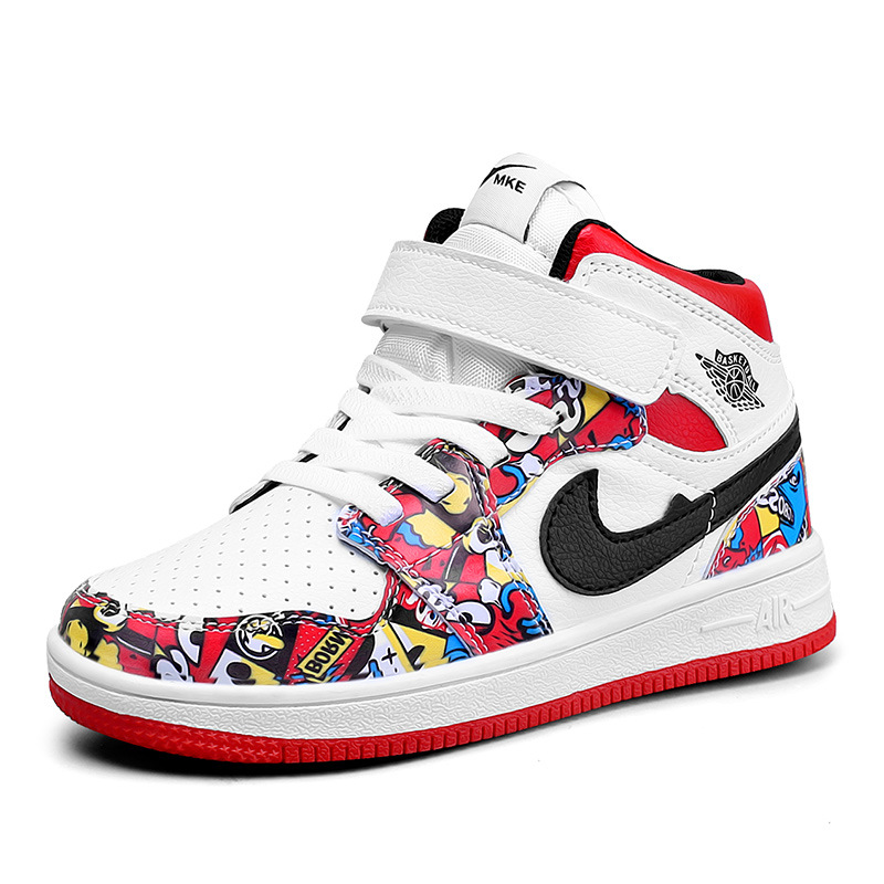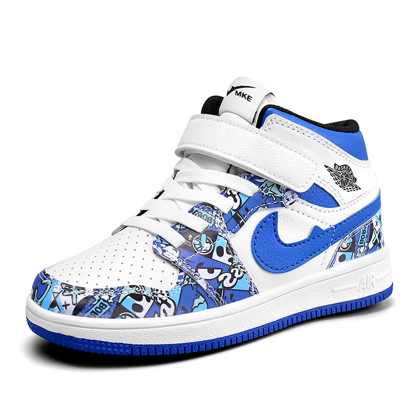 소년 스포츠 보드 신발 2024 가을 겨울 소년 운동화 하이 탑 보드 신발 다채로운 소년 농구 공 AJ1