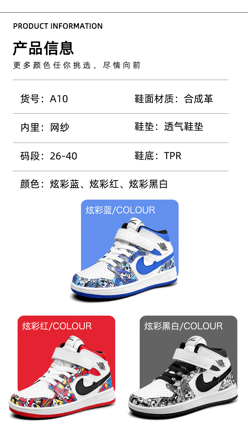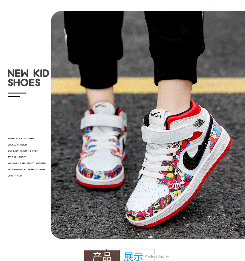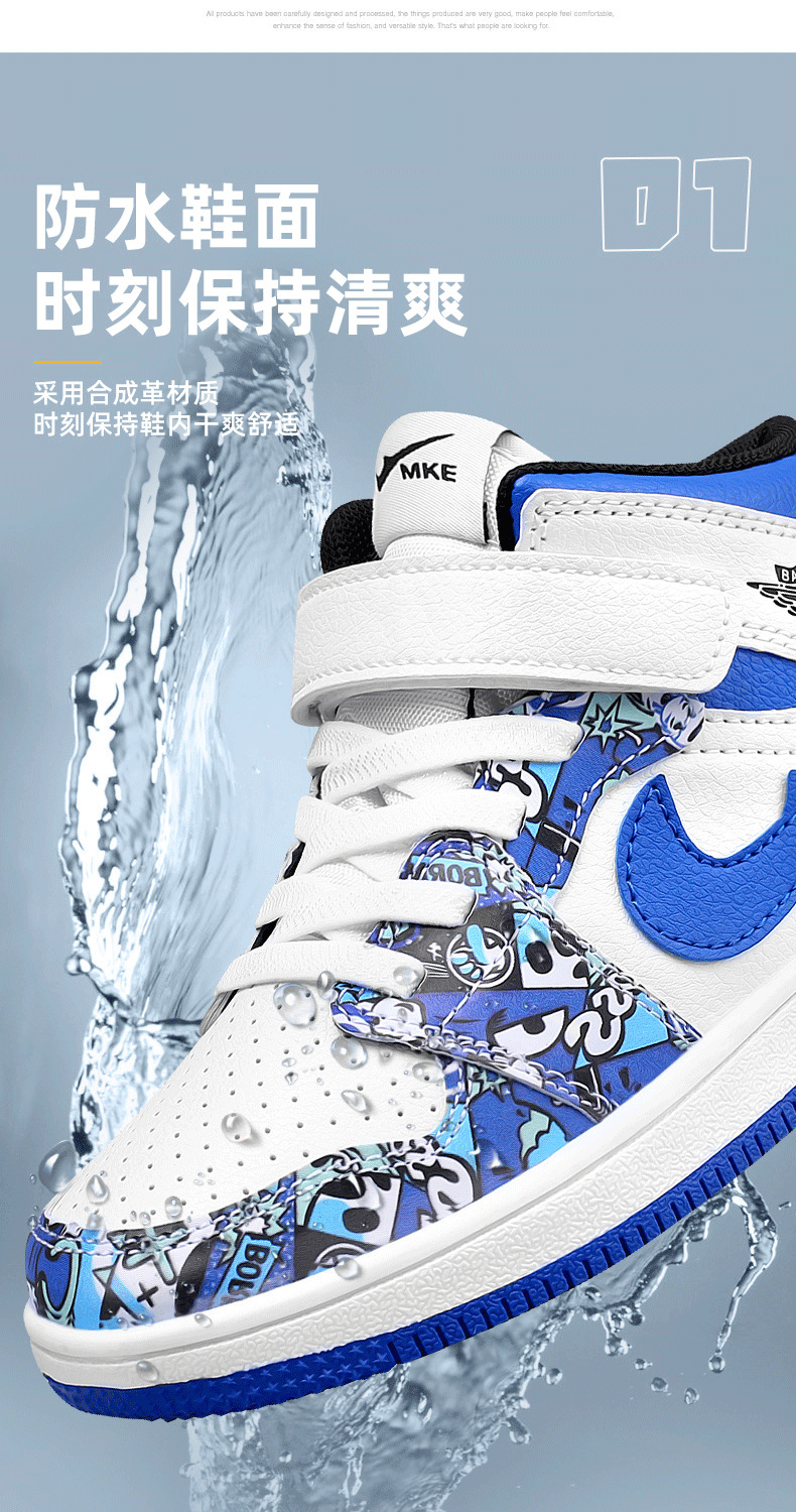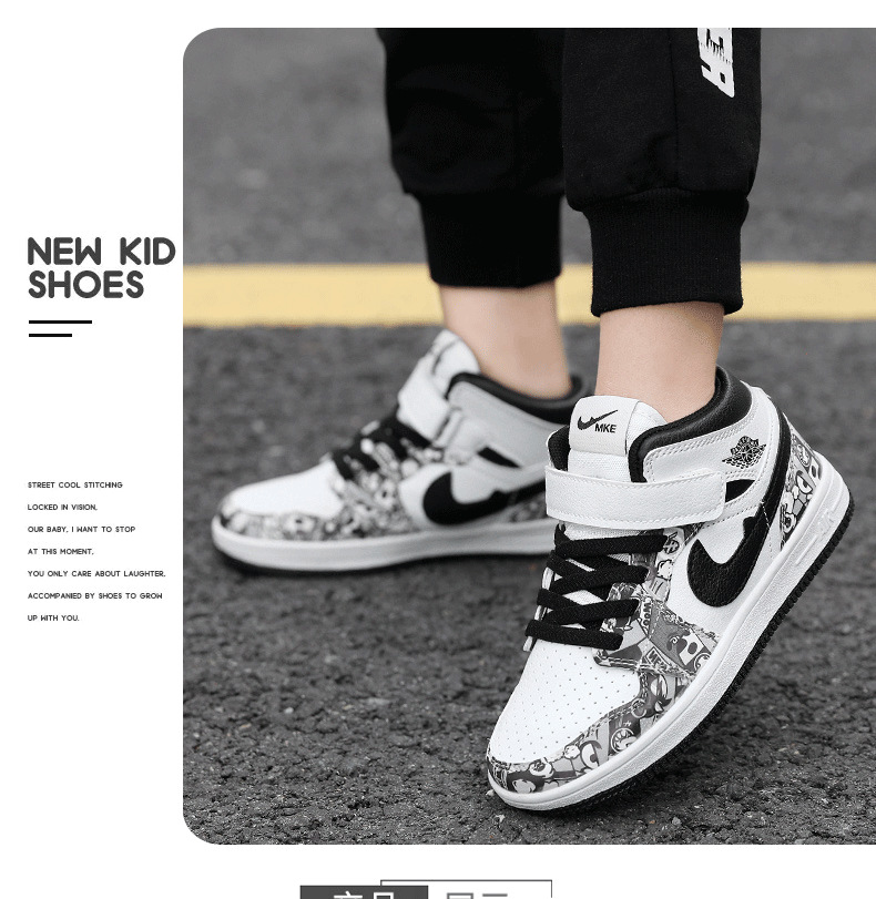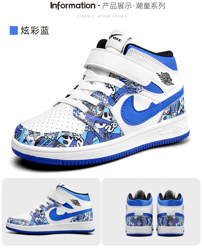 소년 스포츠 보드 신발 2024 가을 겨울 소년 운동화 하이 탑 보드 신발 다채로운 소년 농구 공 AJ1
