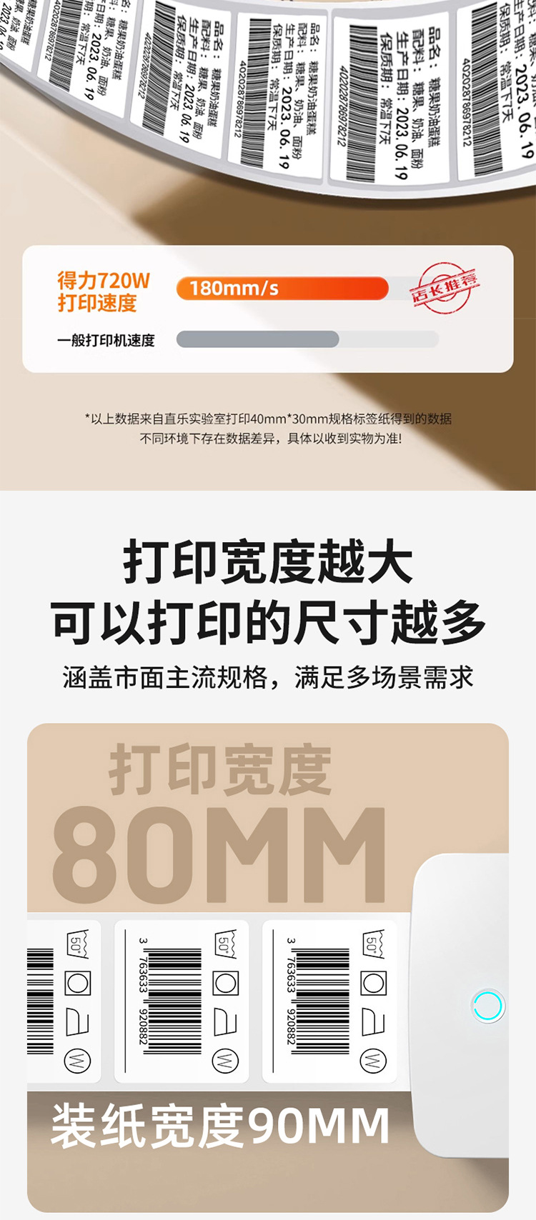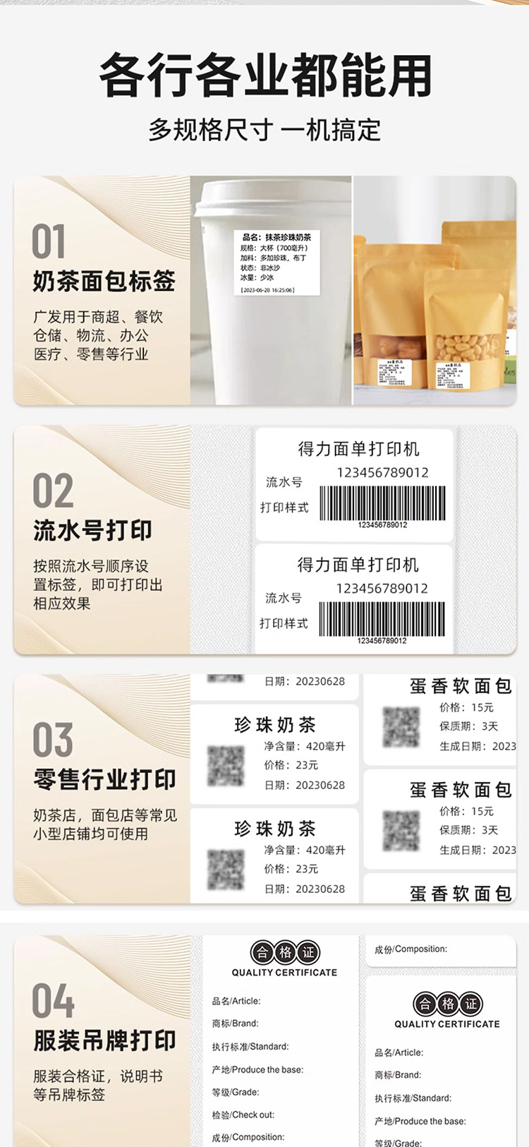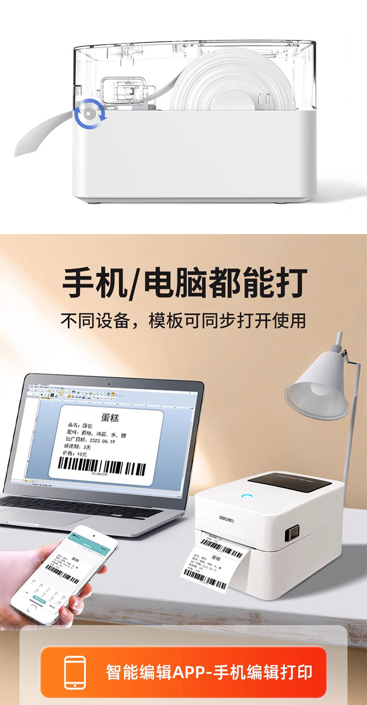 델리 라벨 프린터 자체 접착 열 종이 특급 전자 단일 라벨 종이 상업 다기능 마킹 기계스토어 가기