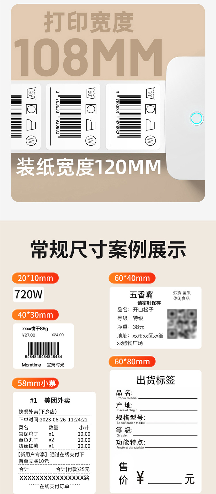• ✅블루투스 버전|폭 108mm [라벨/1장 또는 2장] - 컴퓨터/휴대폰 인쇄 지원