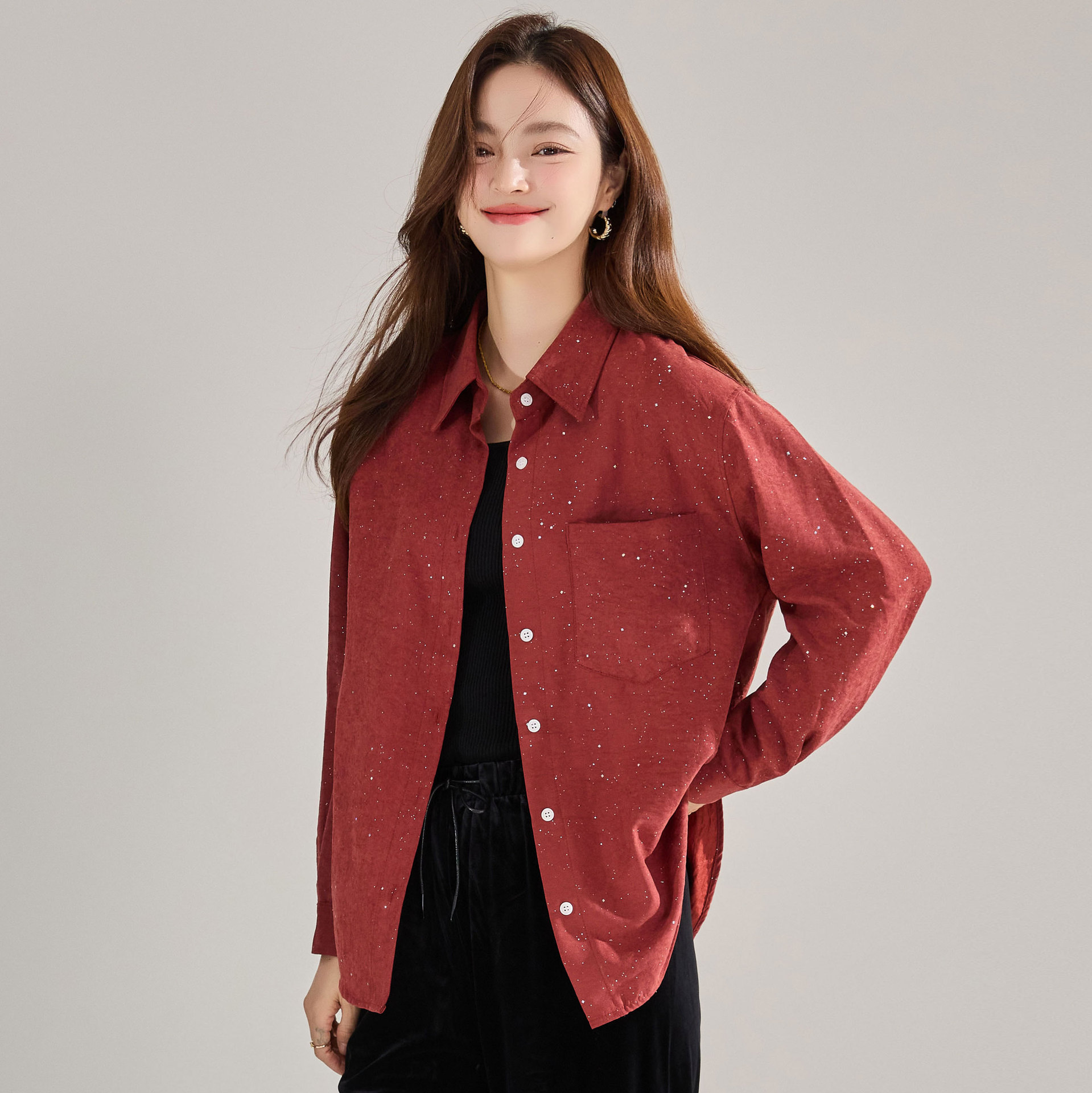 “满天星”奢美滤镜感,面料表面随机分布的闪粉亮片 闪闪光泽如同满天星河投映衣身之上 触感爽滑,不易褶皱,垂坠自然