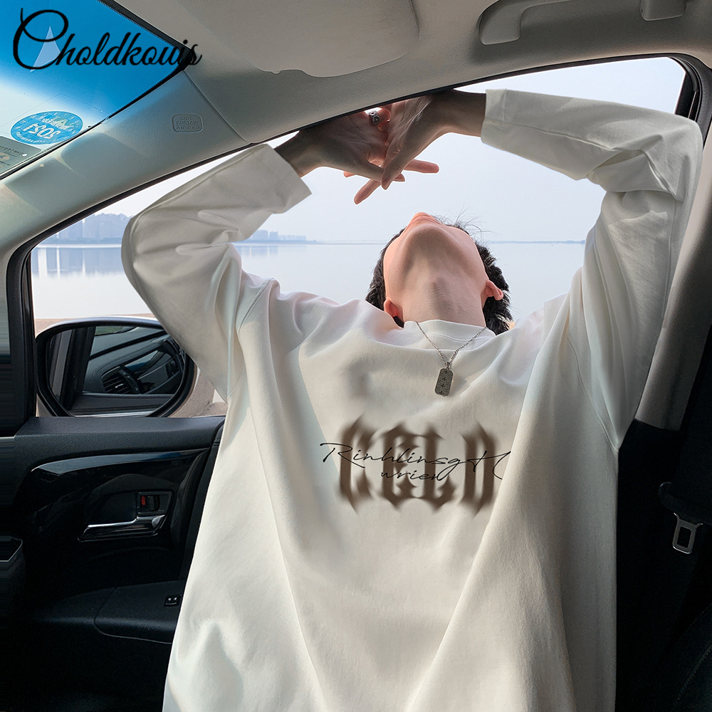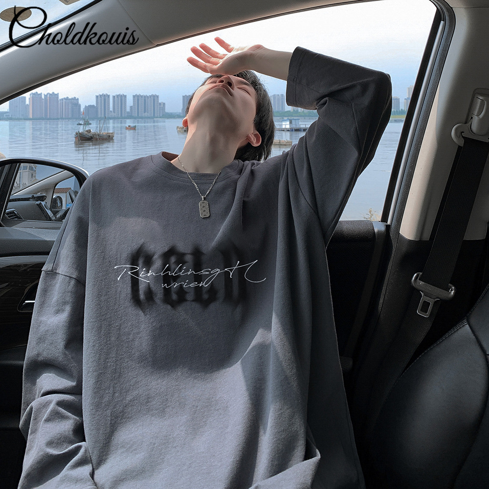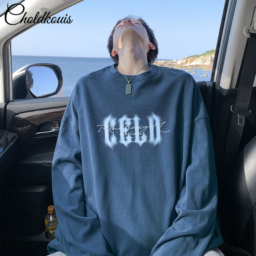 남성용 순면 두꺼운 긴팔 봄가을 라운드넥 루즈핏 긴팔 이너웨어스토어 가기
