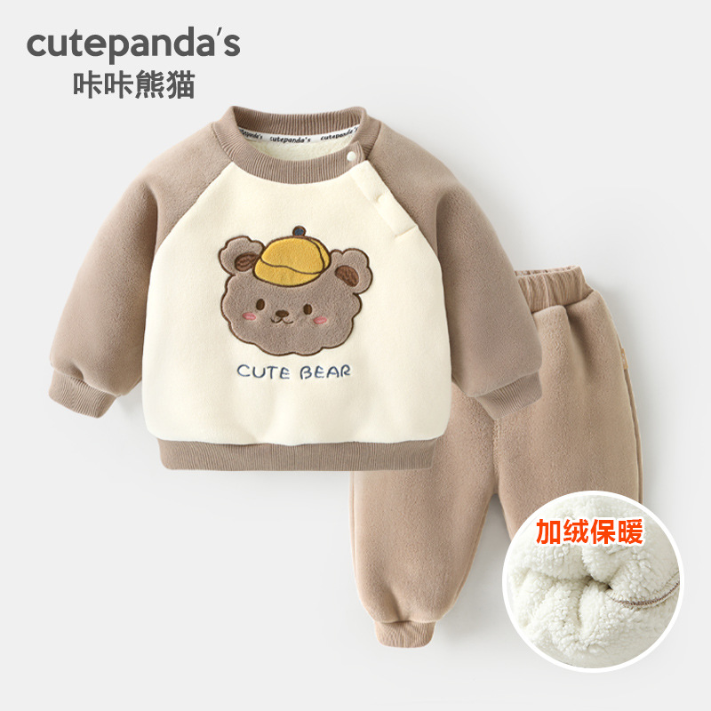 아기 옷 어린이 기모 스웨트 셔츠 세트 겨울 의류 가을 겨울 소년 어린이 의류 소녀 의류 아기 두 조각 유행스토어 가기