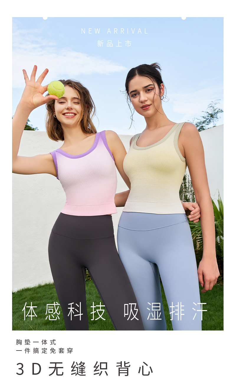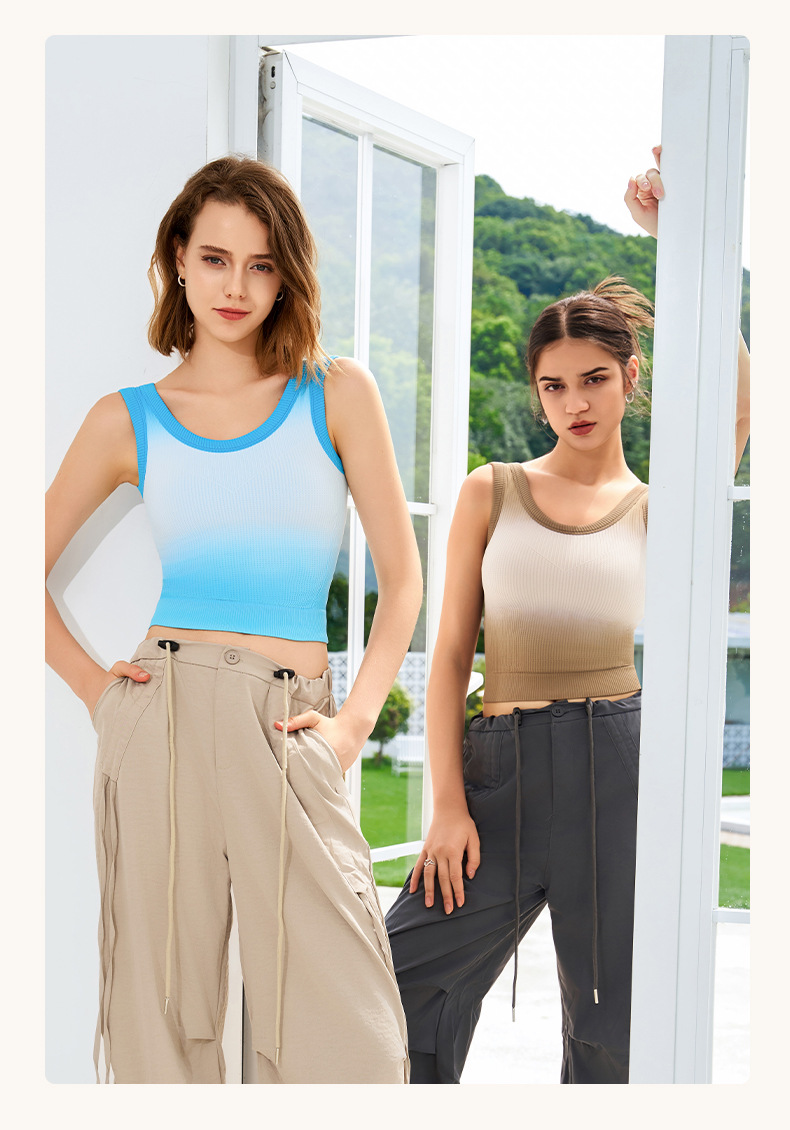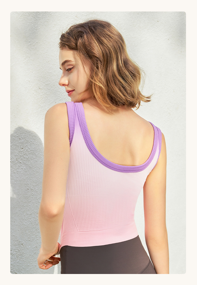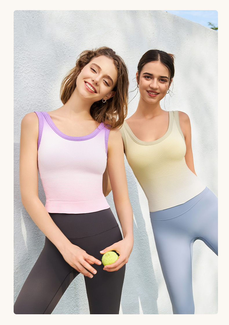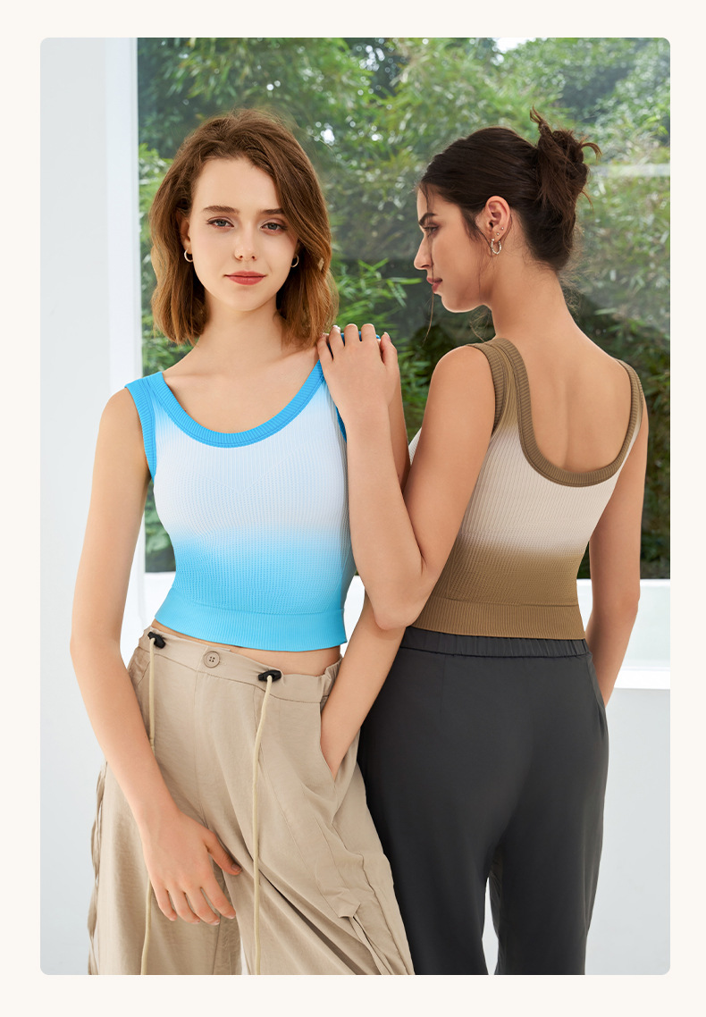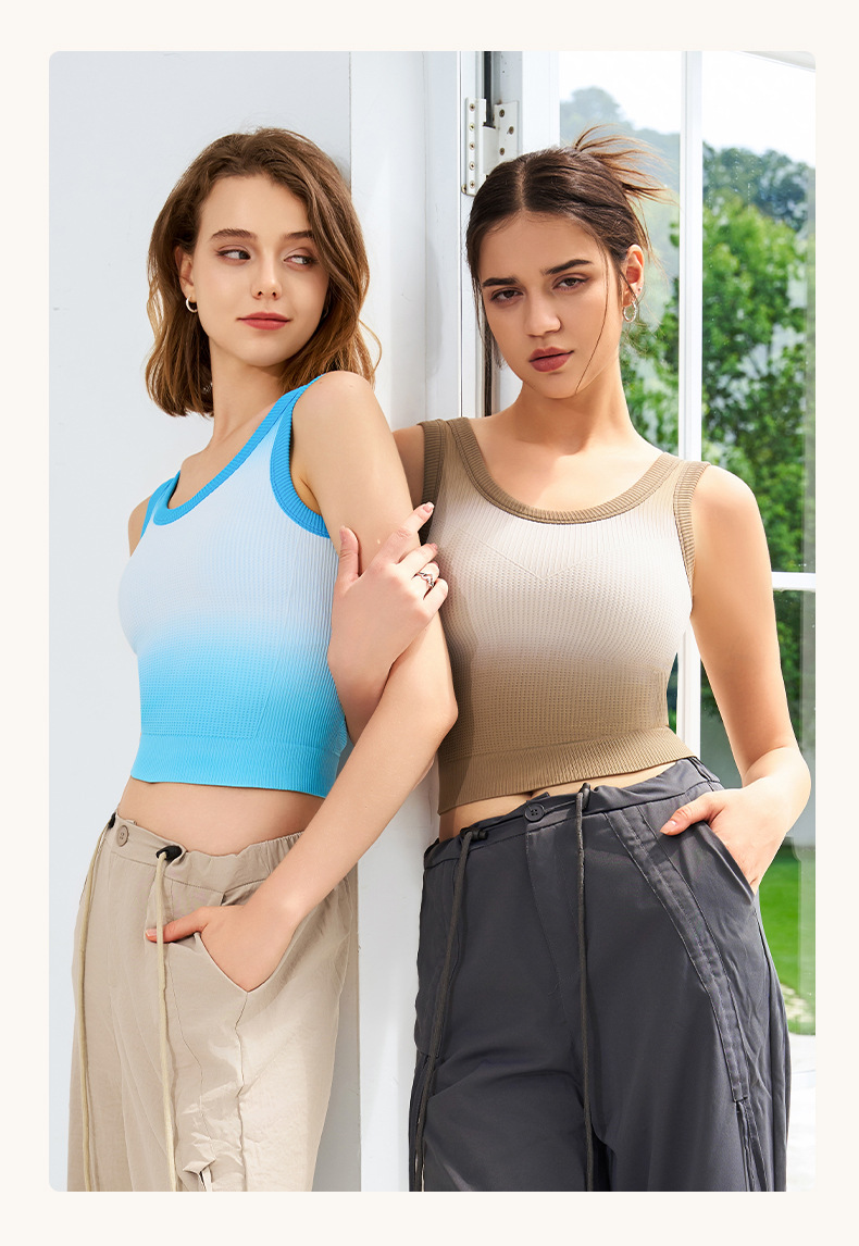 새로운 민소매 그라디언트 니트 요가 가슴 패드 브래지어 외부 착용 원피스 고정 컵 스포츠 속옷 조끼 가을 여성스토어 가기