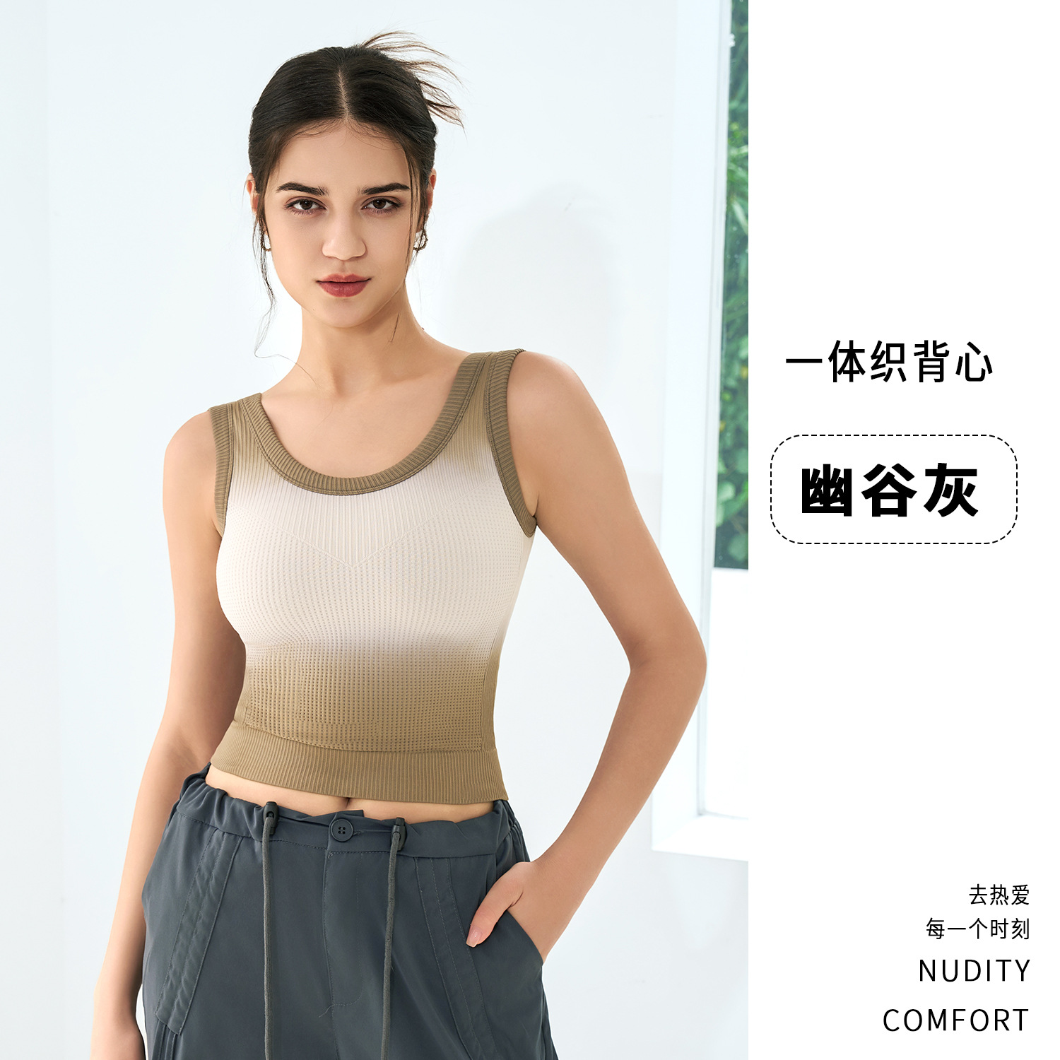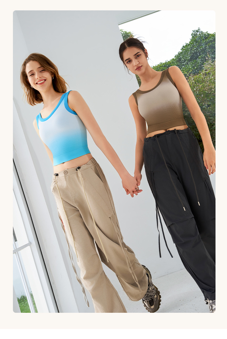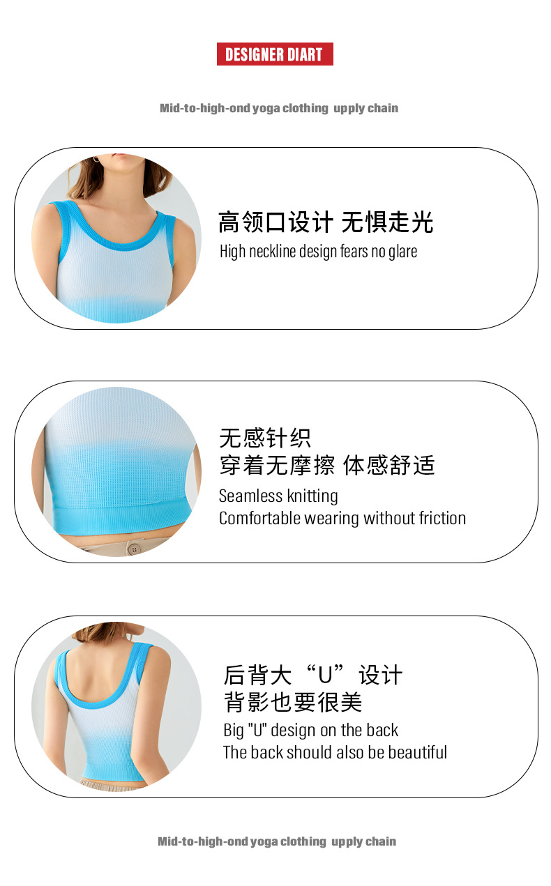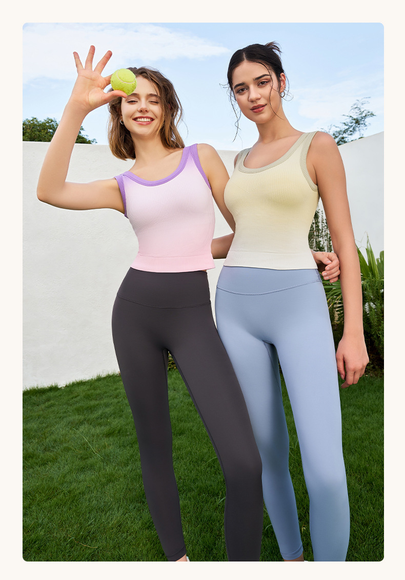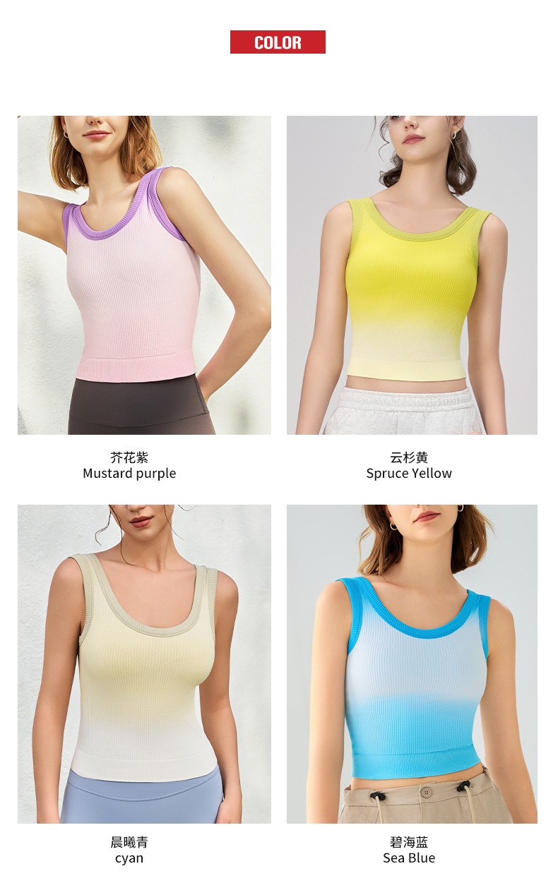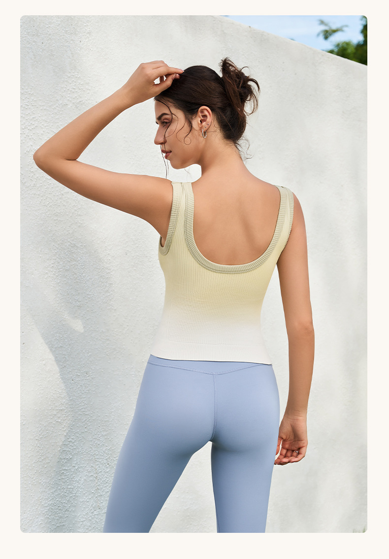 새로운 민소매 그라디언트 니트 요가 가슴 패드 브래지어 외부 착용 원피스 고정 컵 스포츠 속옷 조끼 가을 여성스토어 가기
