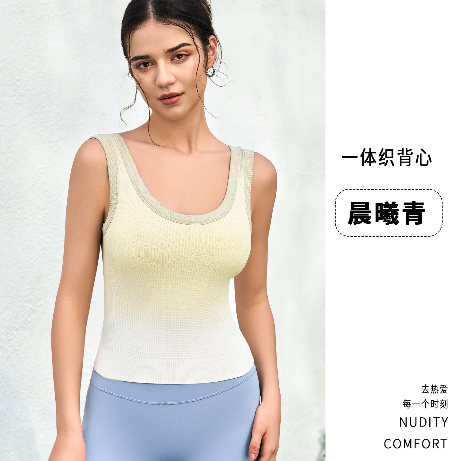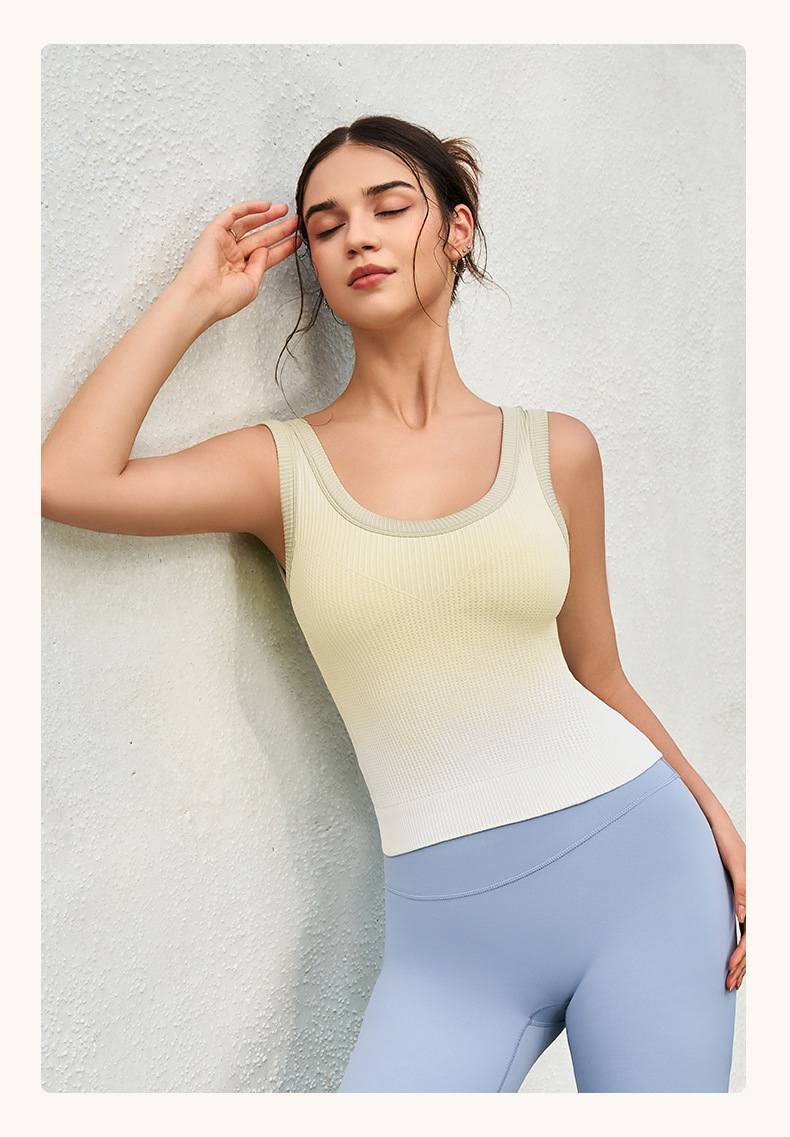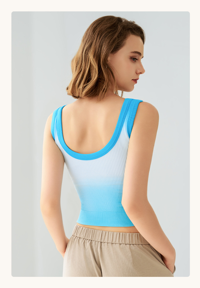 새로운 민소매 그라디언트 니트 요가 가슴 패드 브래지어 외부 착용 원피스 고정 컵 스포츠 속옷 조끼 가을 여성