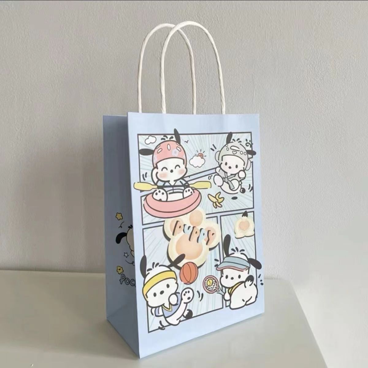 만화 토트 가방 Parchal 개 인쇄 포장 가방 크래프트 종이 쇼핑 가방 선물 가방 방수 테이크 아웃 가방 도매